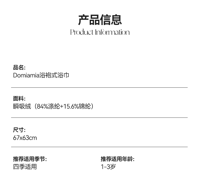 Domiamia婴儿带帽浴巾裹巾宝宝吸水洗澡巾儿童浴袍斗篷