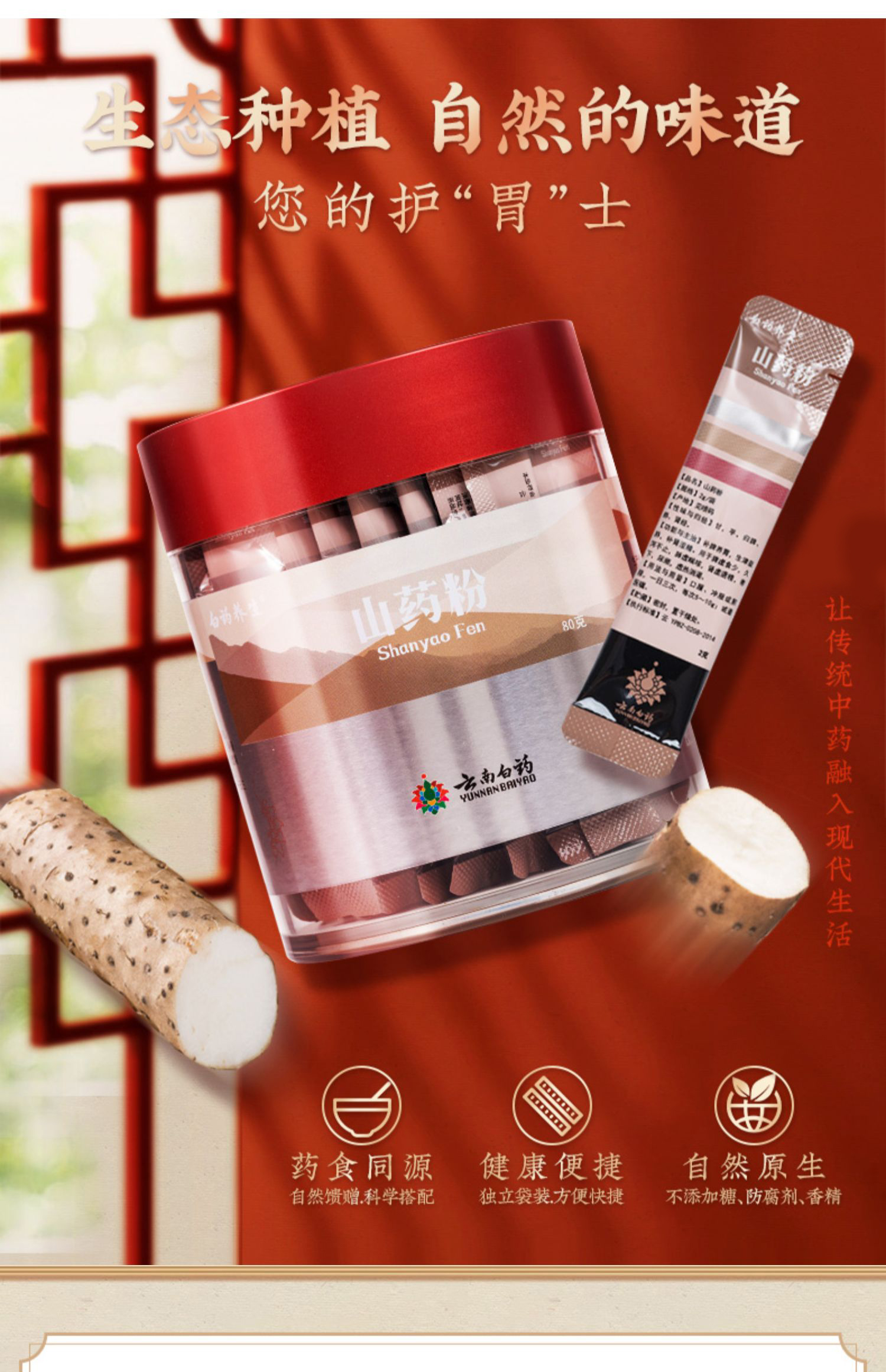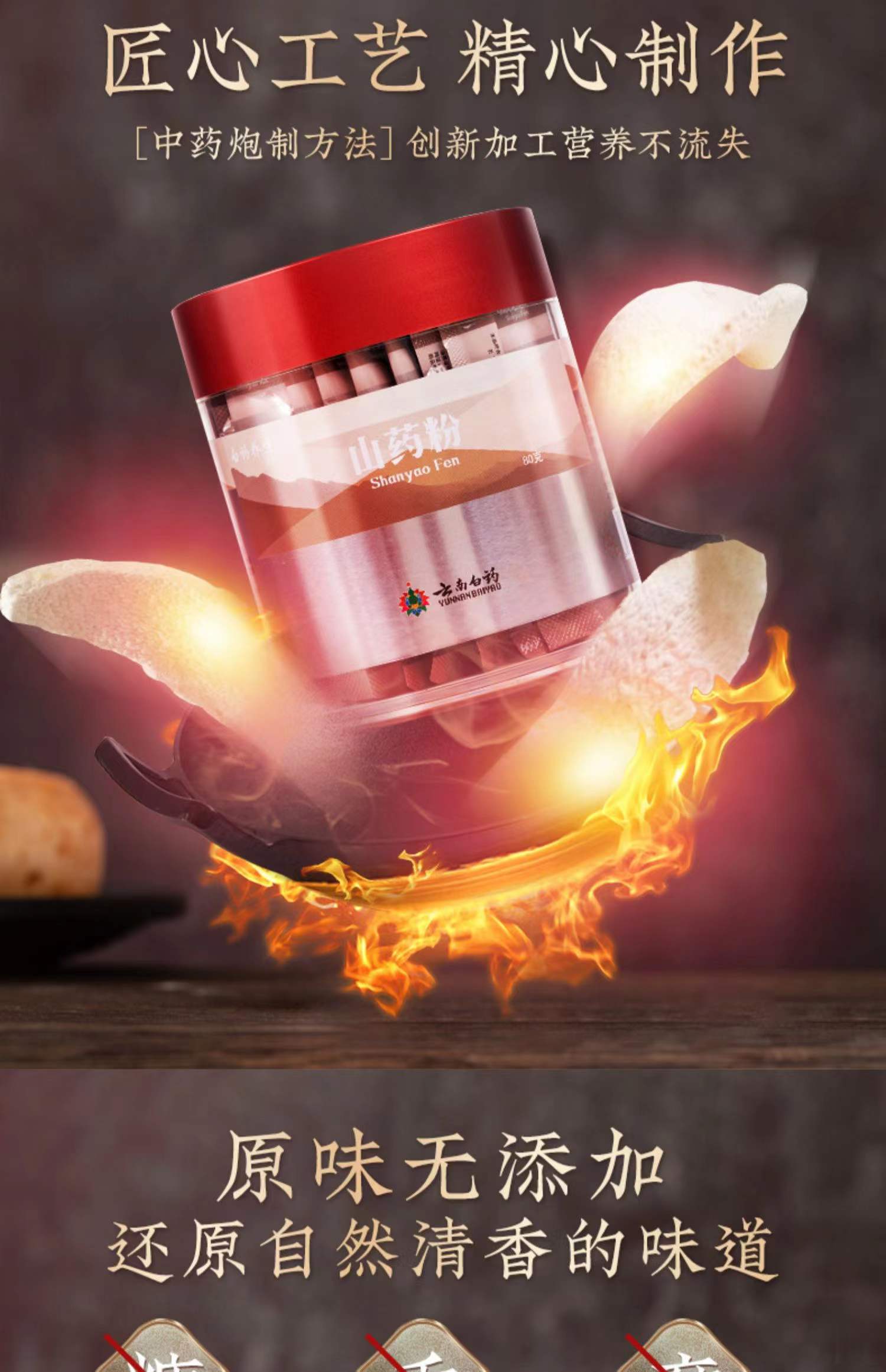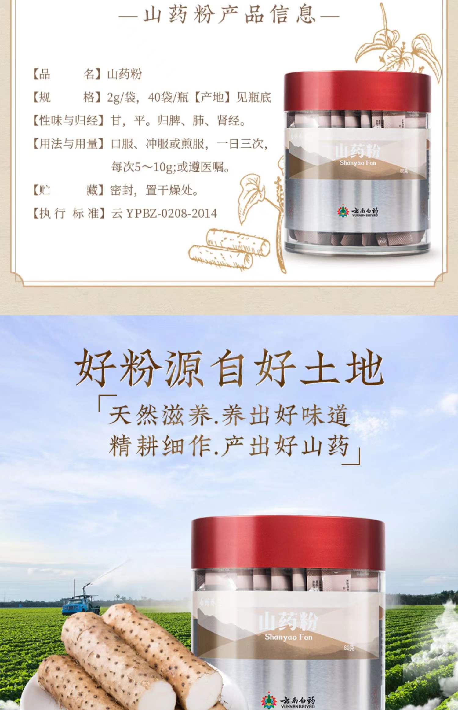 【官方正品】云南白药养生山药粉2g*40袋便携条包装细粉好吸收益脾养胃生津益肺