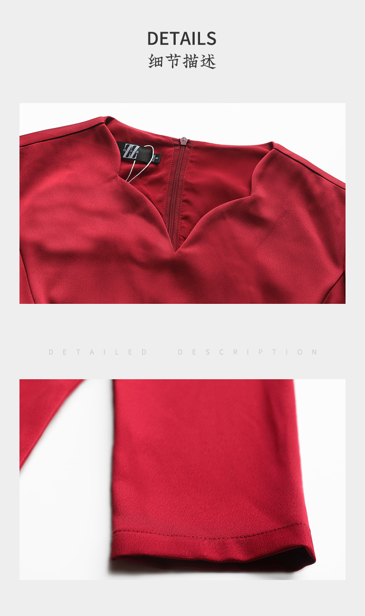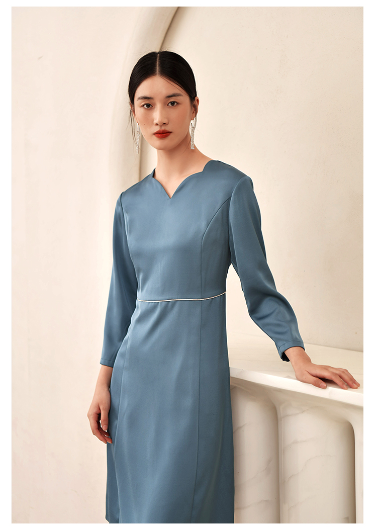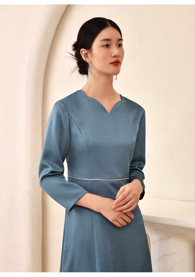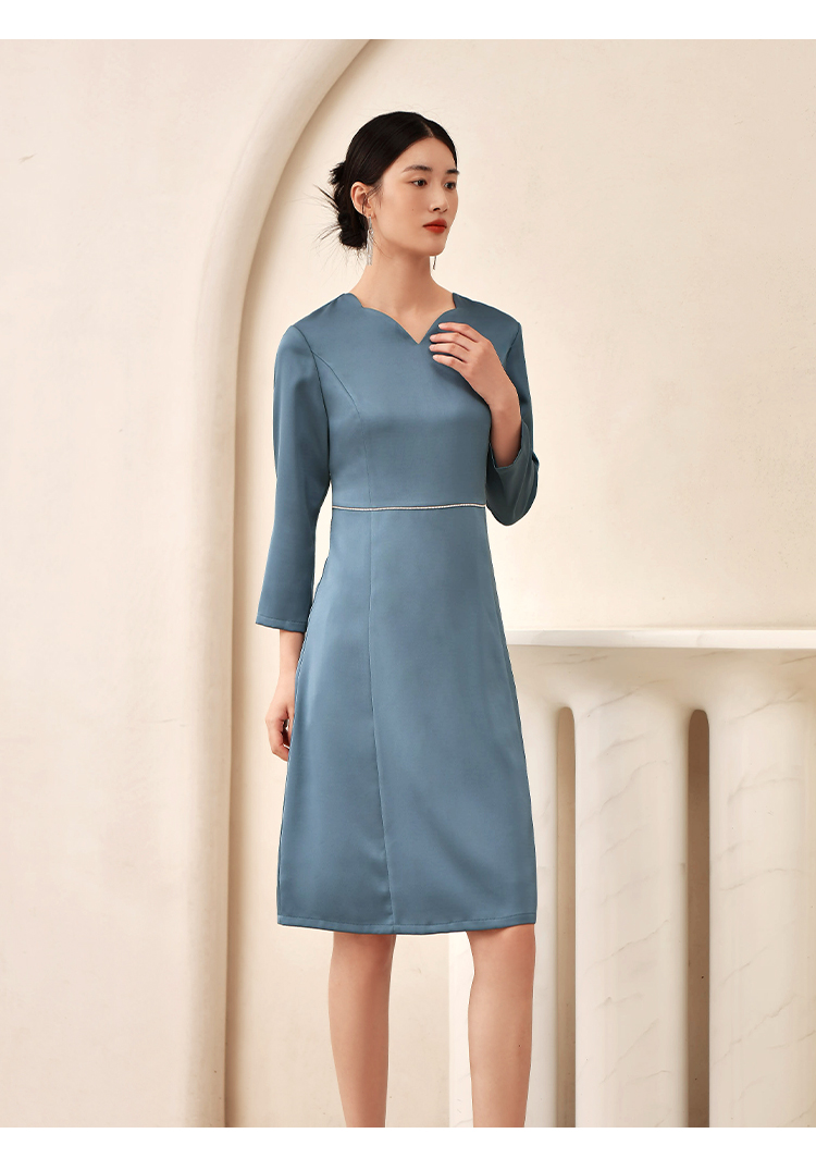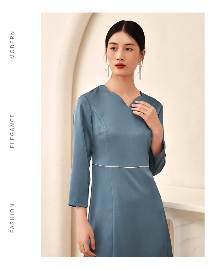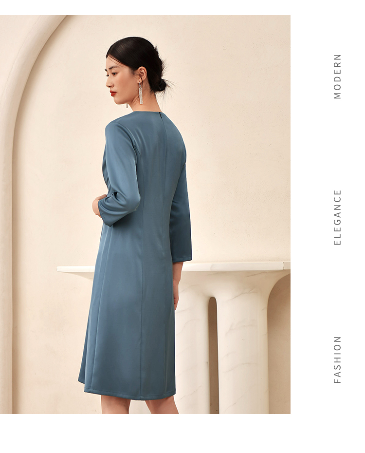 秋季新款 气质9分袖纯色V领连衣裙女E23LL14