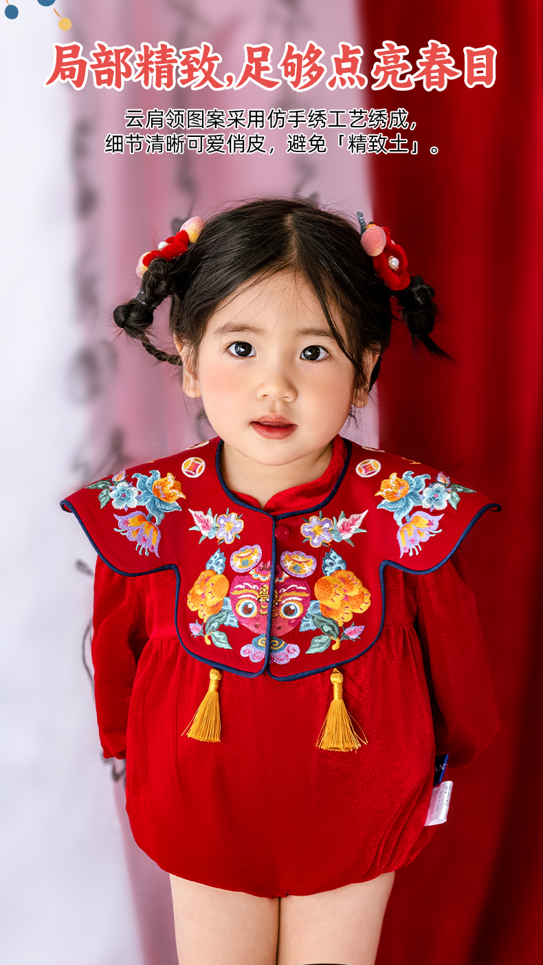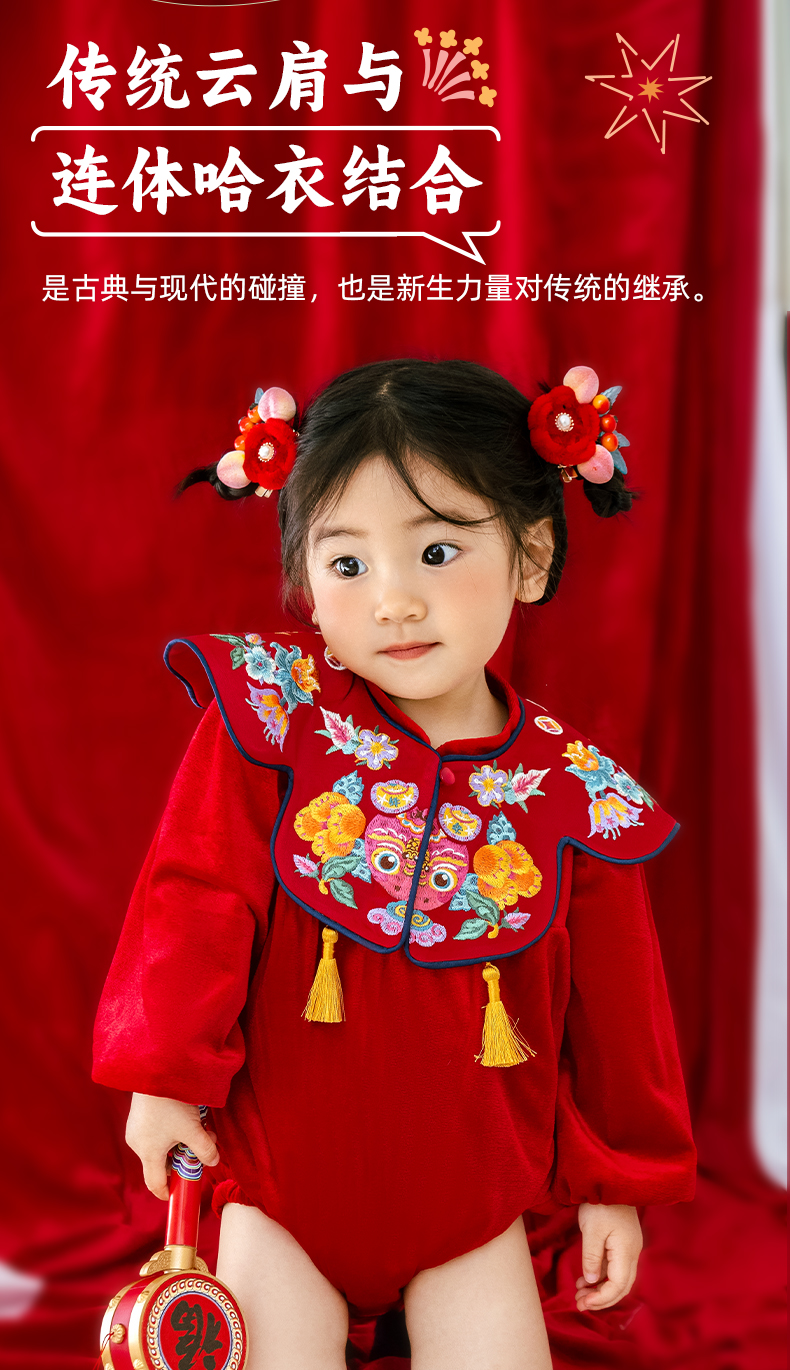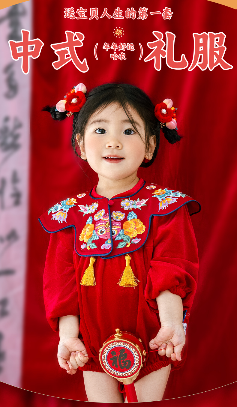 年衣婴儿连体衣周岁礼服2025春秋新生儿满月中国风年年好运哈衣