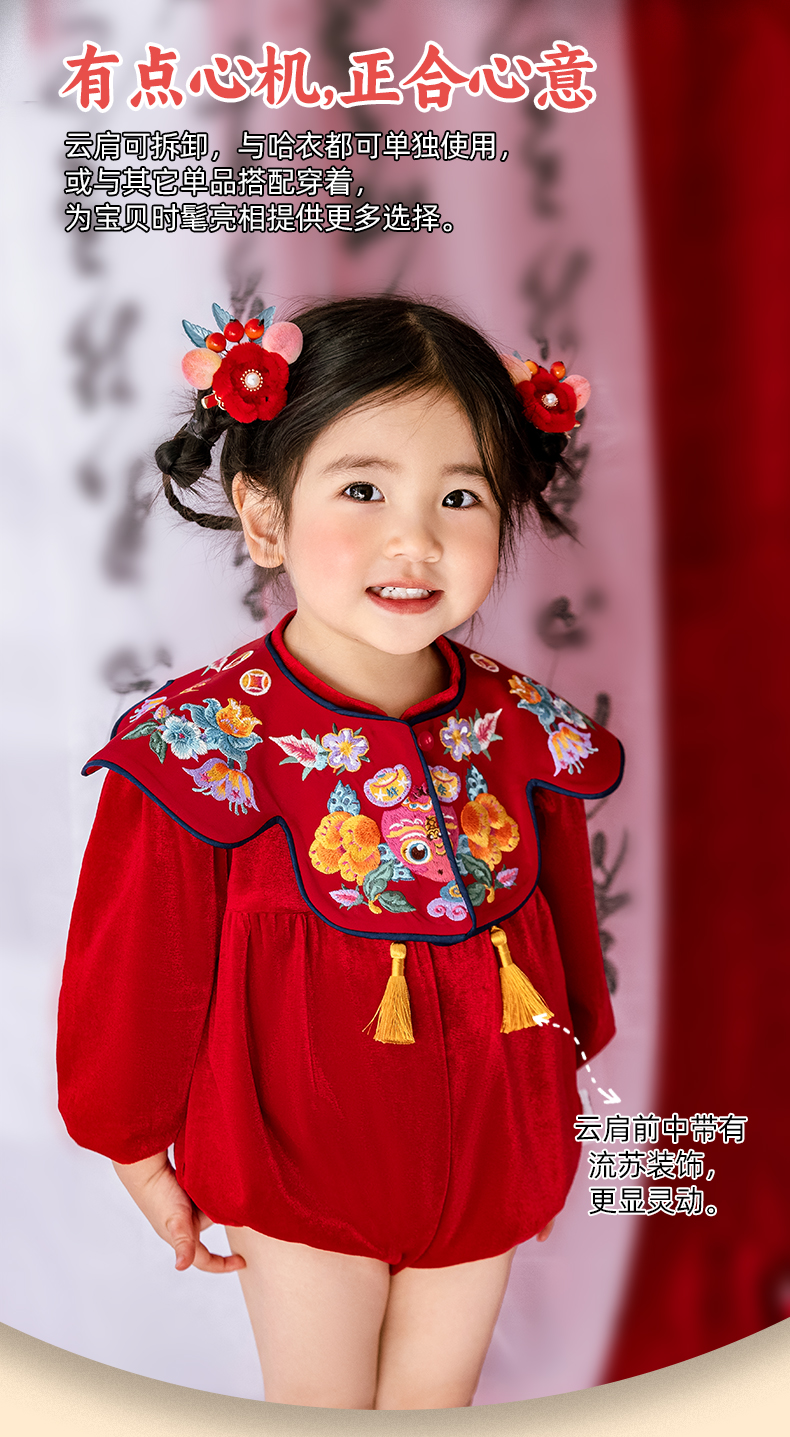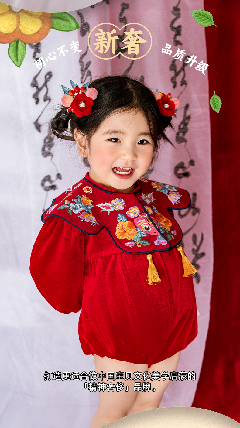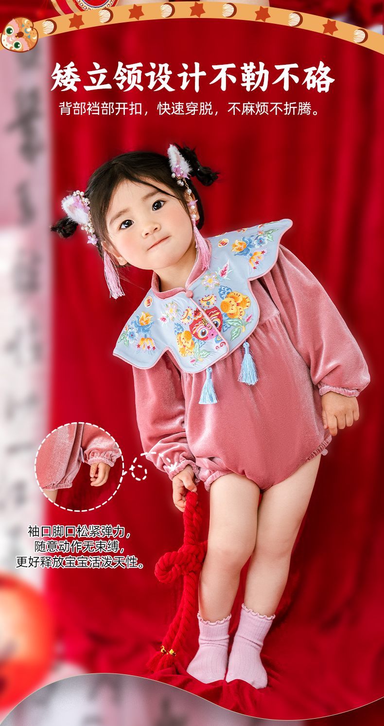 年衣婴儿连体衣周岁礼服2025春秋新生儿满月中国风年年好运哈衣