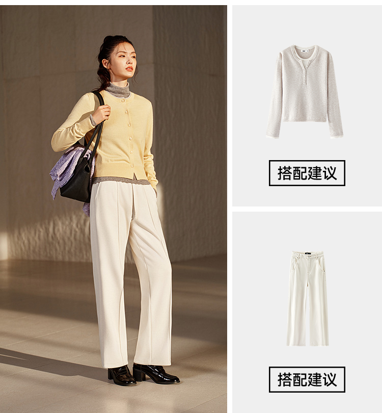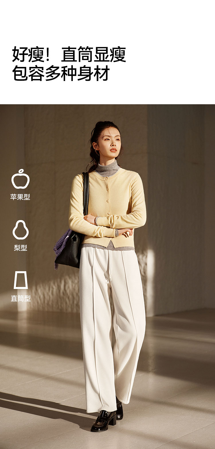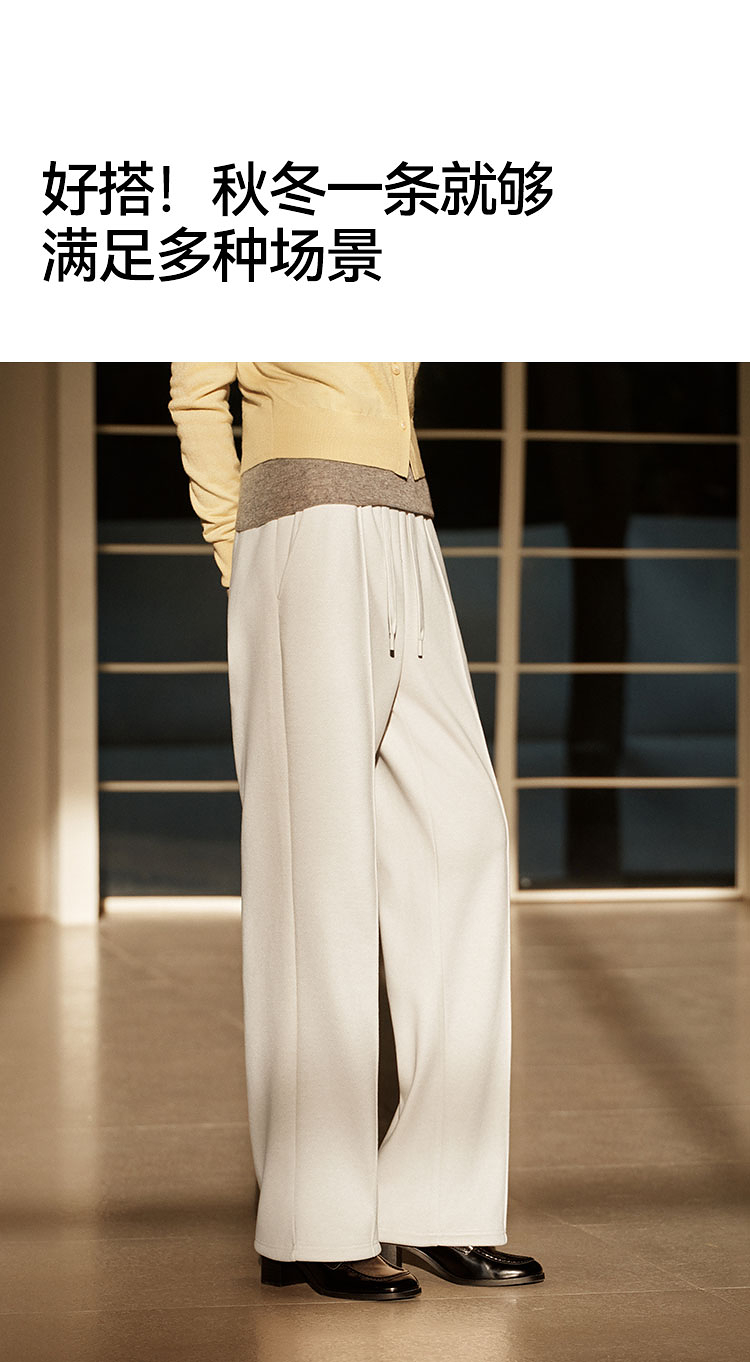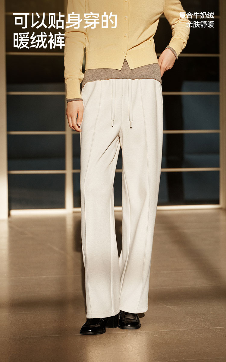 森马休闲裤女冬季加绒肌理分割直筒裤2025新款时尚通勤显腿长长裤