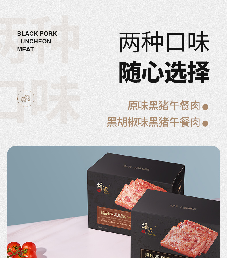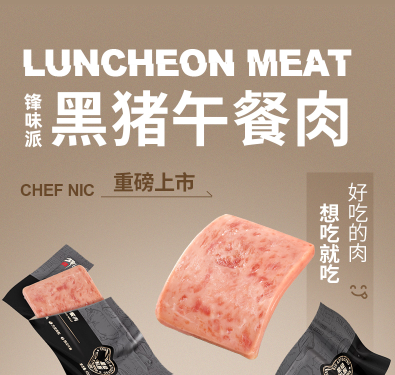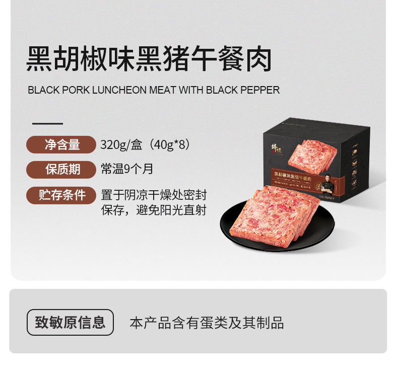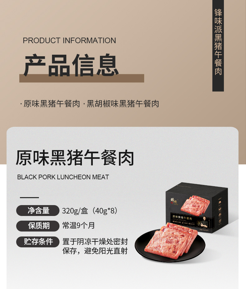 锋味派黑猪午餐肉罐头三明治专用即食火腿午餐肉独立包装单片袋装