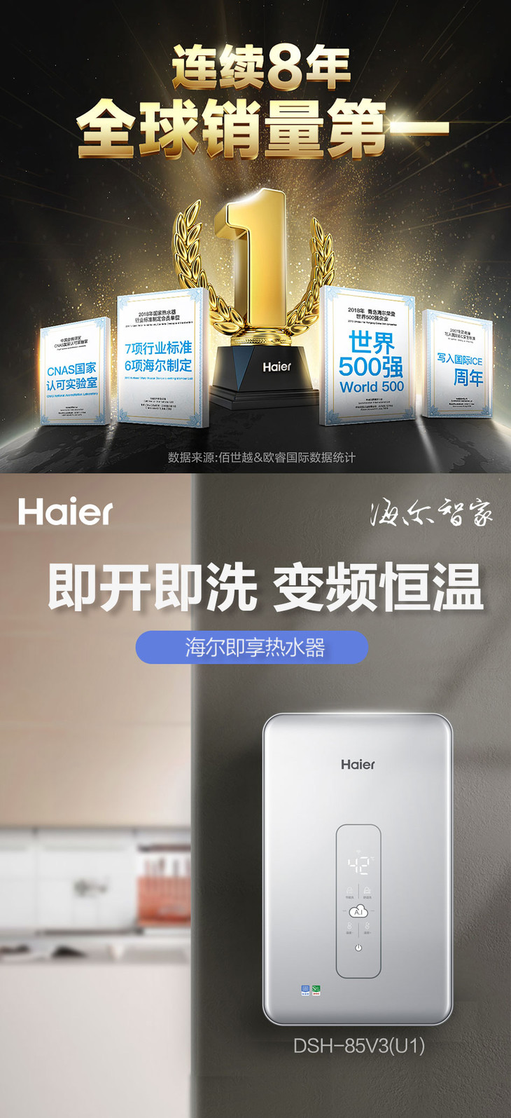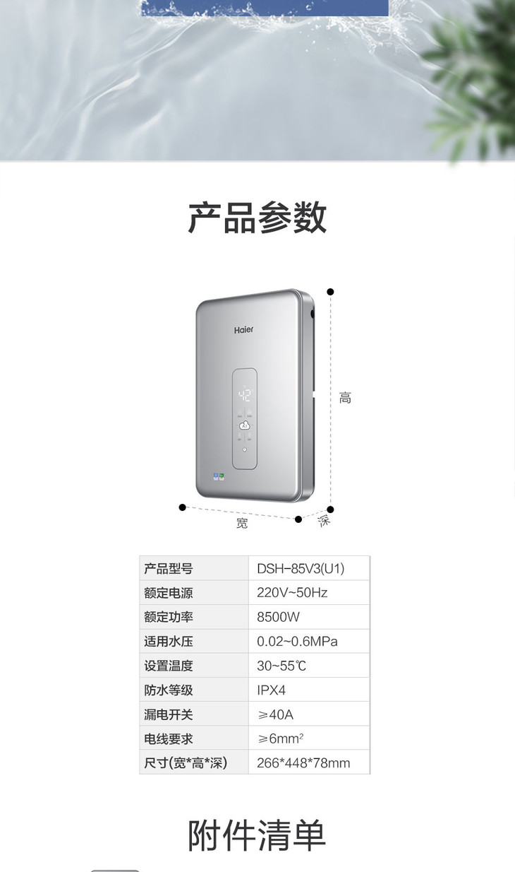 海尔电热水器DSH-85V3(U1) 即热