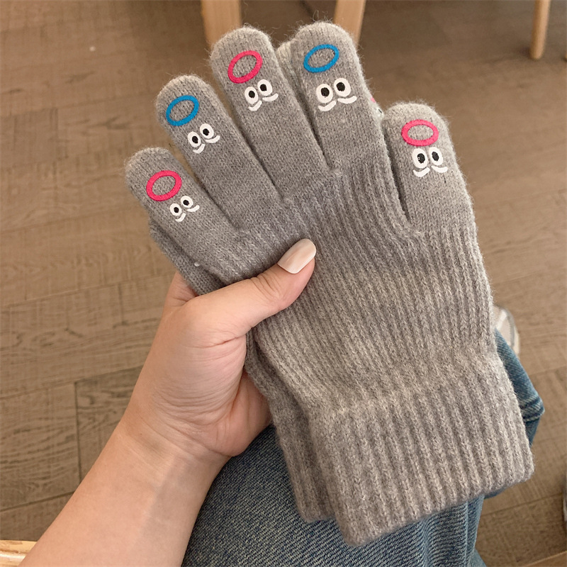 【触屏设计!可爱针织毛线手套】表情可爱针织毛线手套女冬季可触屏保暖露两指手指头学生五指骑车,不仅可以保暖,还可以触屏操作。ry