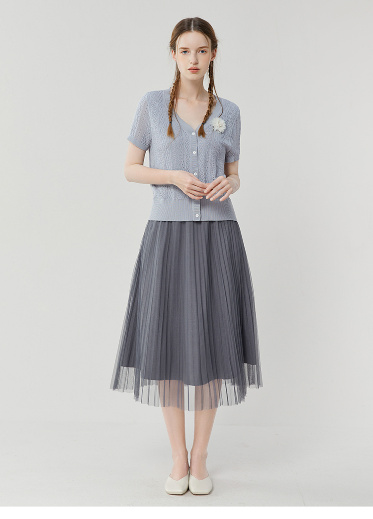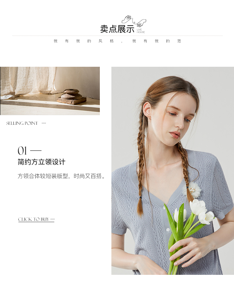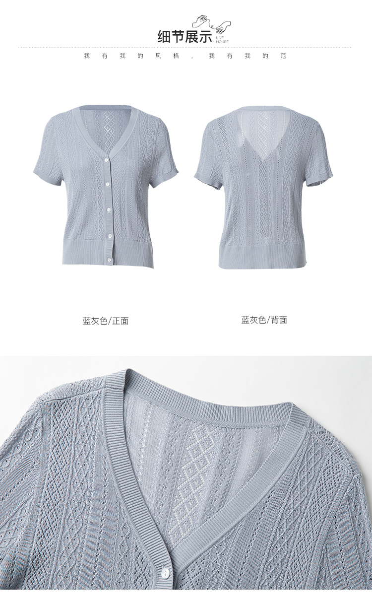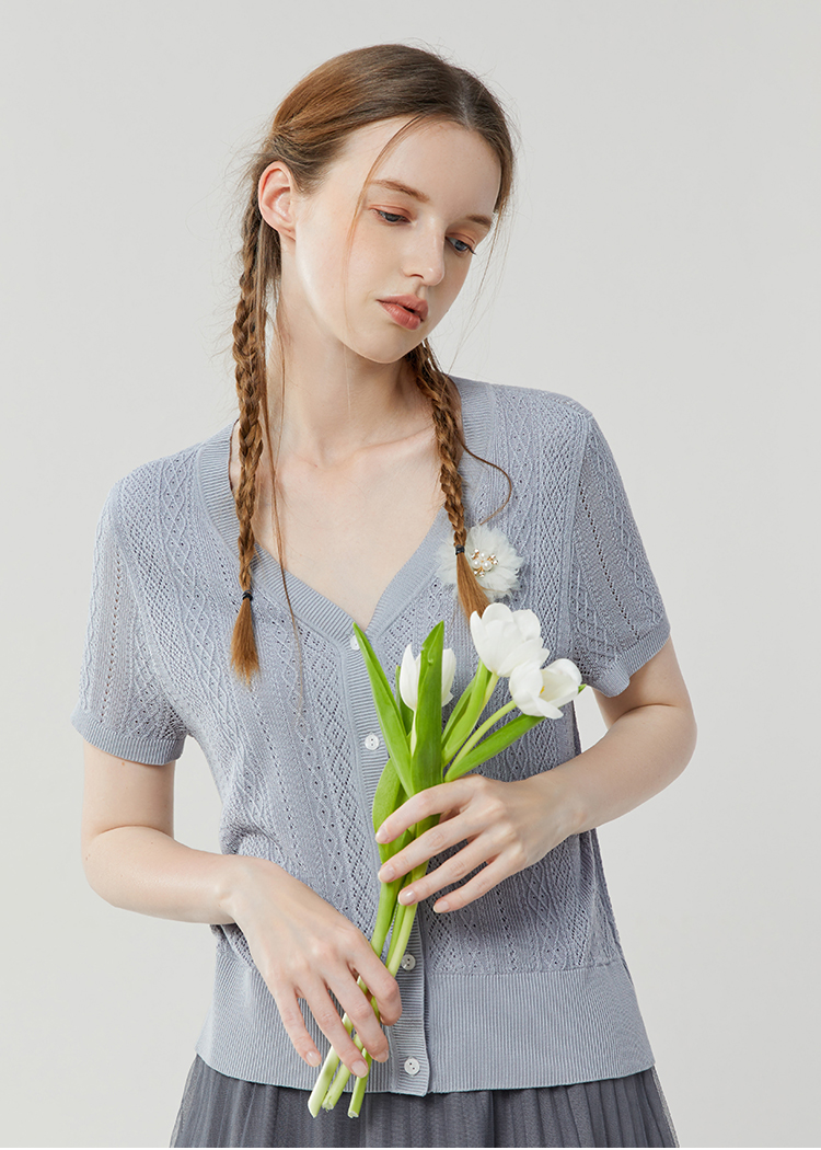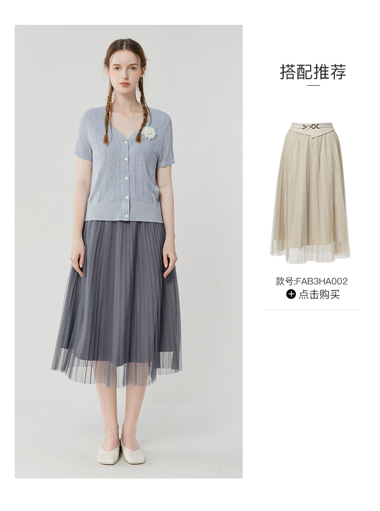 Famecoco范可儿钩织风针织上衣女夏季天丝短袖薄款打底衫FAB3DA002