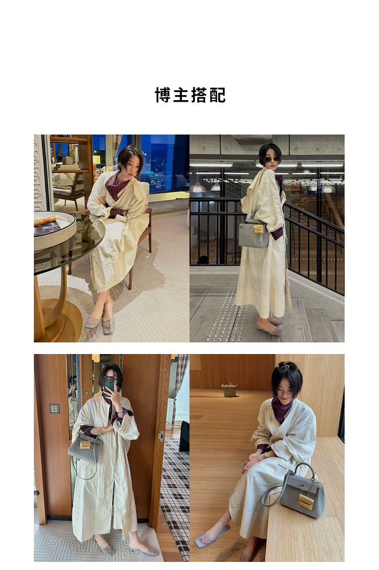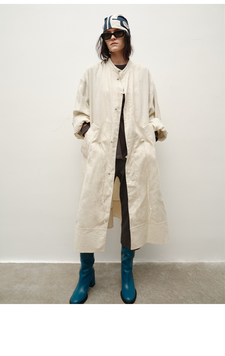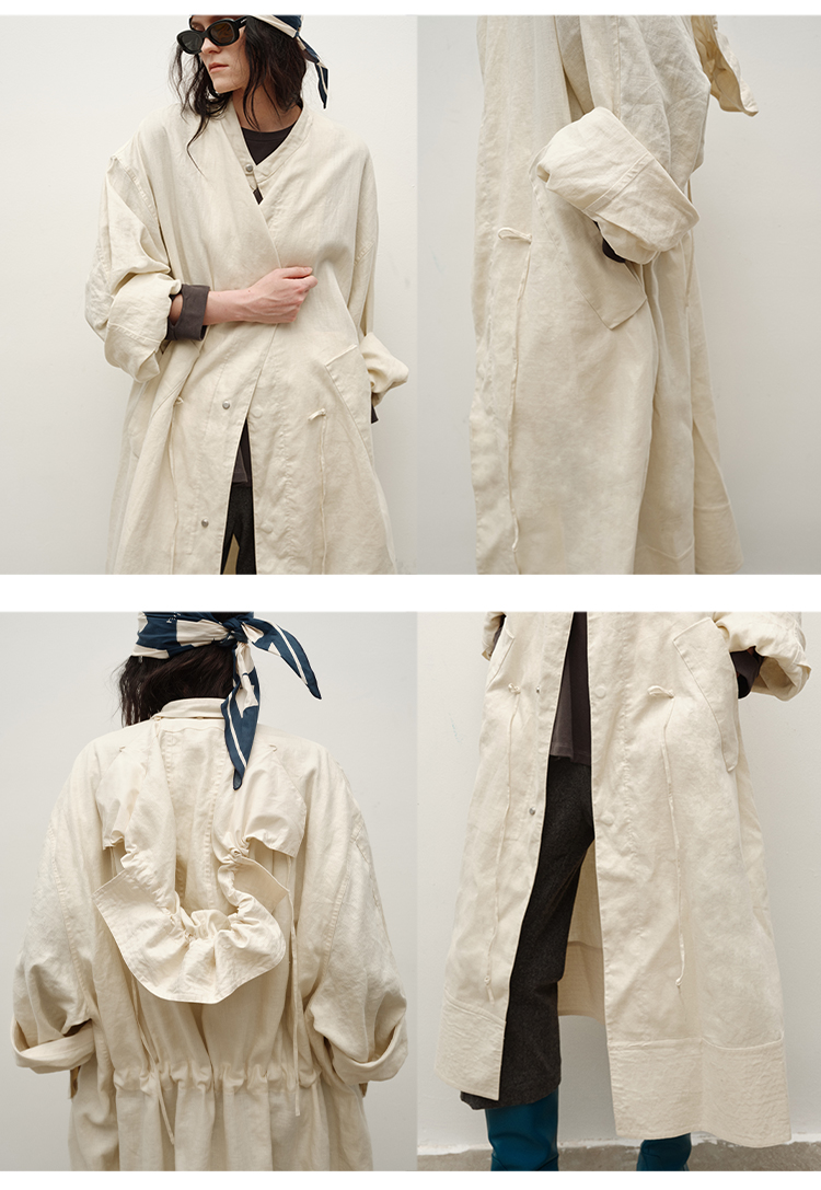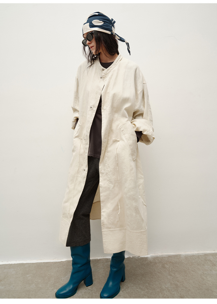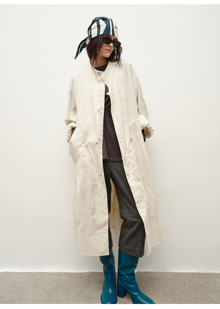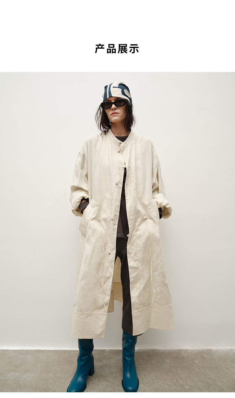 HIDEMI 进口百分百雨露亚麻超大版型大廓形可拆卸帽抽绳设计感长款慵懒时髦风衣
