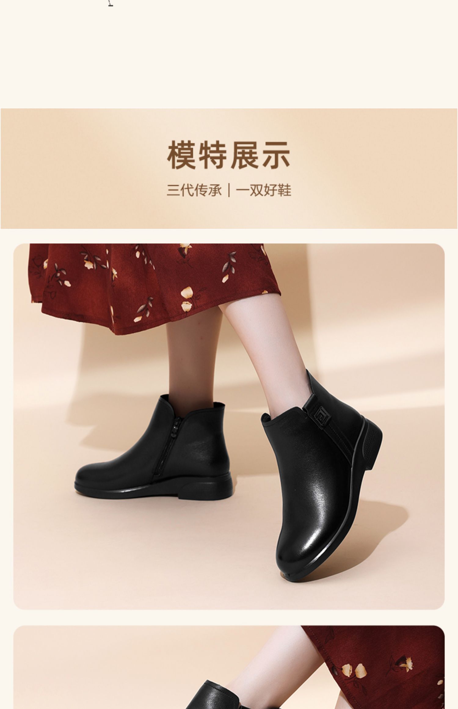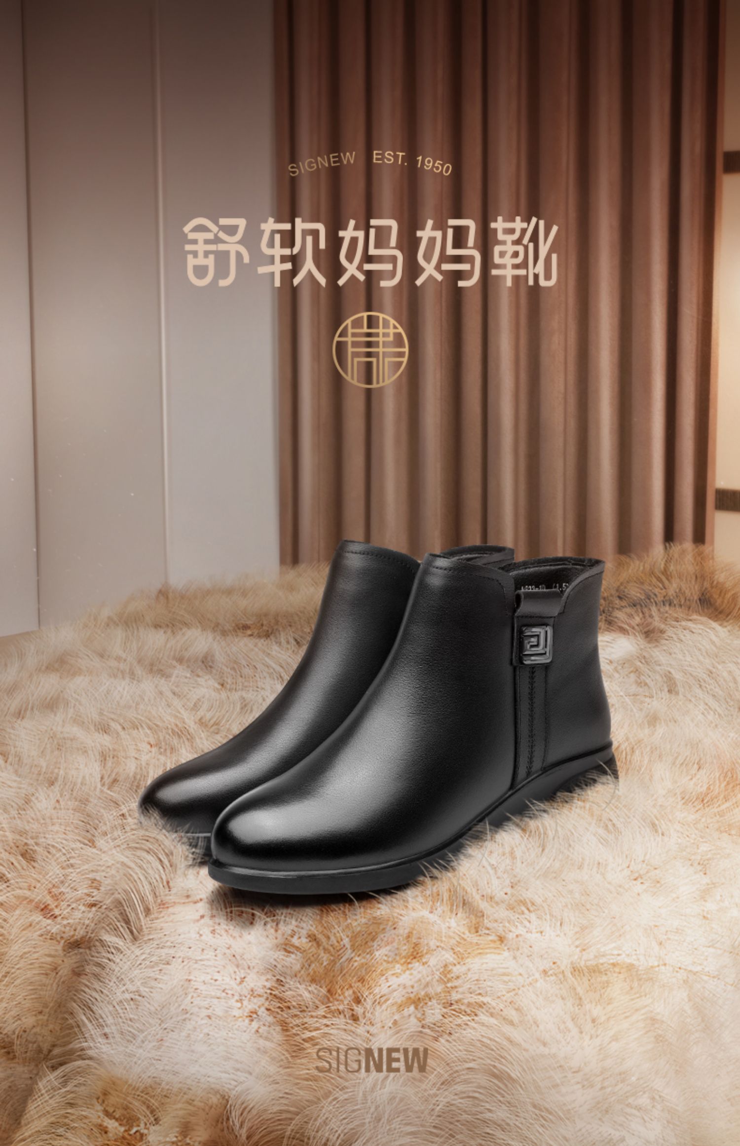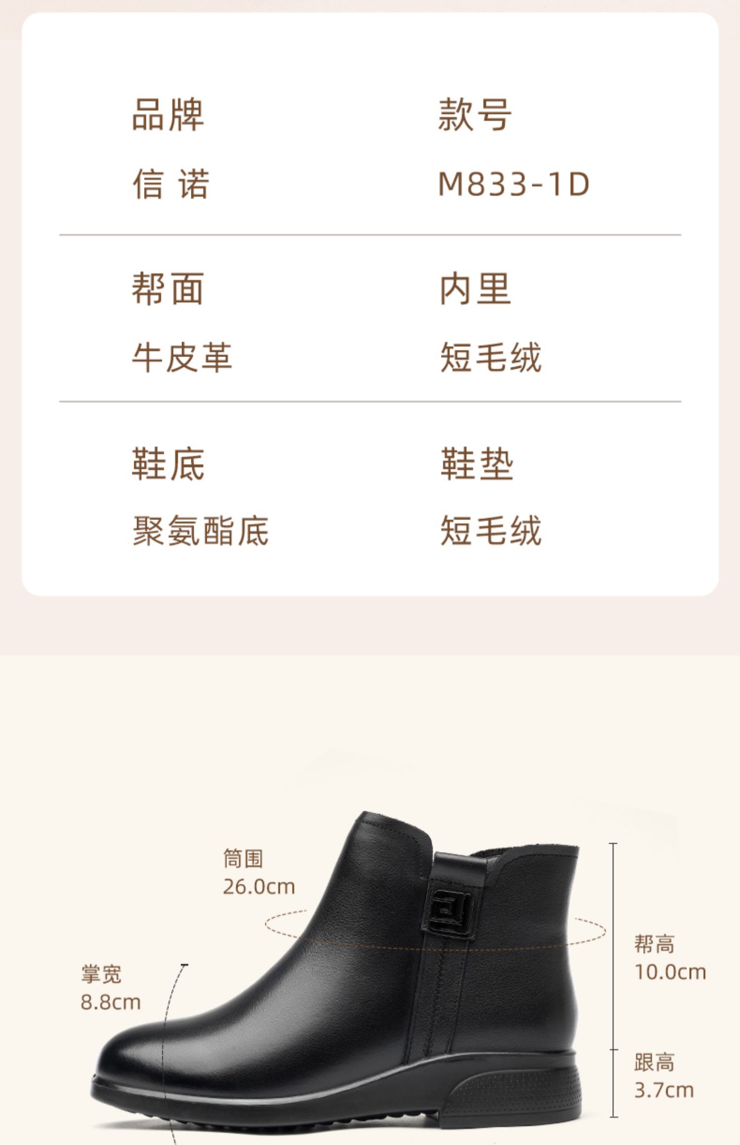 信诺真皮女鞋2024冬季新款加绒保暖短靴短筒靴子中老年棉鞋妈妈鞋M833-1D