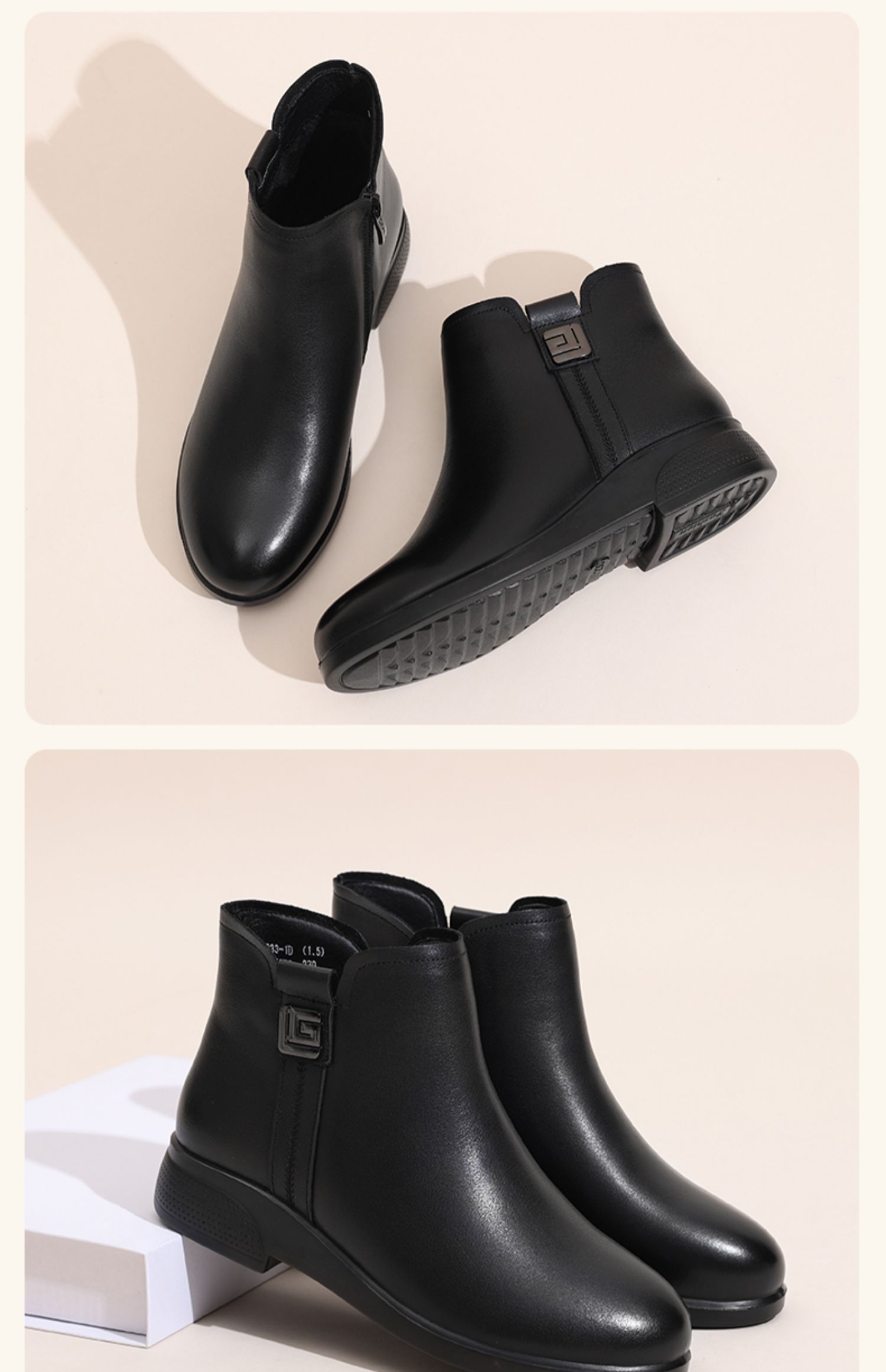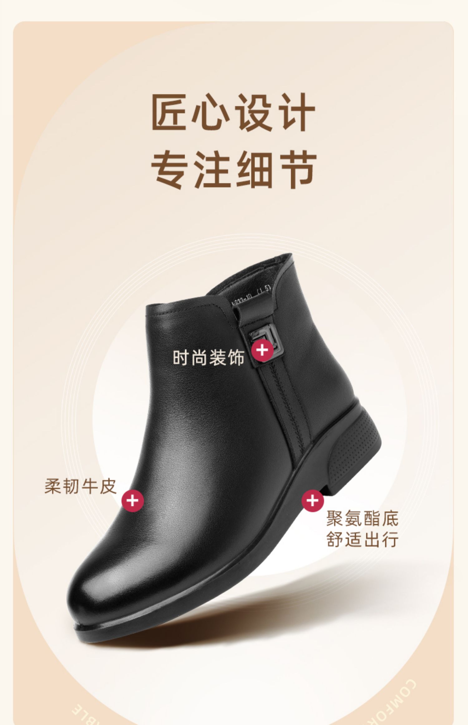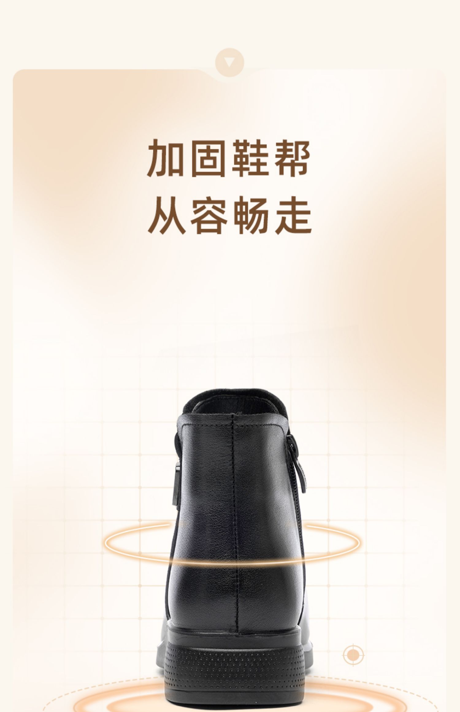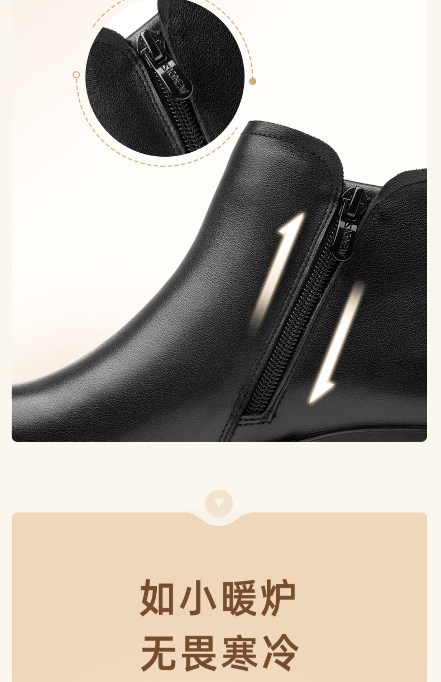 信诺真皮女鞋2024冬季新款加绒保暖短靴短筒靴子中老年棉鞋妈妈鞋M833-1D