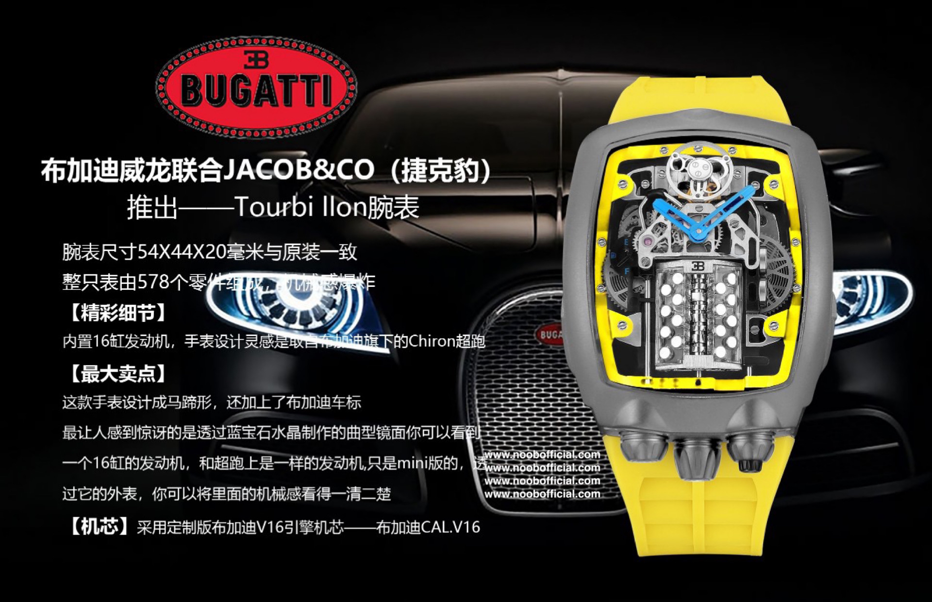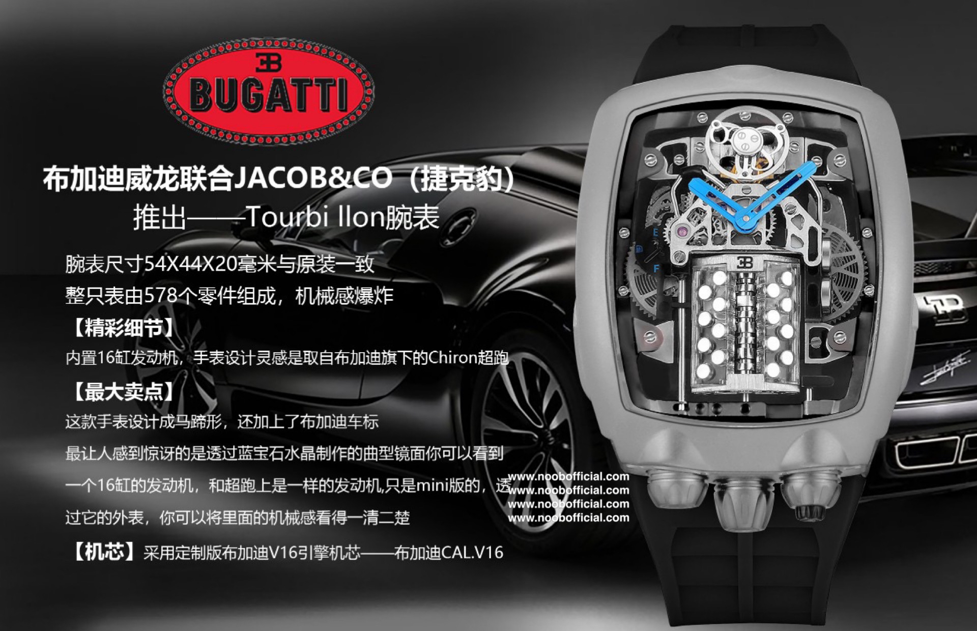 BG厂2021震撼巨献!布加迪威龙联合JACOB&CO(捷克豹)推出——Tourbi llon腕表 腕表尺寸54X44X20毫米与原装一致 整只表由578个零件组成,机械感爆炸