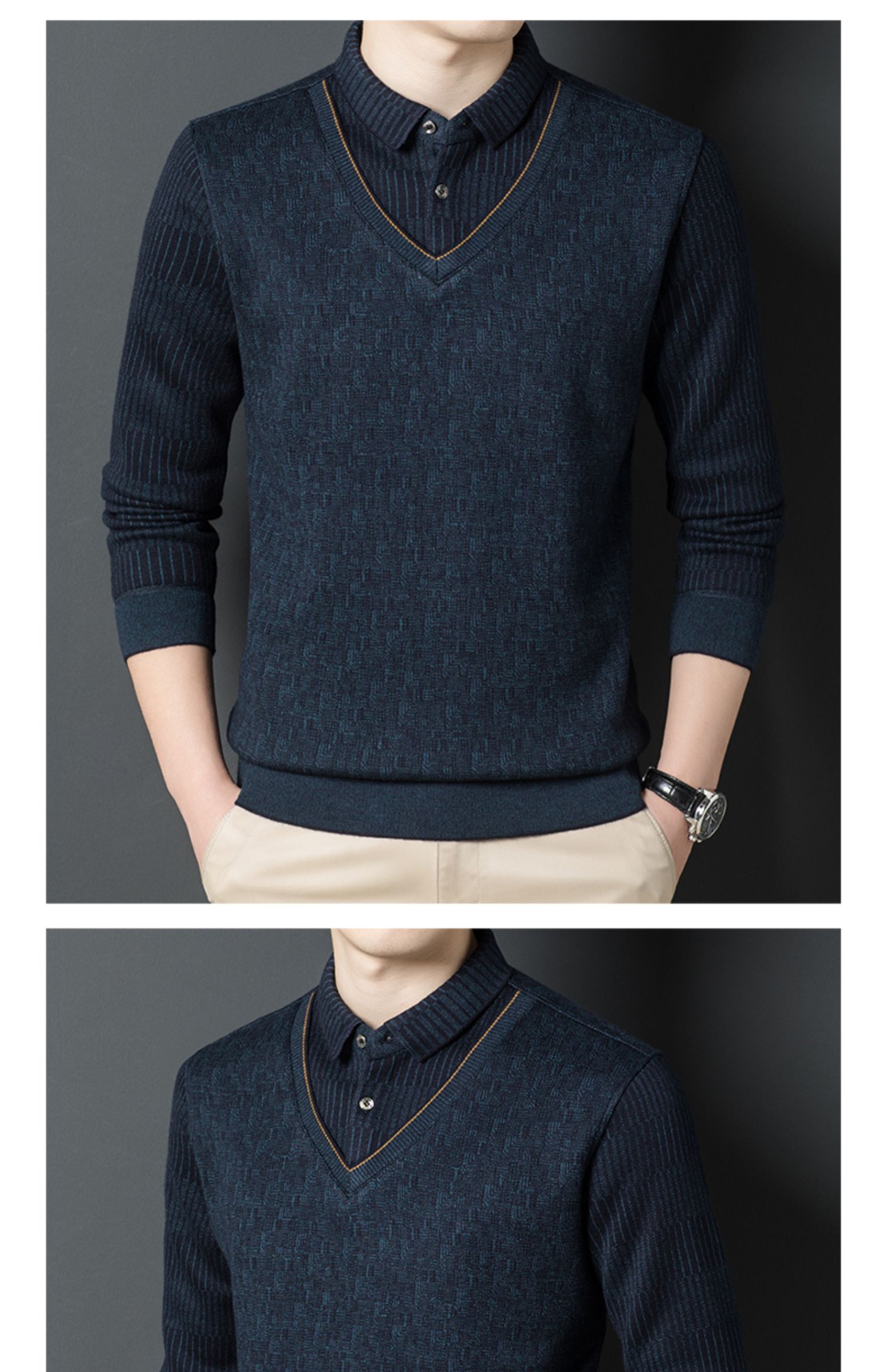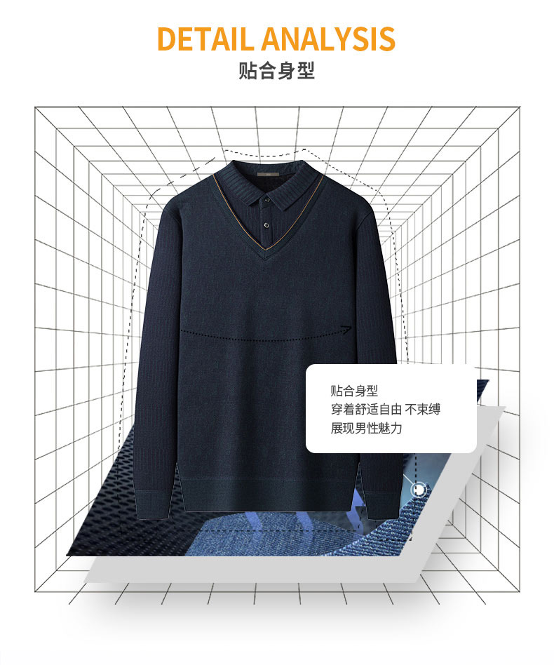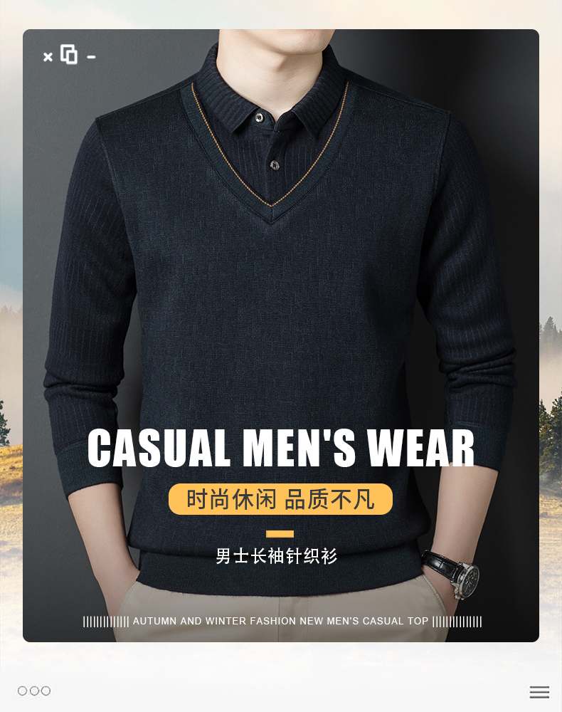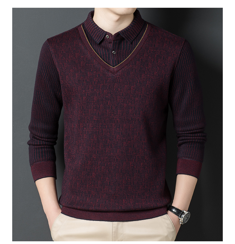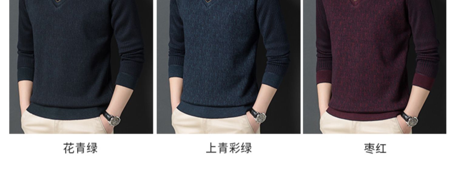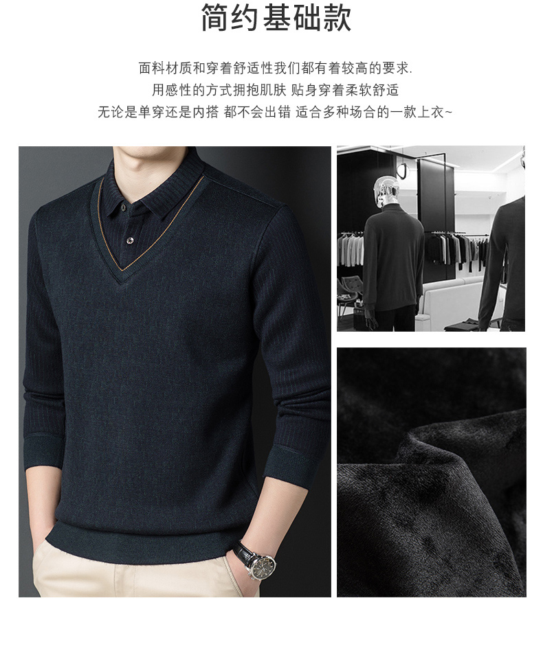 【含有绵羊毛&加绒加厚】圣得西男士假两件商务休闲毛衫秋季新款中青年加厚打底毛衣