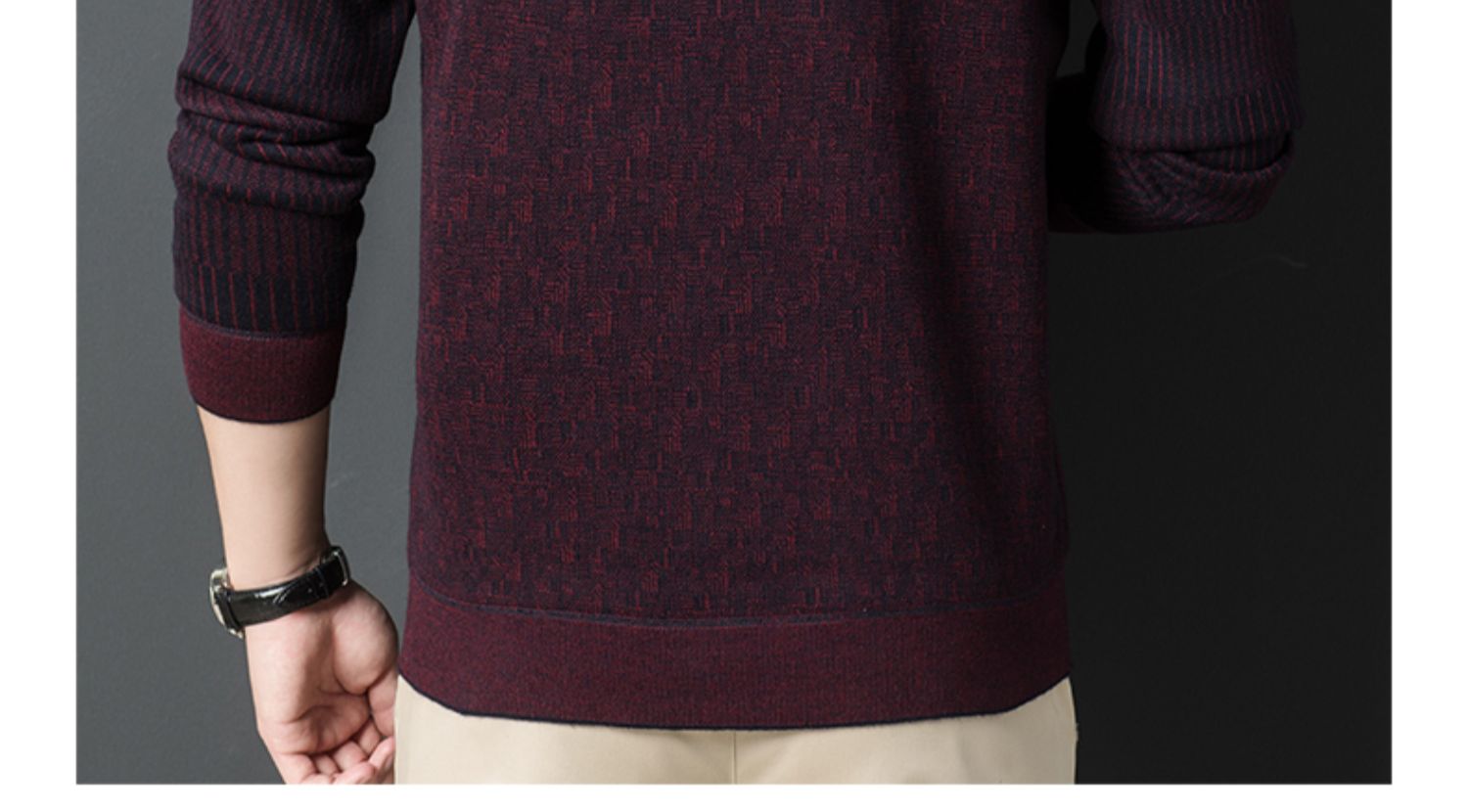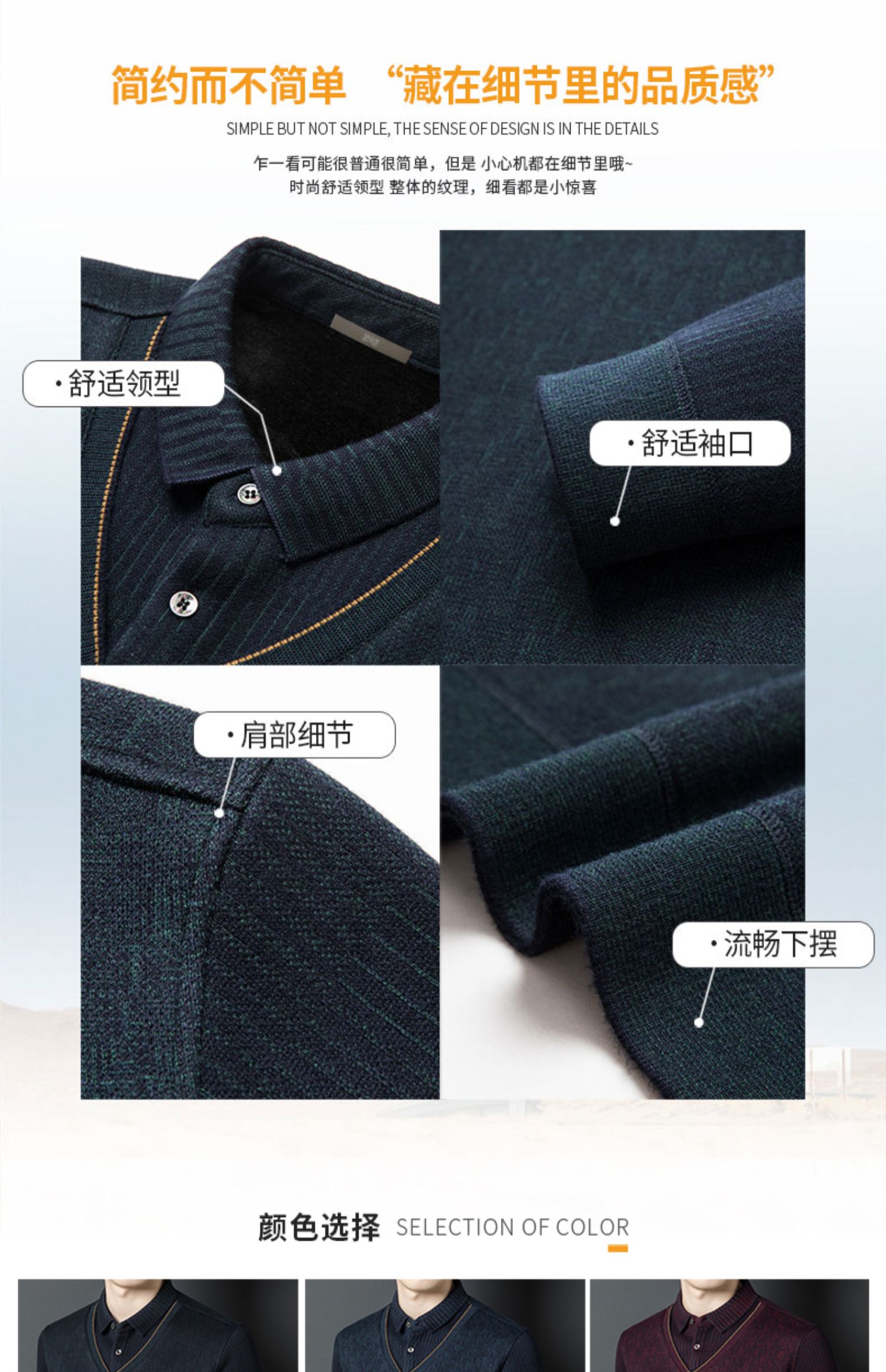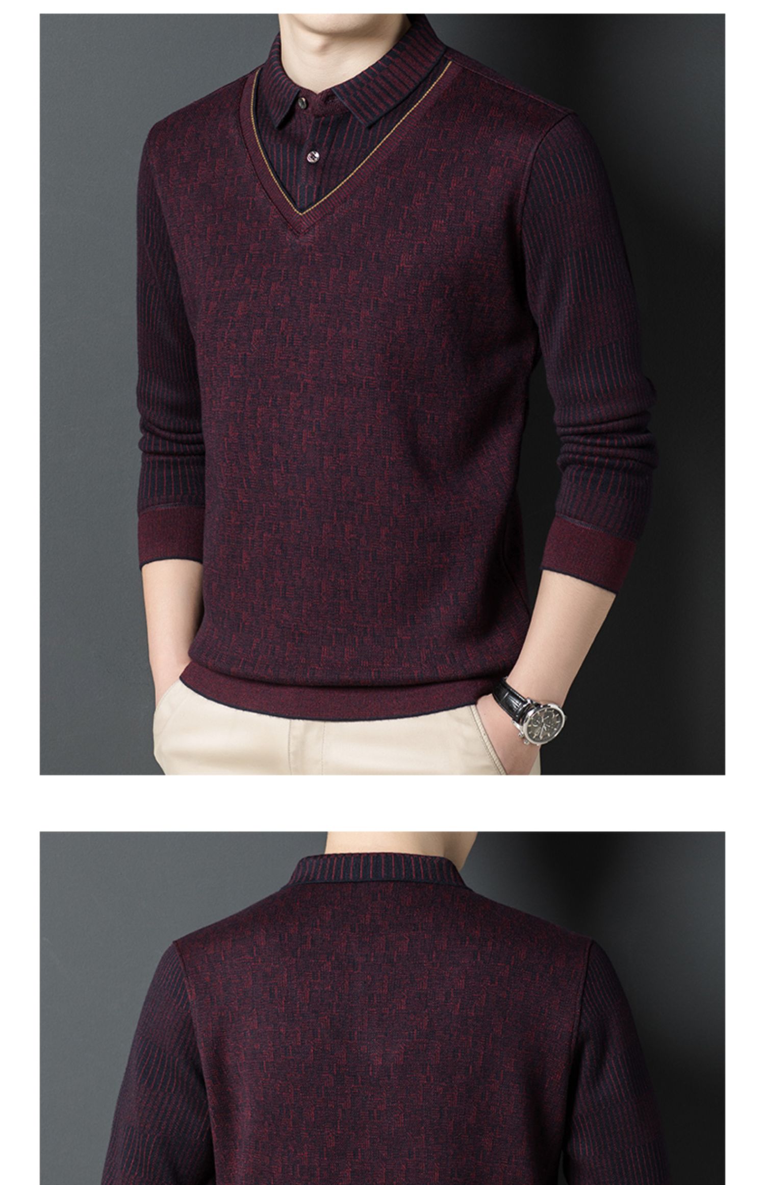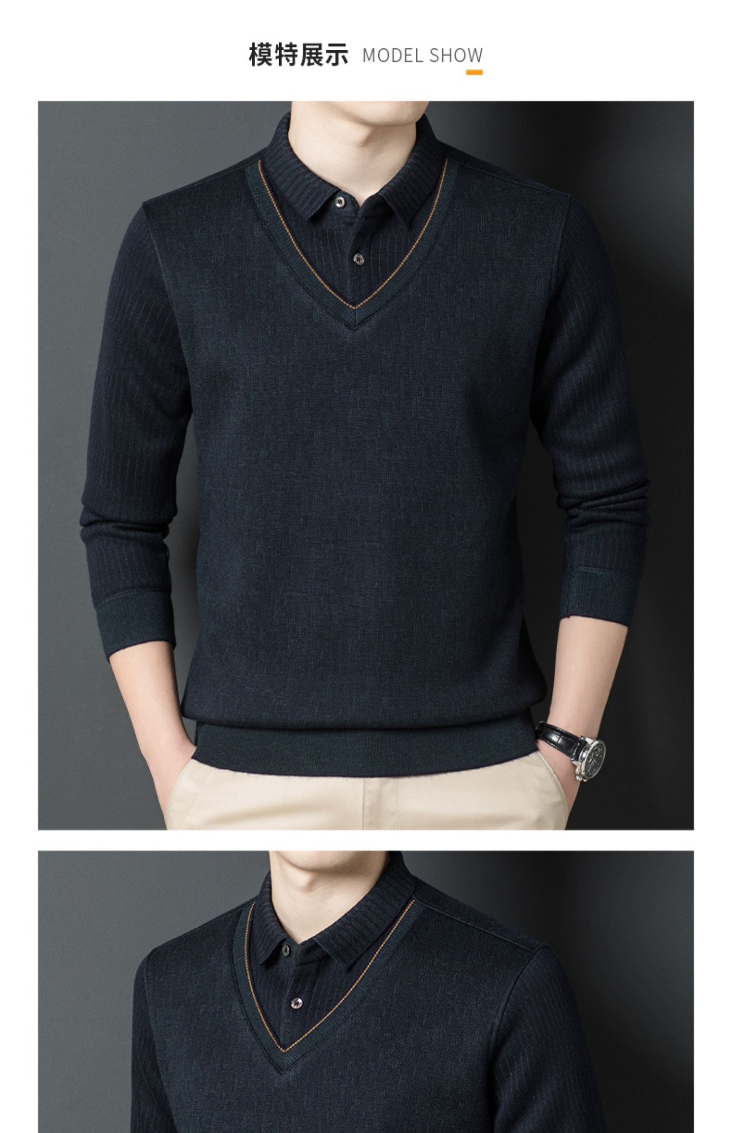 【含有绵羊毛&加绒加厚】圣得西男士假两件商务休闲毛衫秋季新款中青年加厚打底毛衣
