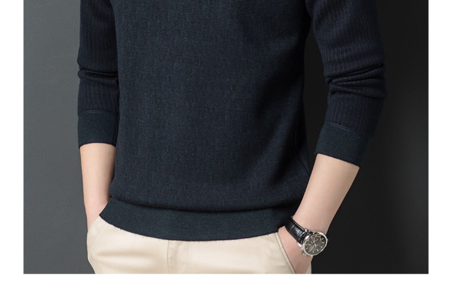 圣得西男士时尚新颖圆领舒适长袖针织衫T恤