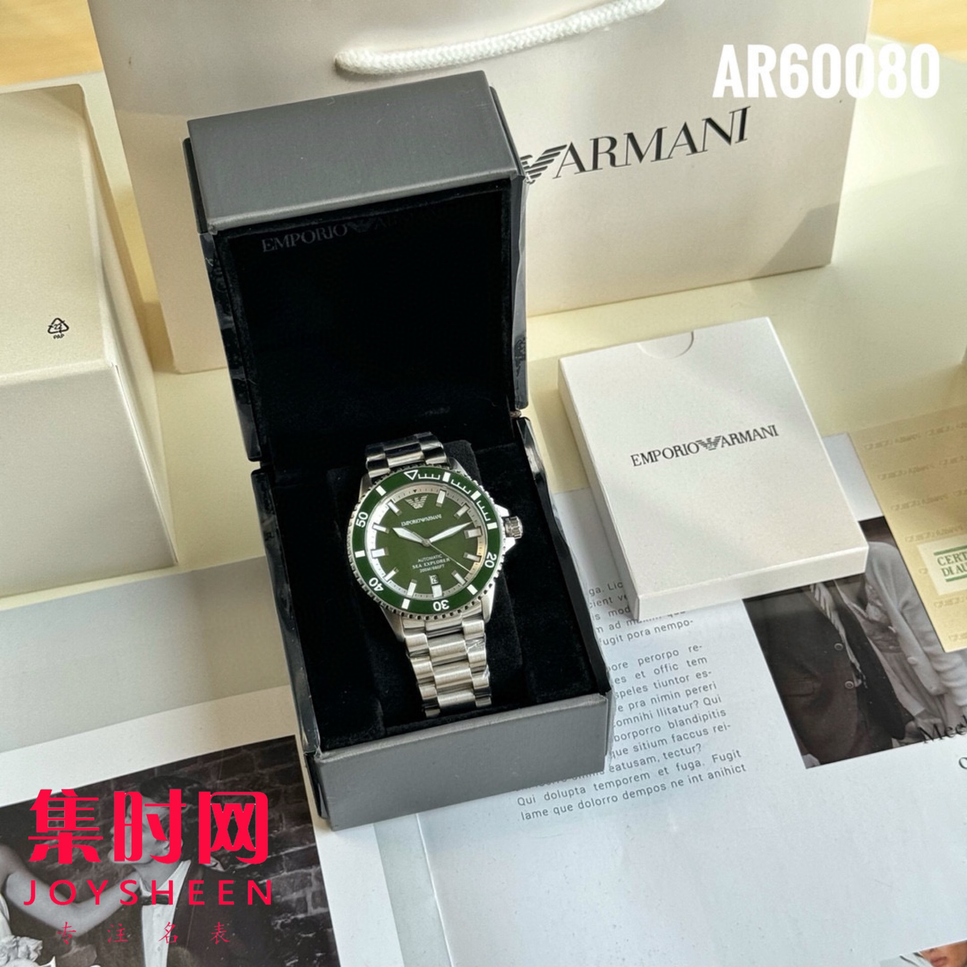 原单阿玛尼AR60080绿水鬼 钢带男士机械腕表