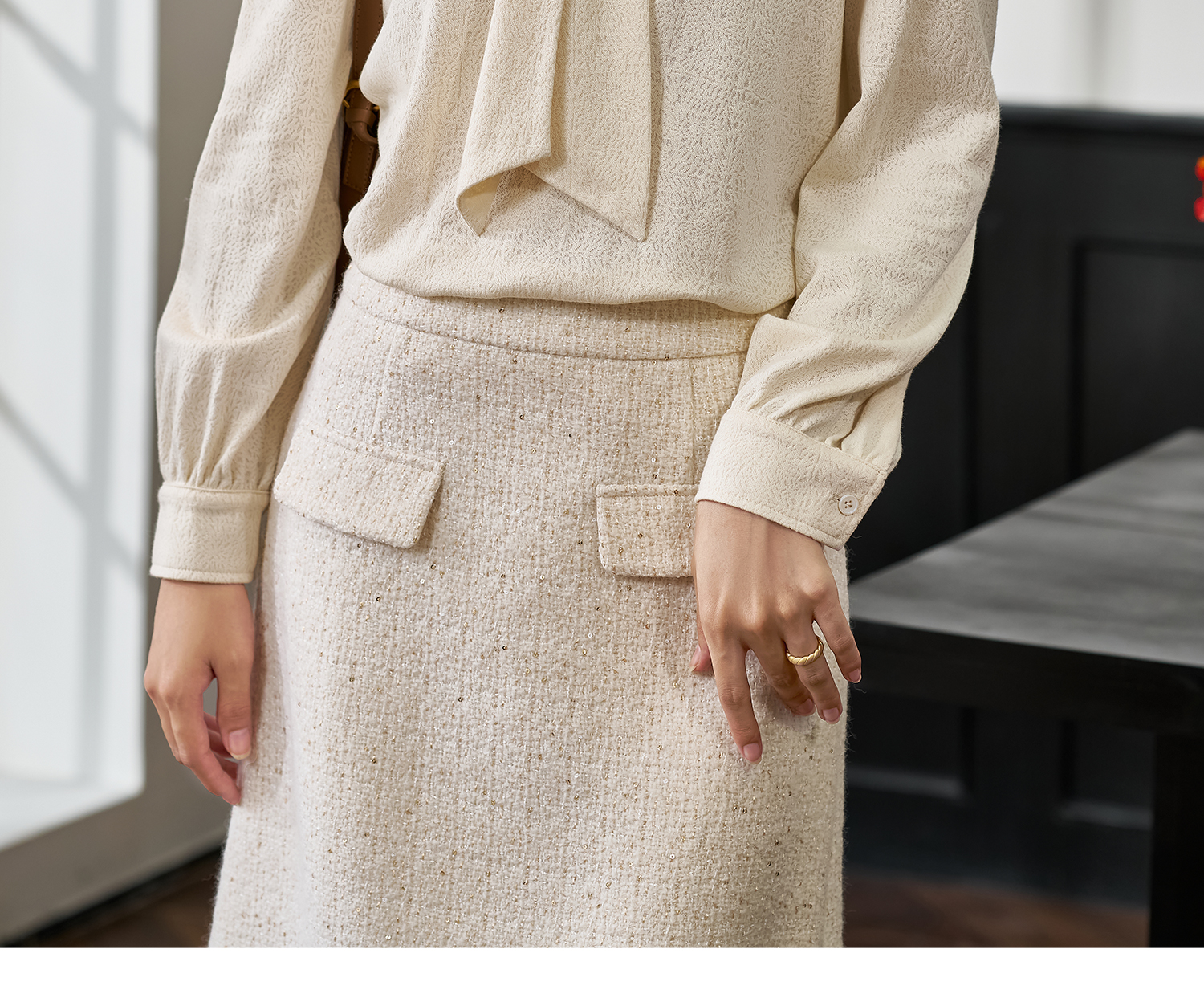 米思阳2025秋季新款通勤百搭设计感衬衫重工提花肌理感上衣女4265