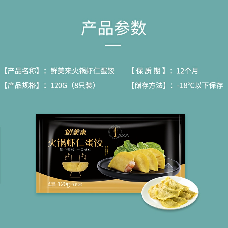 周四取货:【鲜美来火锅虾仁蛋饺】一盒120g(8只),每个蛋饺,一只虾仁,外皮金黄弹嫩,煎炸煮汤,火锅搭配,美味可口!