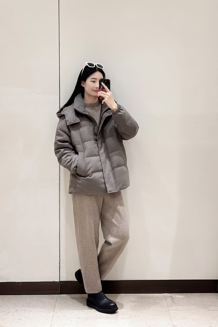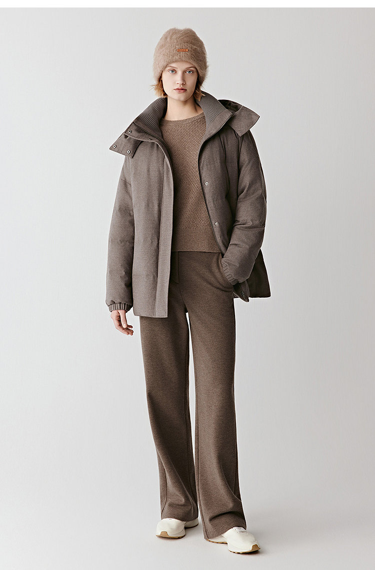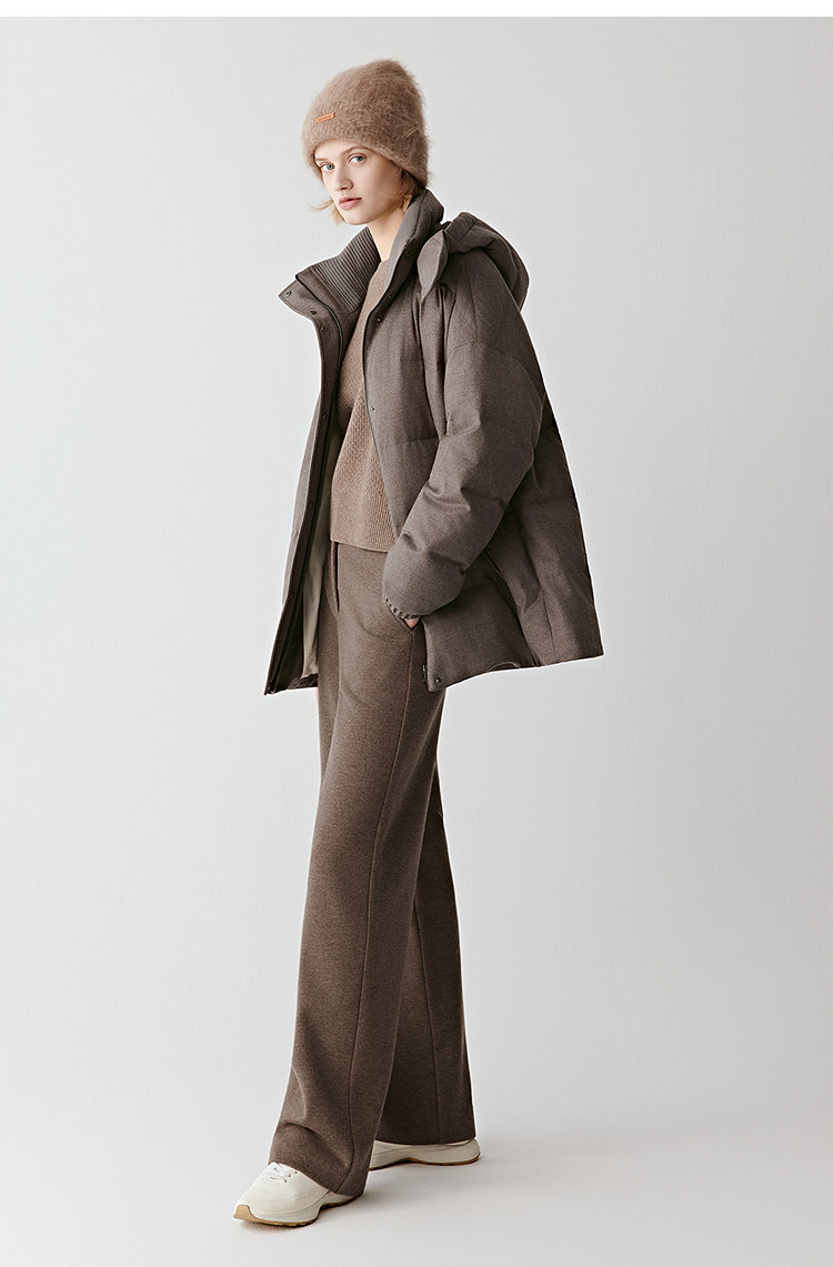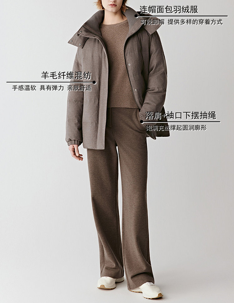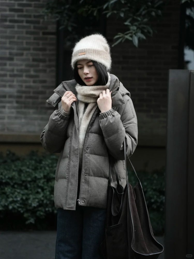 小禾同款褐调夹花羽绒服,冬日暖绒有型