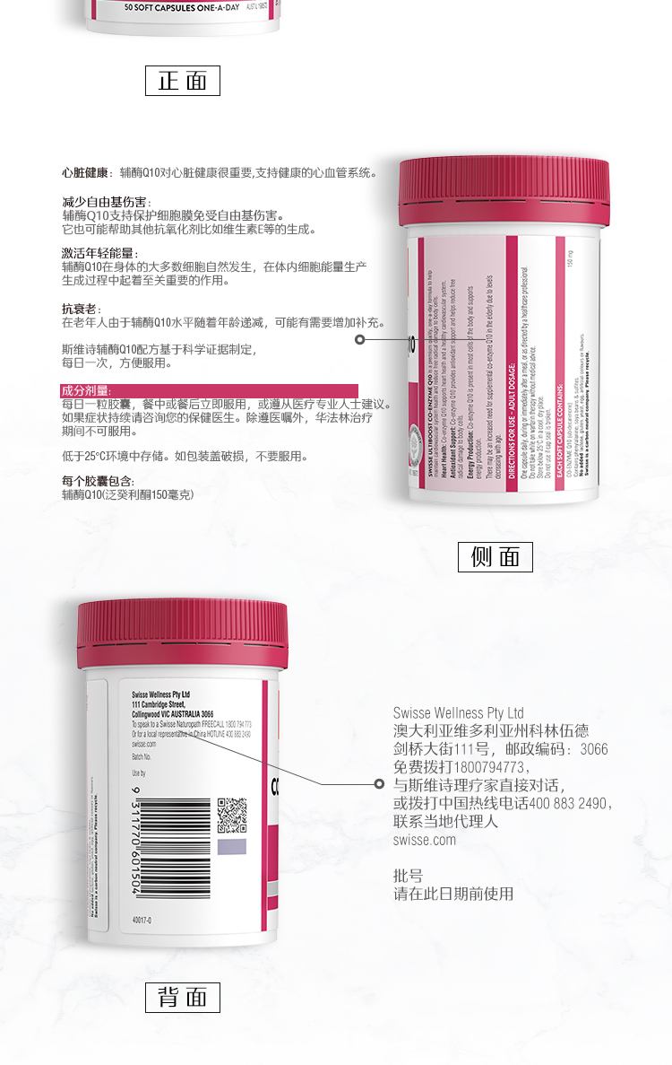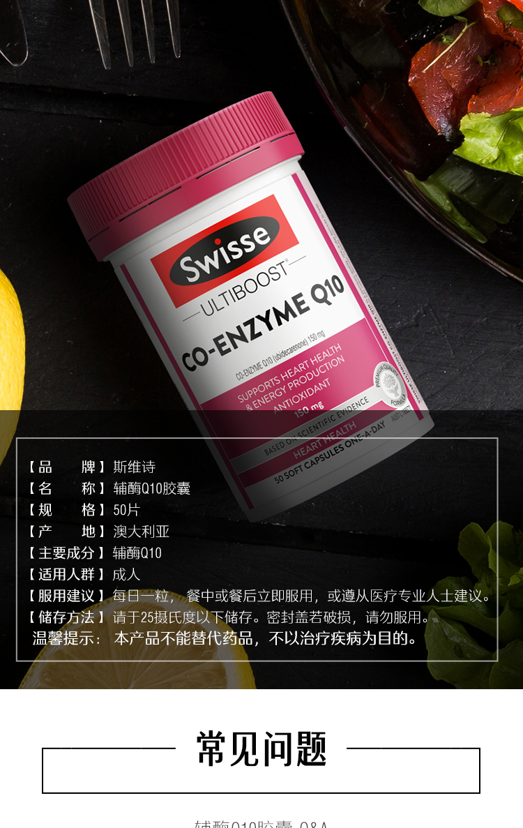 Swisse斯维诗辅酶Q10软胶囊150mg50粒/瓶【exp2024.8非质量问题不退不换】