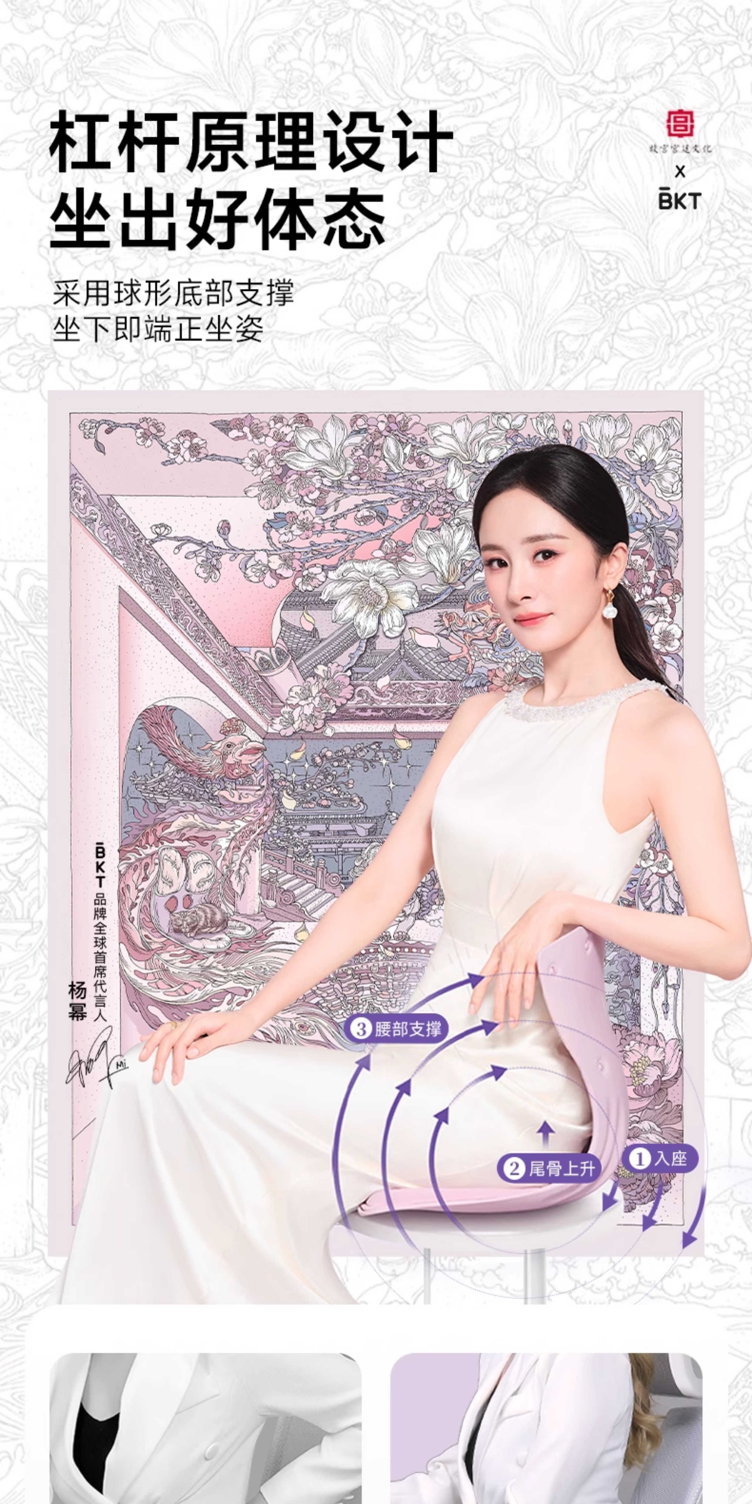 【杨幂代言 故宫宫廷联名款】BKT护腰坐垫久神器靠背人体工学椅座姿托办公室部支撑