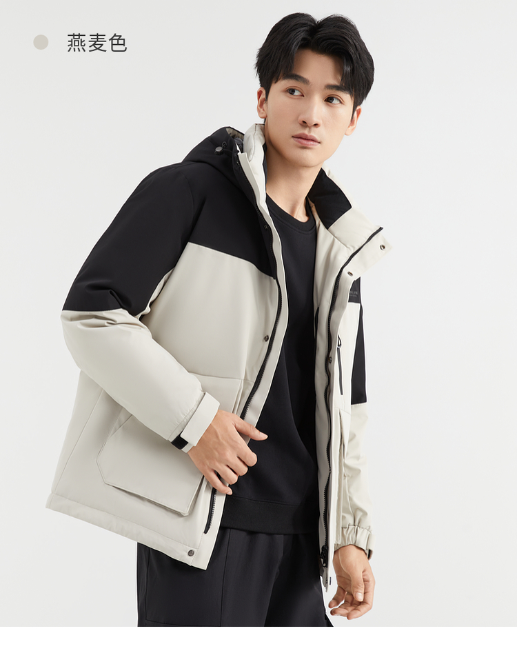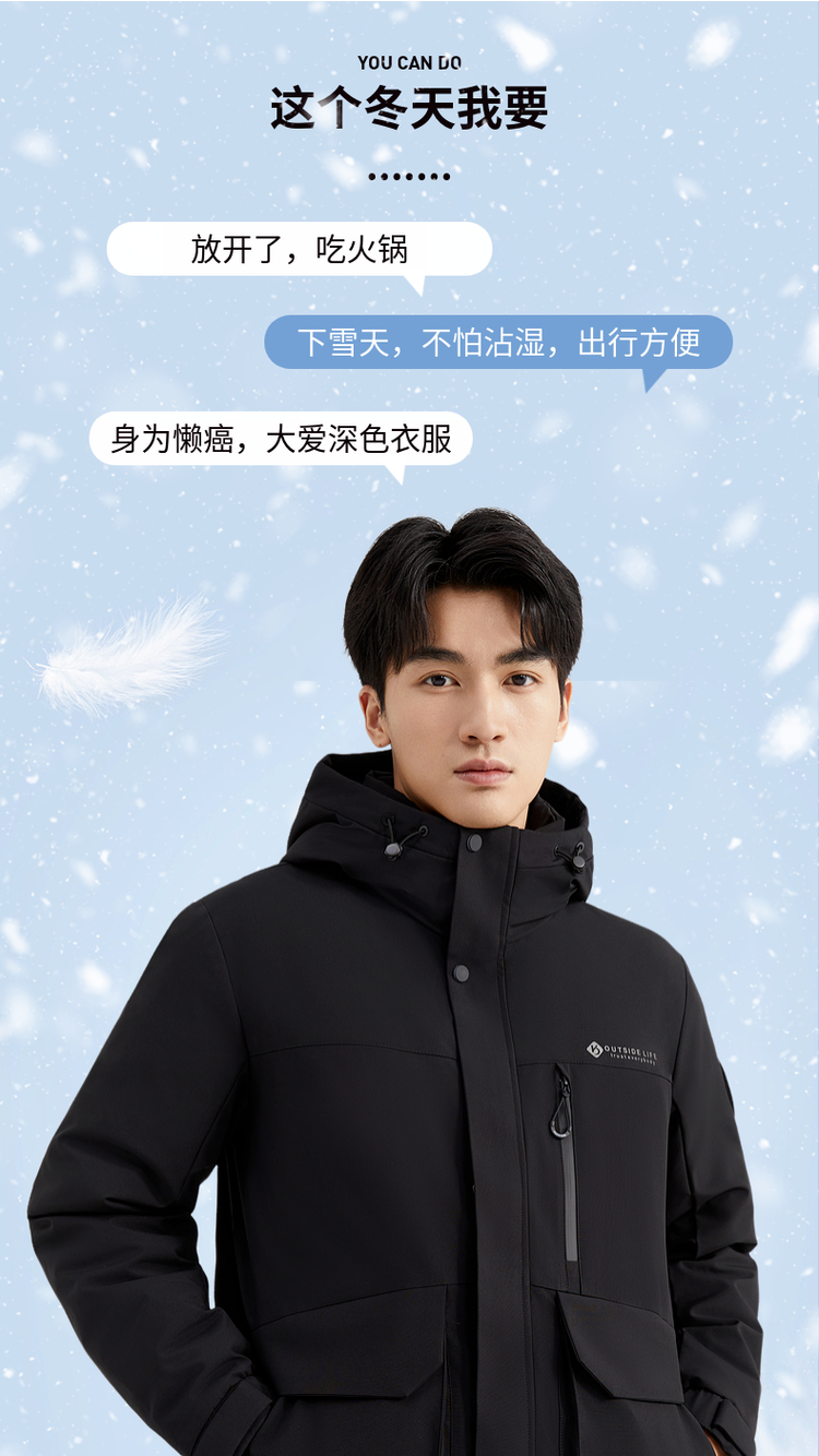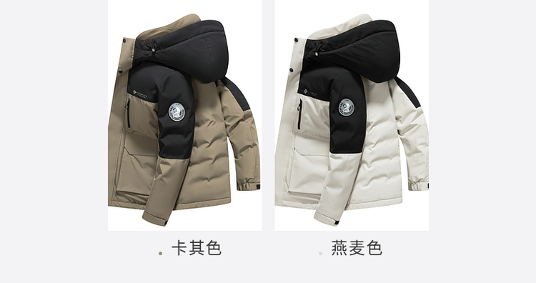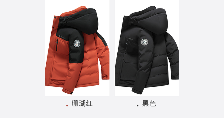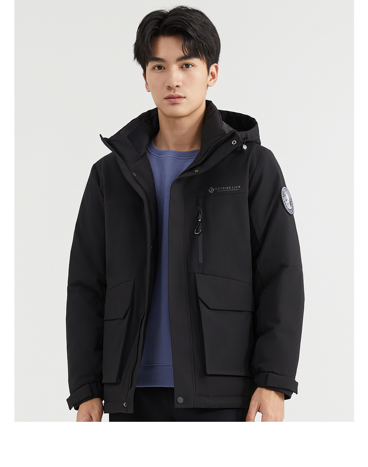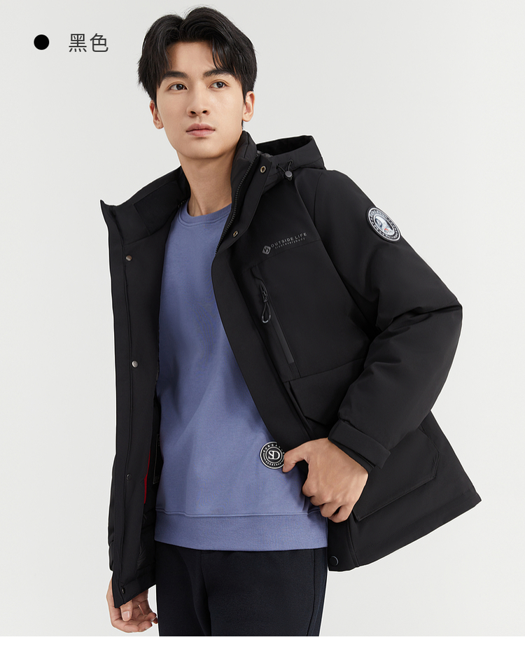 【90%鸭绒】圣得西男装冬季加厚黑色连帽男士羽绒服外套