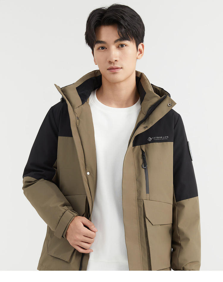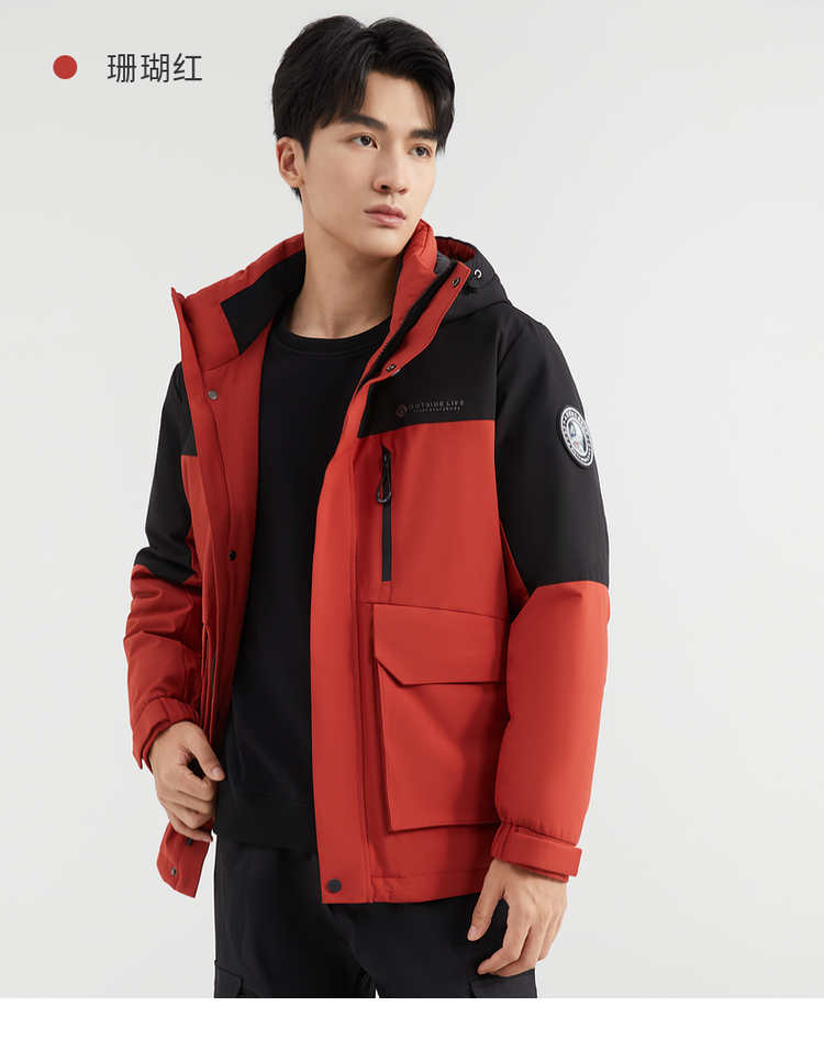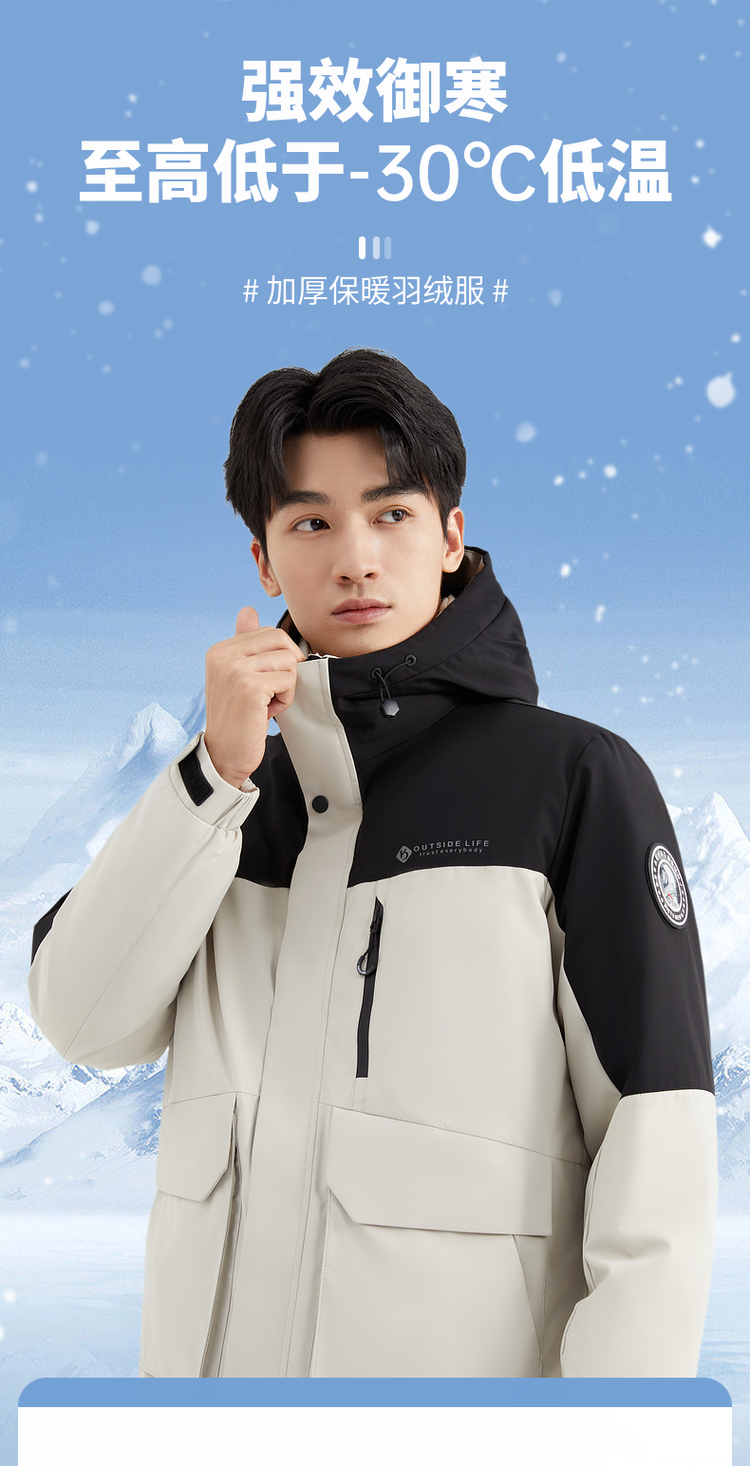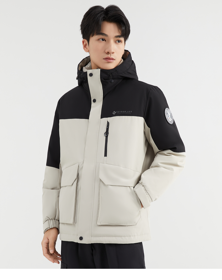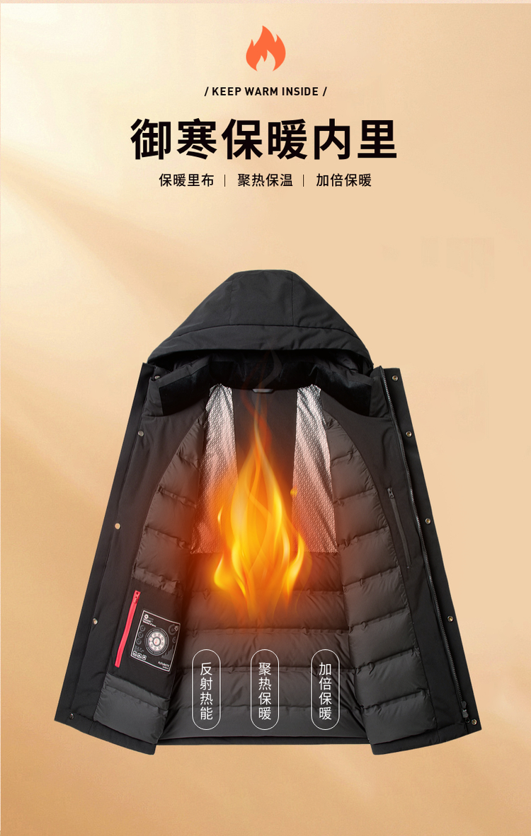 【90%鸭绒】圣得西男装冬季加厚黑色连帽男士羽绒服外套