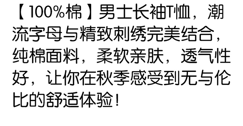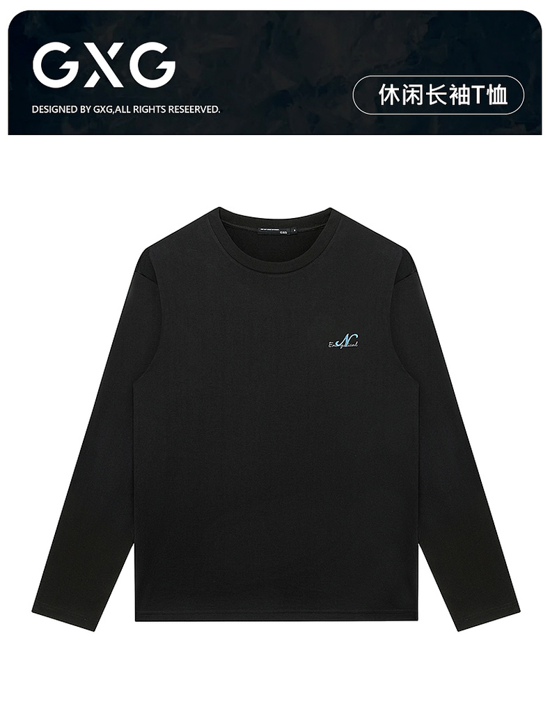 GXG男装【100%棉】秋季潮流字母刺绣简约百搭男式长袖T恤K&C