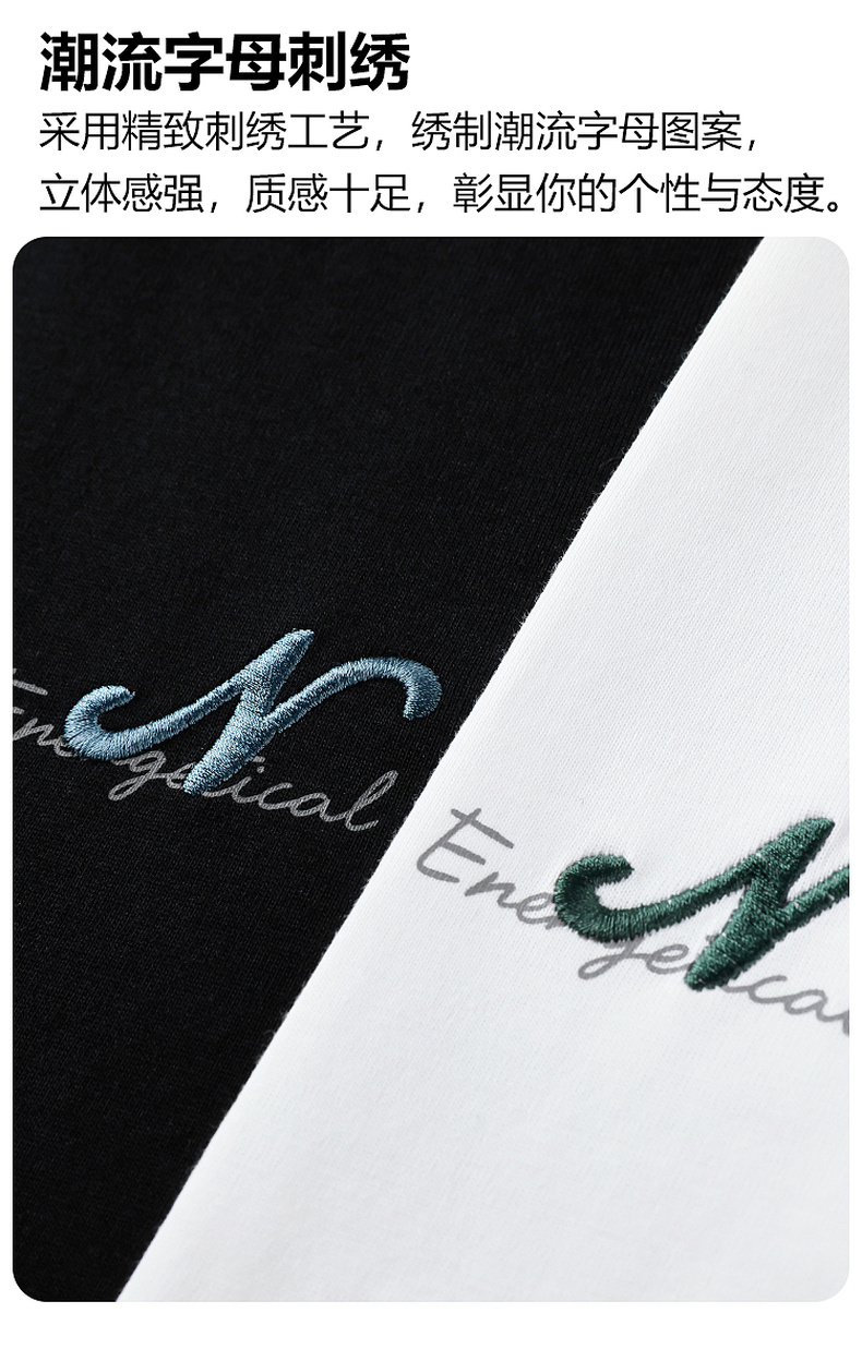 GXG男装 双色精致绣花休闲宽松圆领短袖T恤男生上衣 夏季热卖