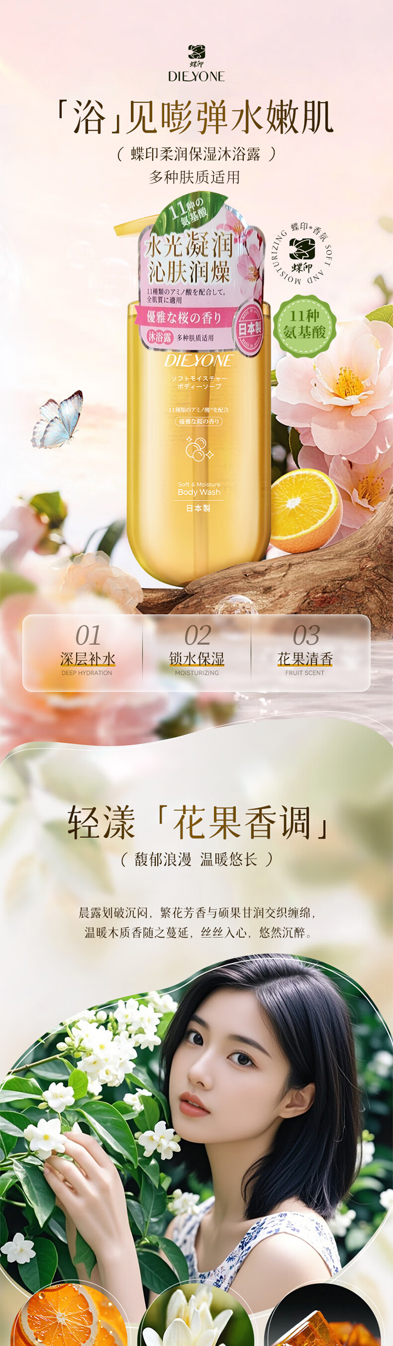 日本进口蝶印沐浴露500ml 【柔润保湿丨水润丝滑型】
