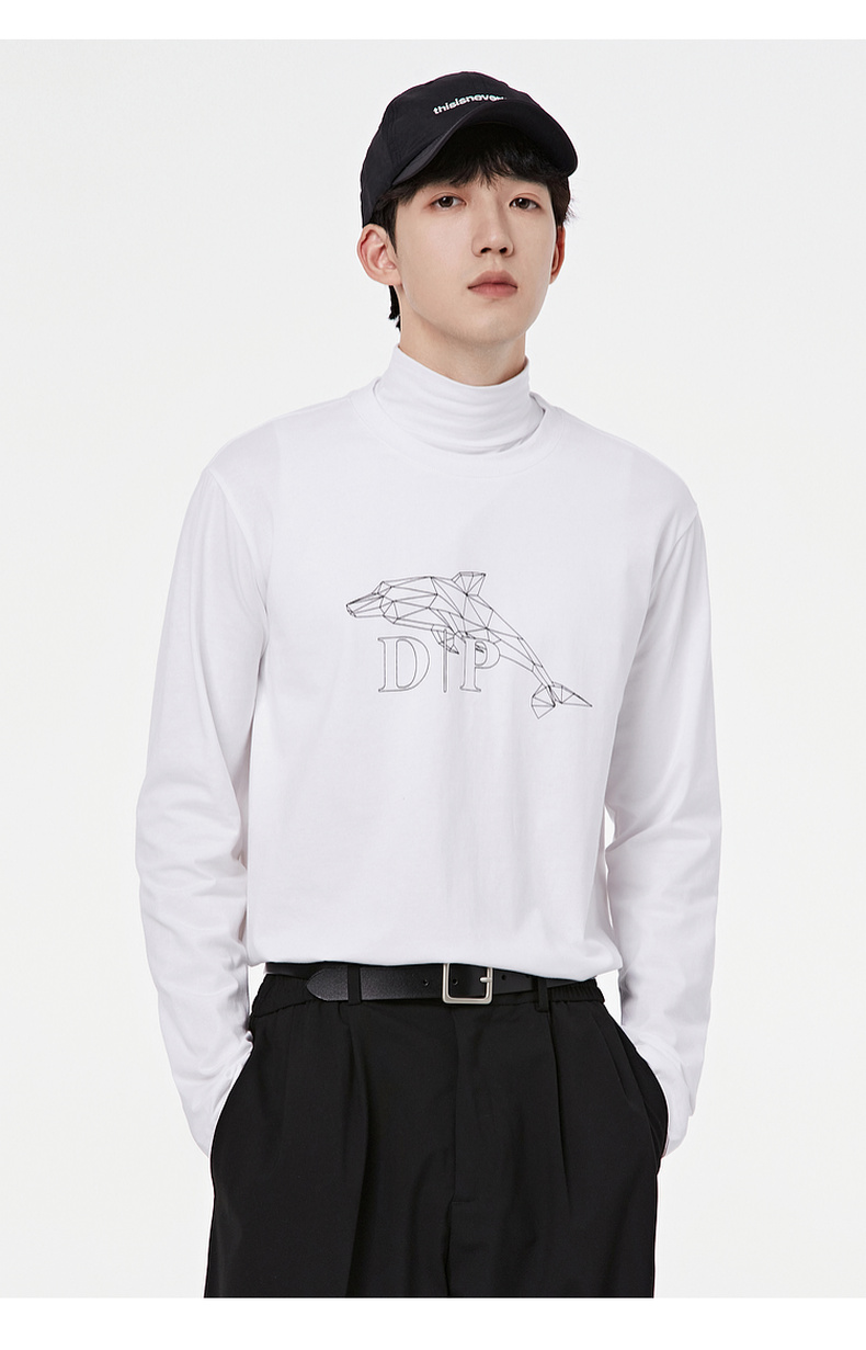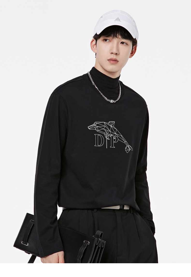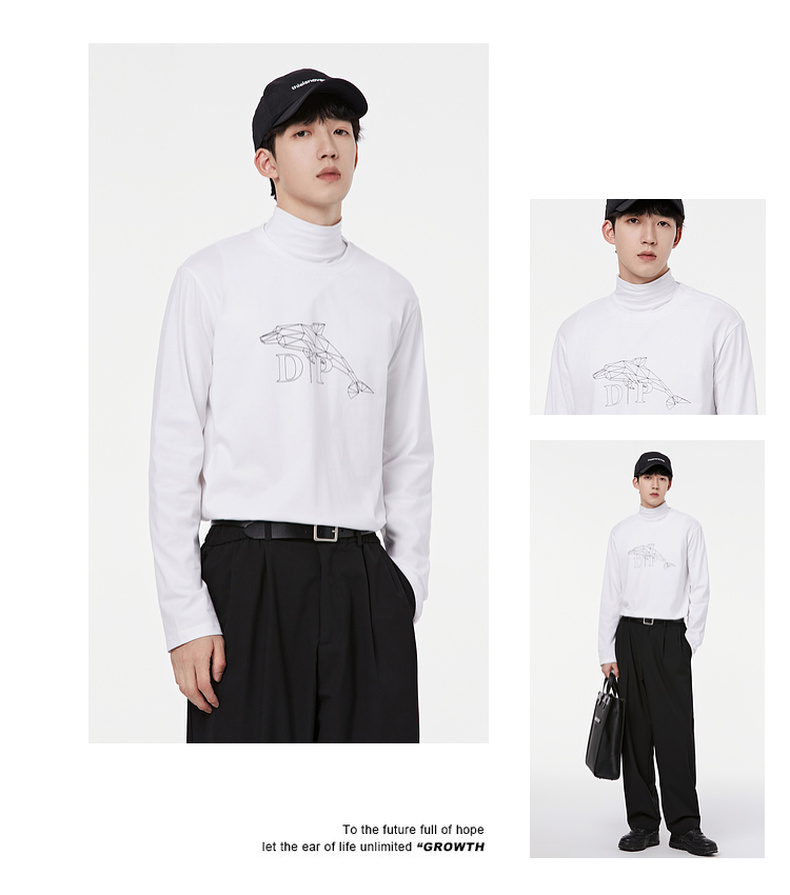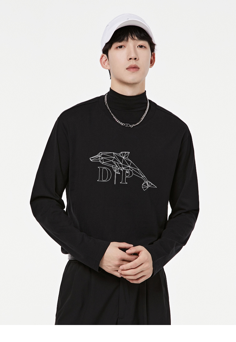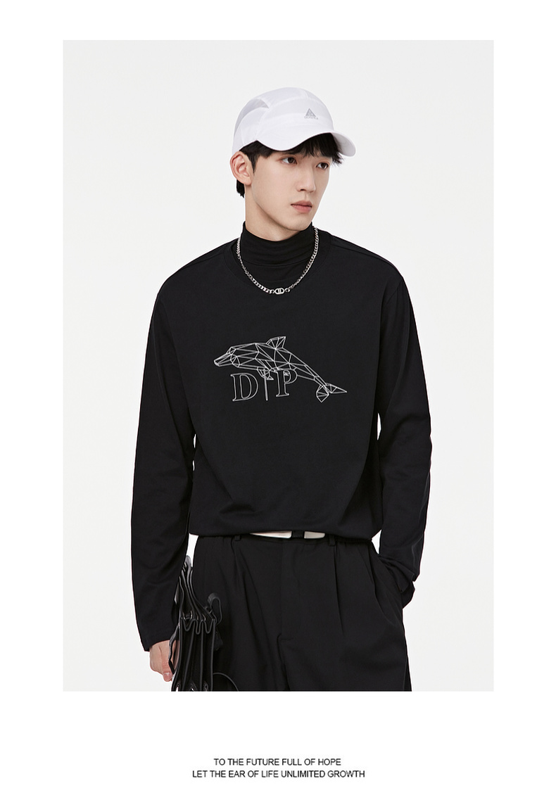 GXG男装【鲸鱼印花】秋季时尚字母男款纯棉圆领长袖t恤K&C