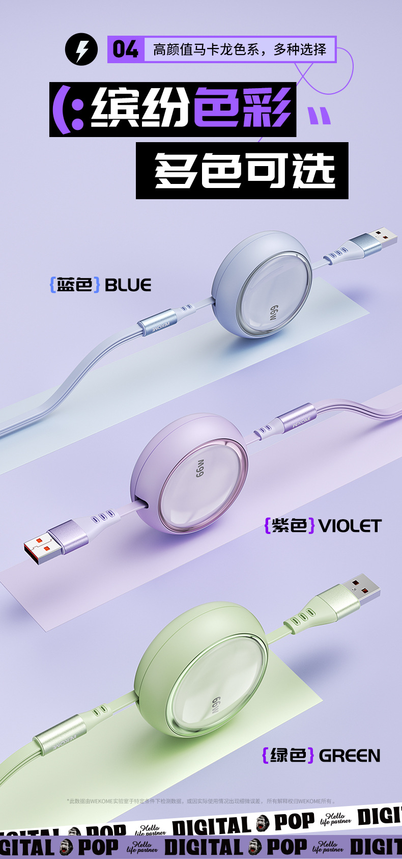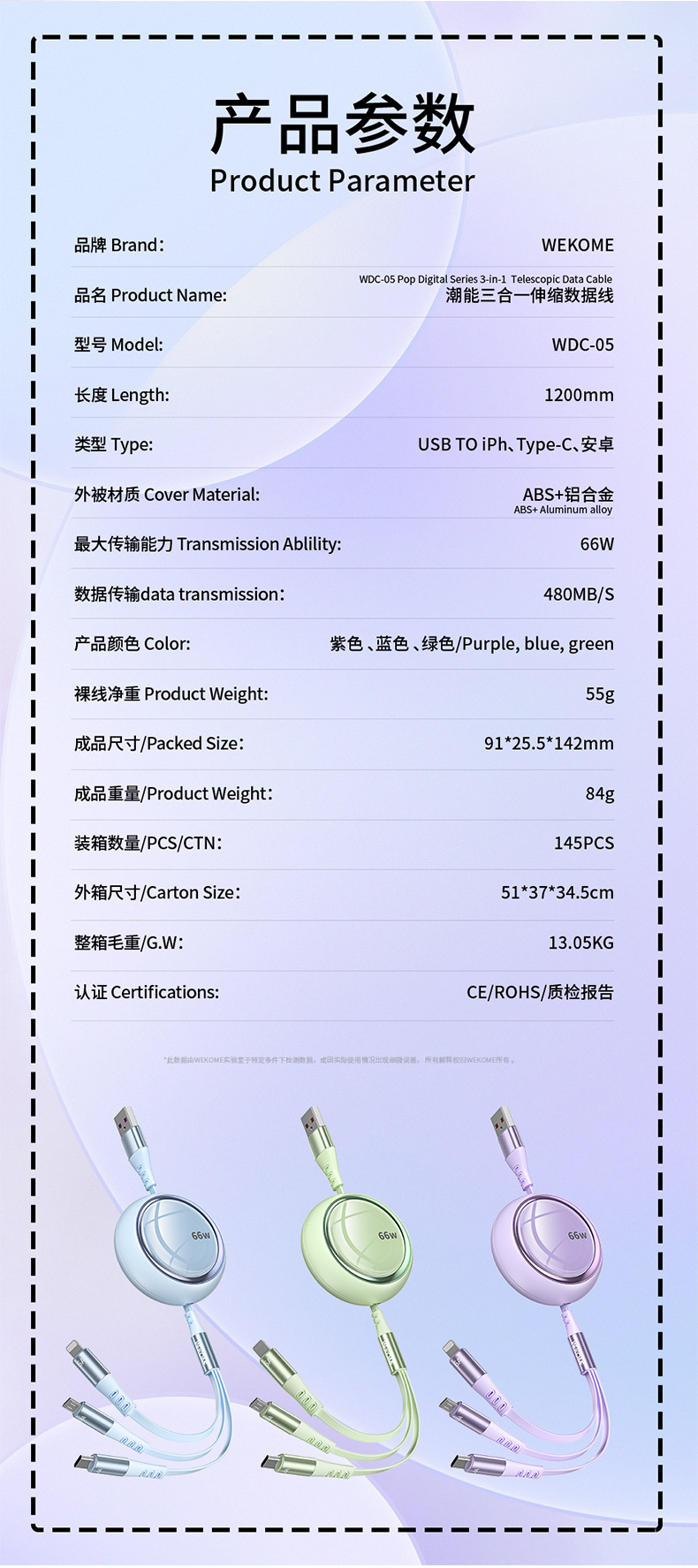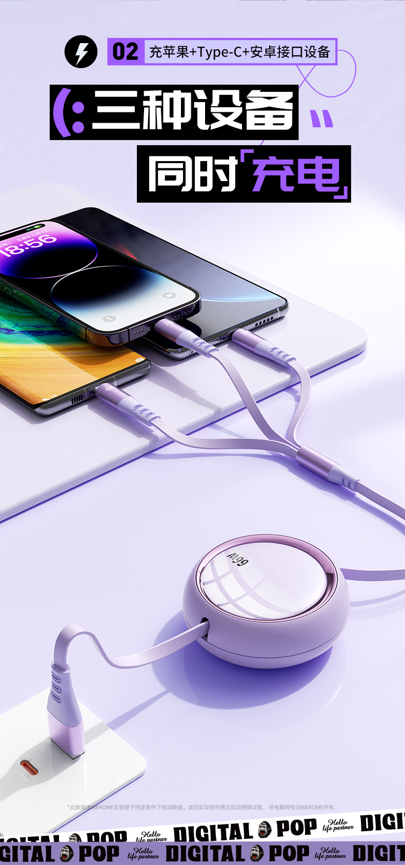 「伸缩一拖三!66W快充款」WEKOME快充伸缩一拖三数据线 手机充电线三合一适用苹果安卓type-c数码配件