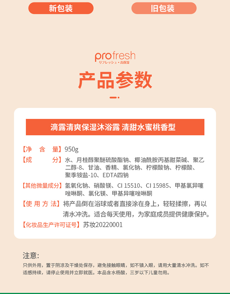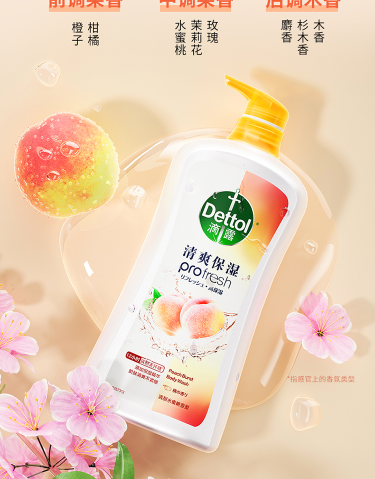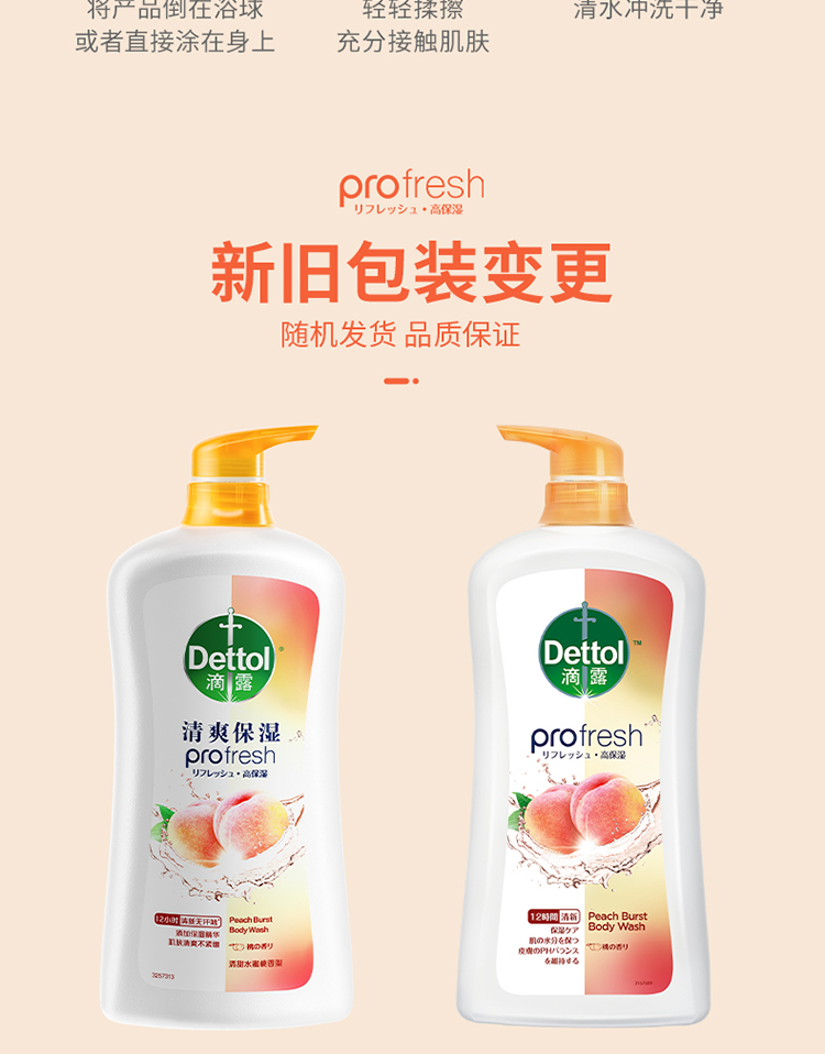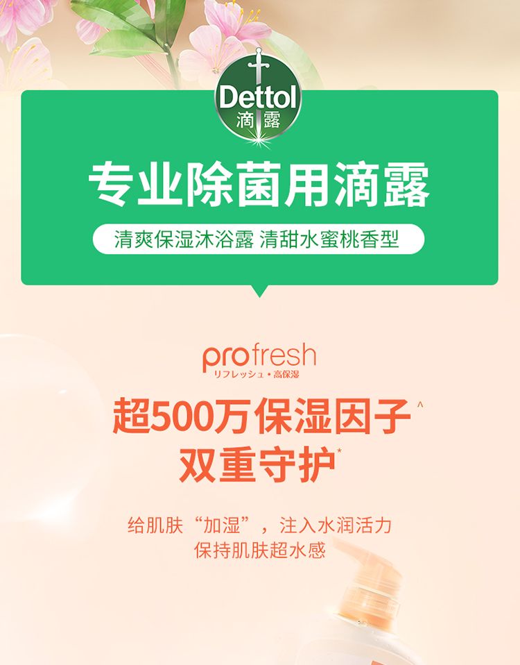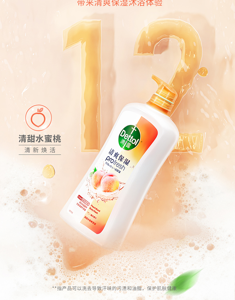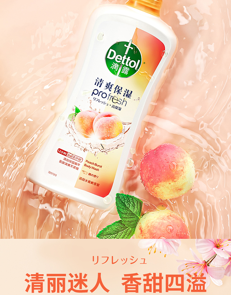 滴露清爽保湿沐浴露清甜水蜜桃香型950g