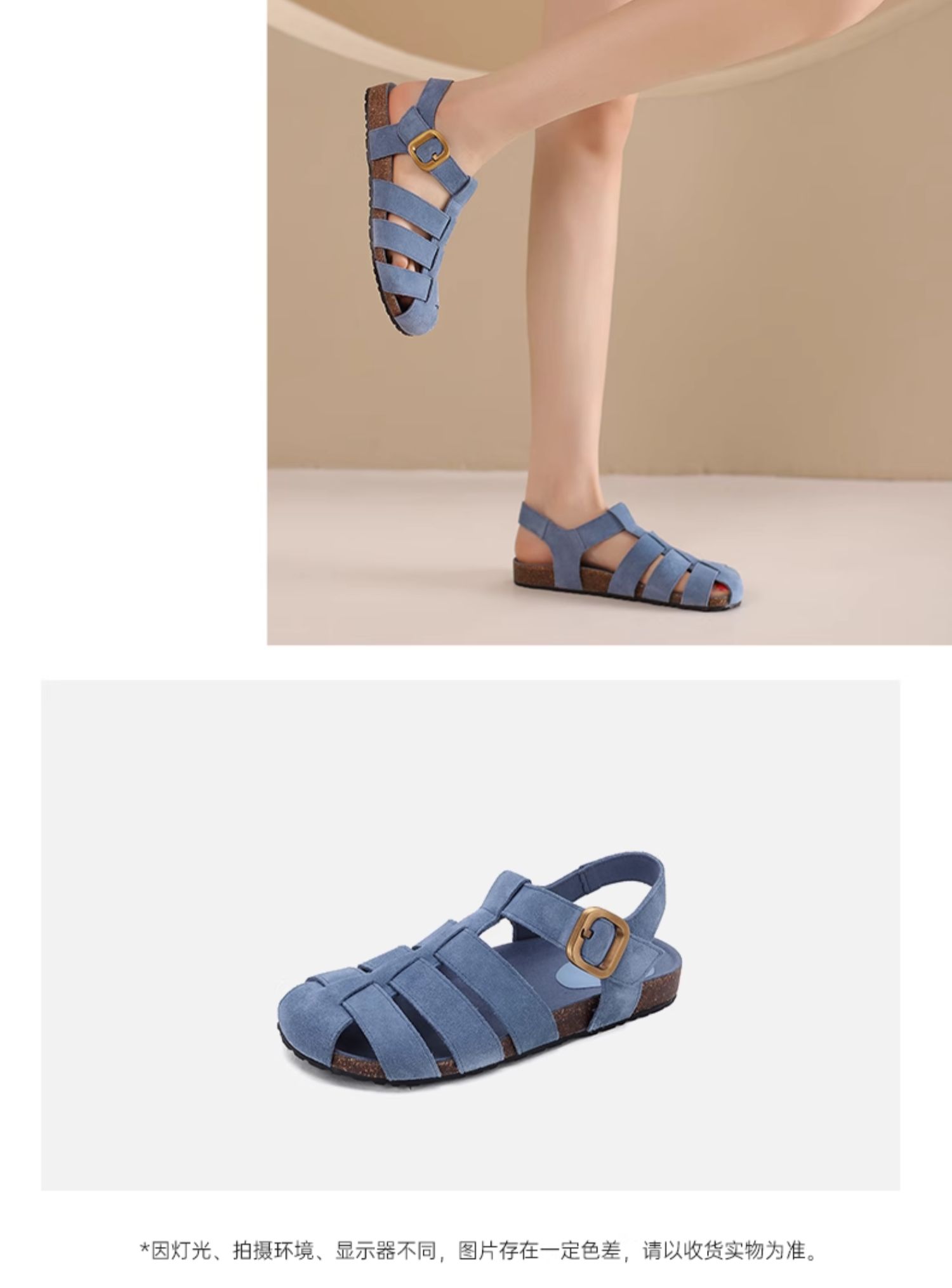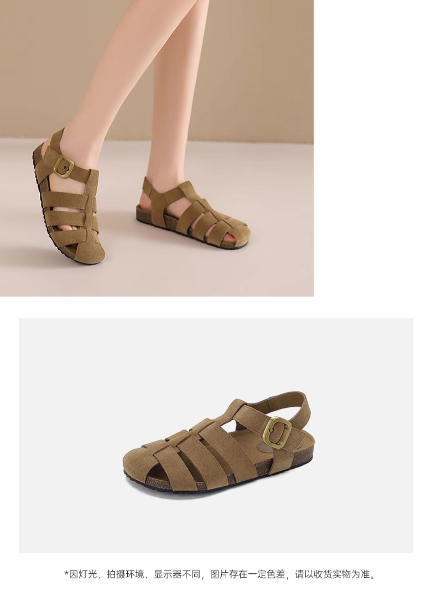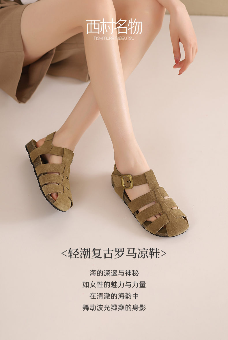 西村名物2024新款夏季外穿休闲凉鞋女平底真皮轻潮复古罗马凉鞋X24BG20221