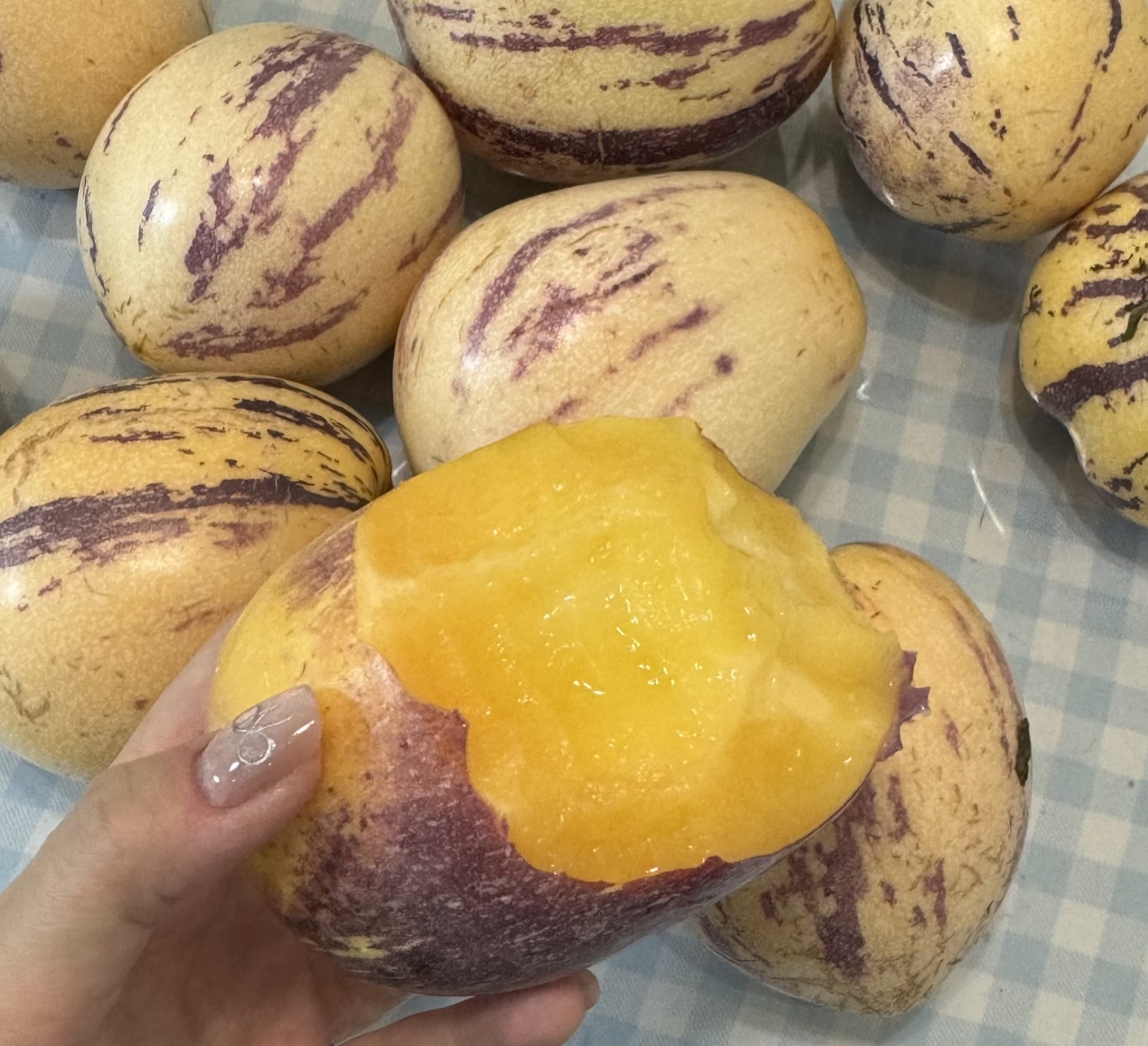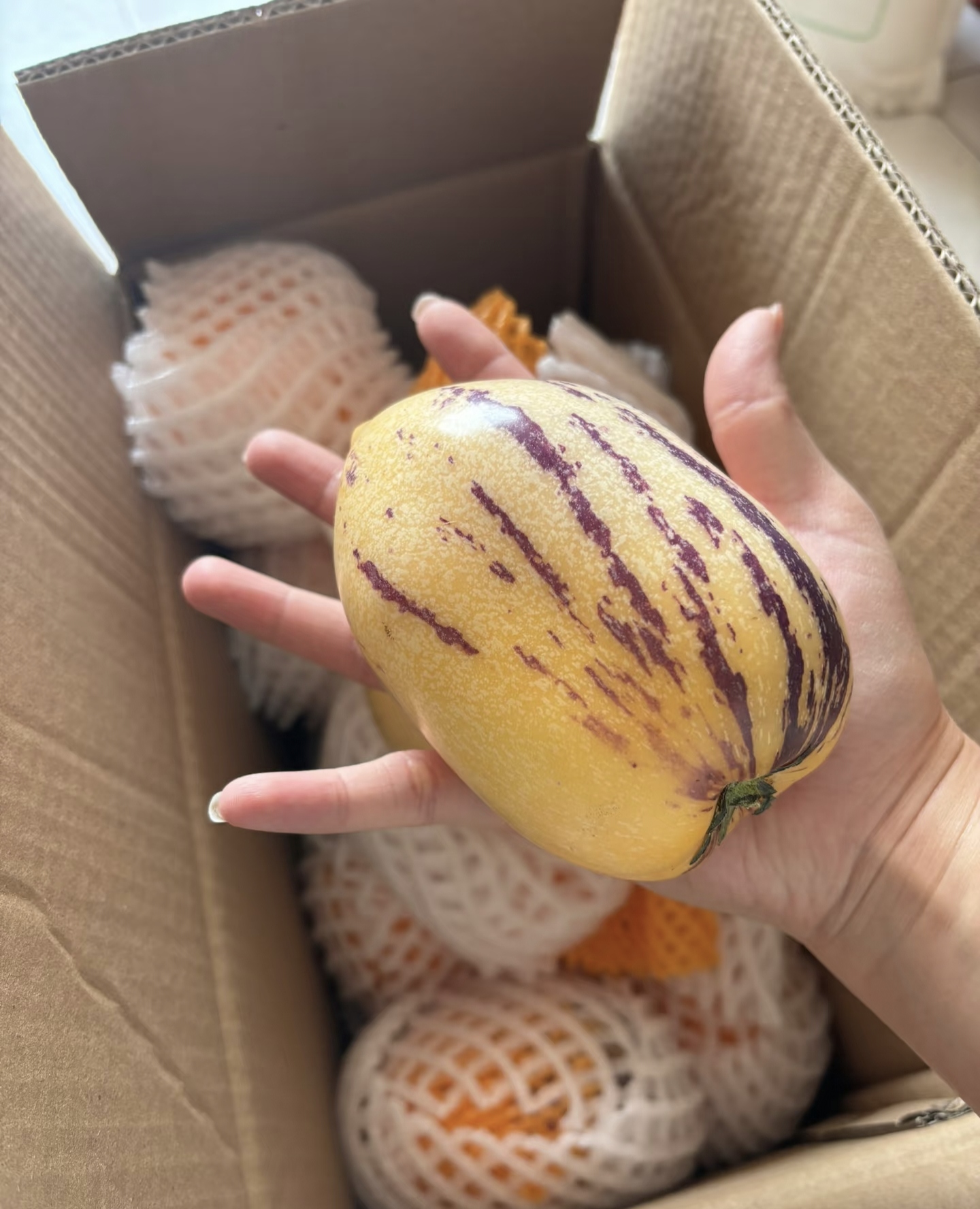 9.果子皮偏白,条纹生长属于个体差异,不影响口感,不做售后标准