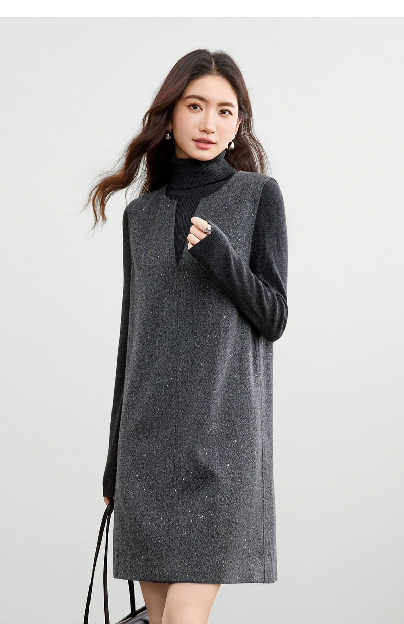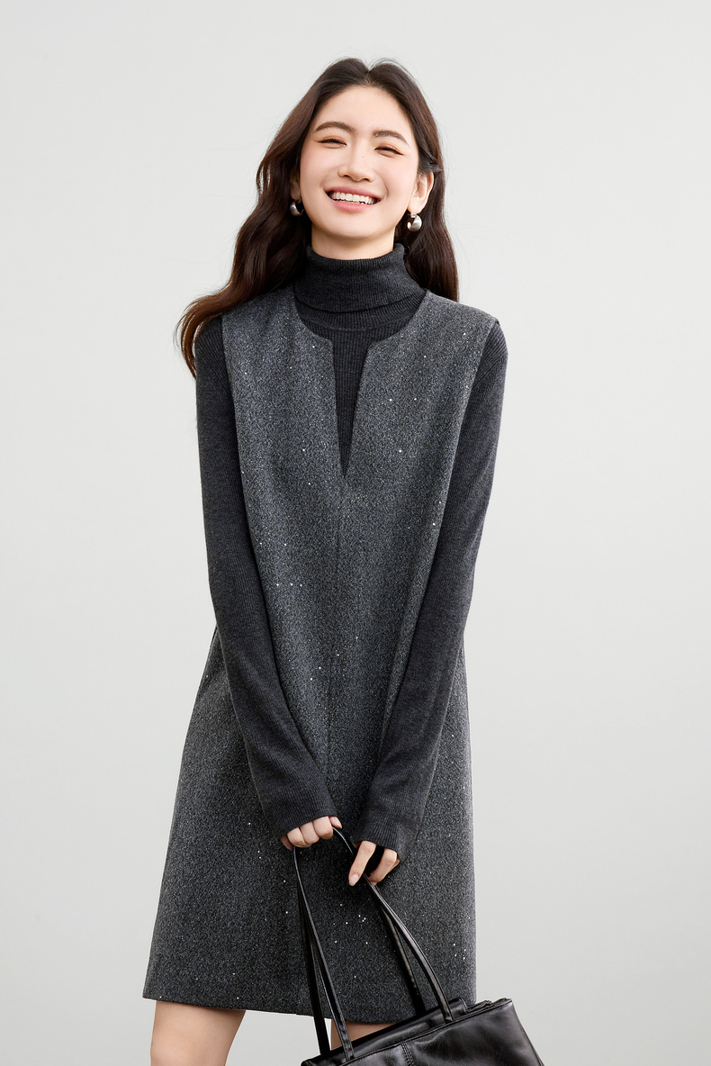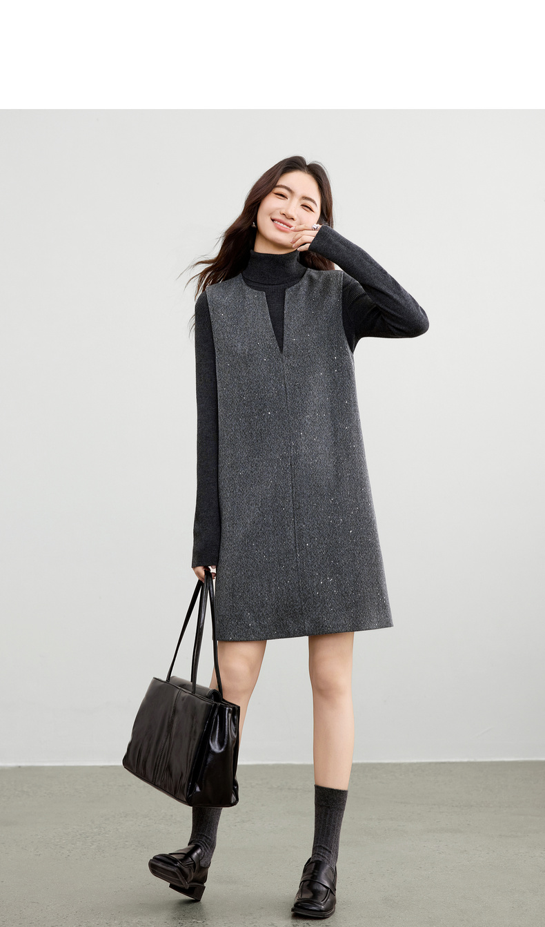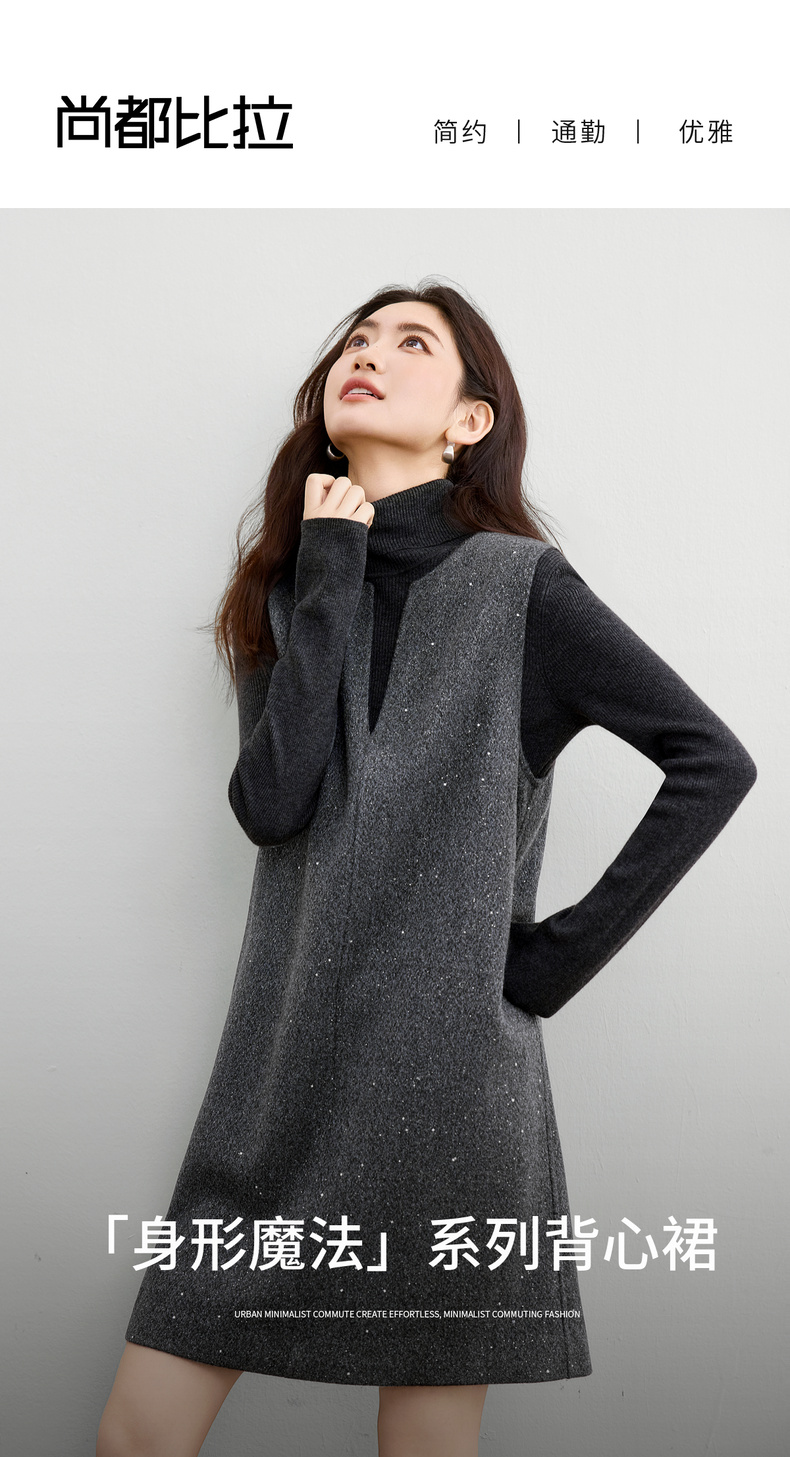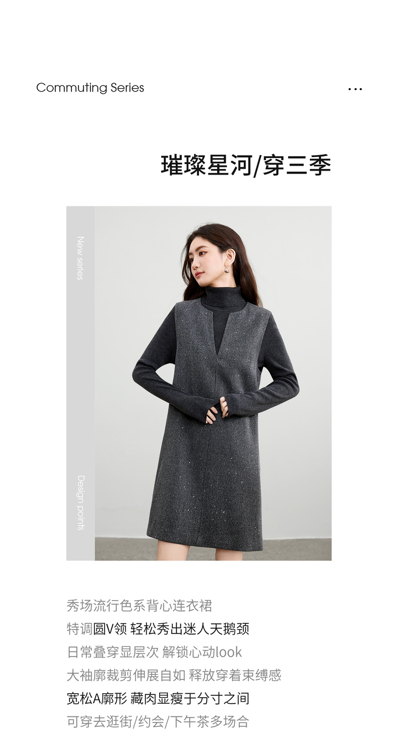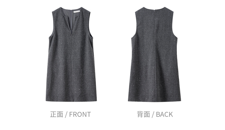【内购】【穿三季】优雅聚会圆V领 宽松显瘦亮片呢子外穿内搭背心连衣裙-153LI3133