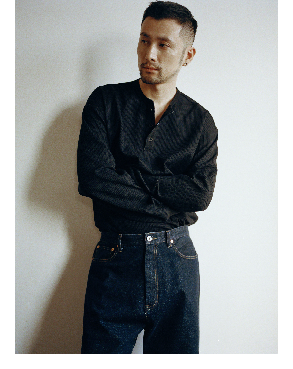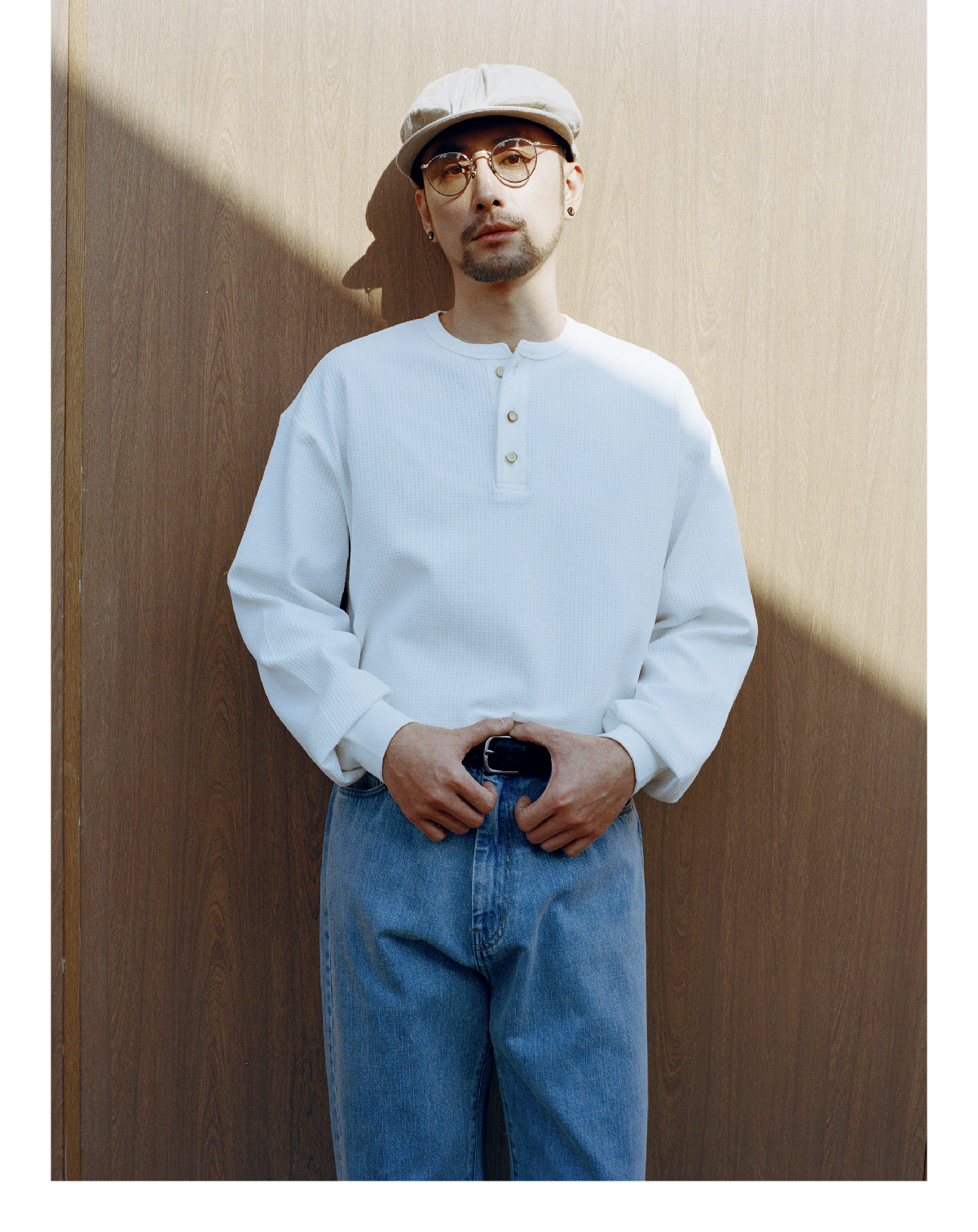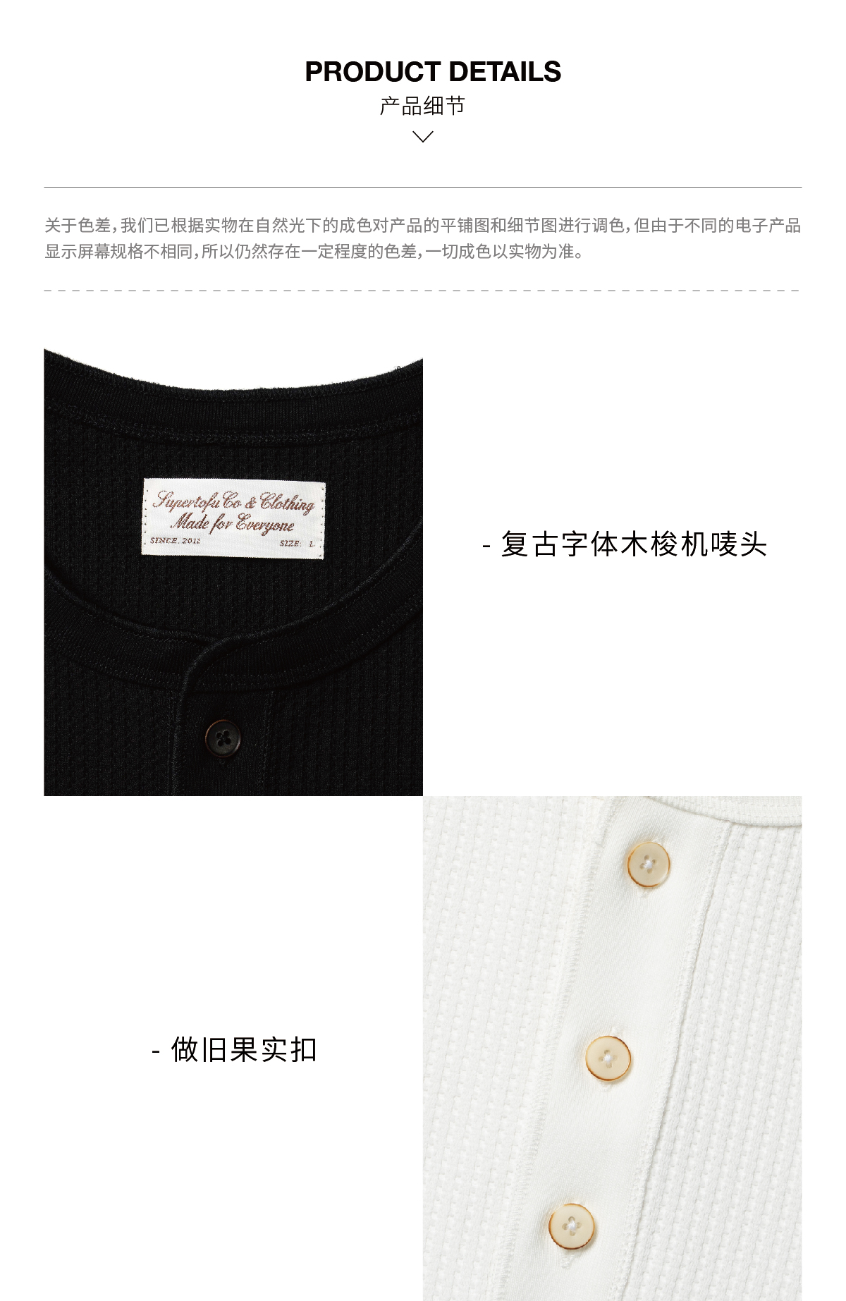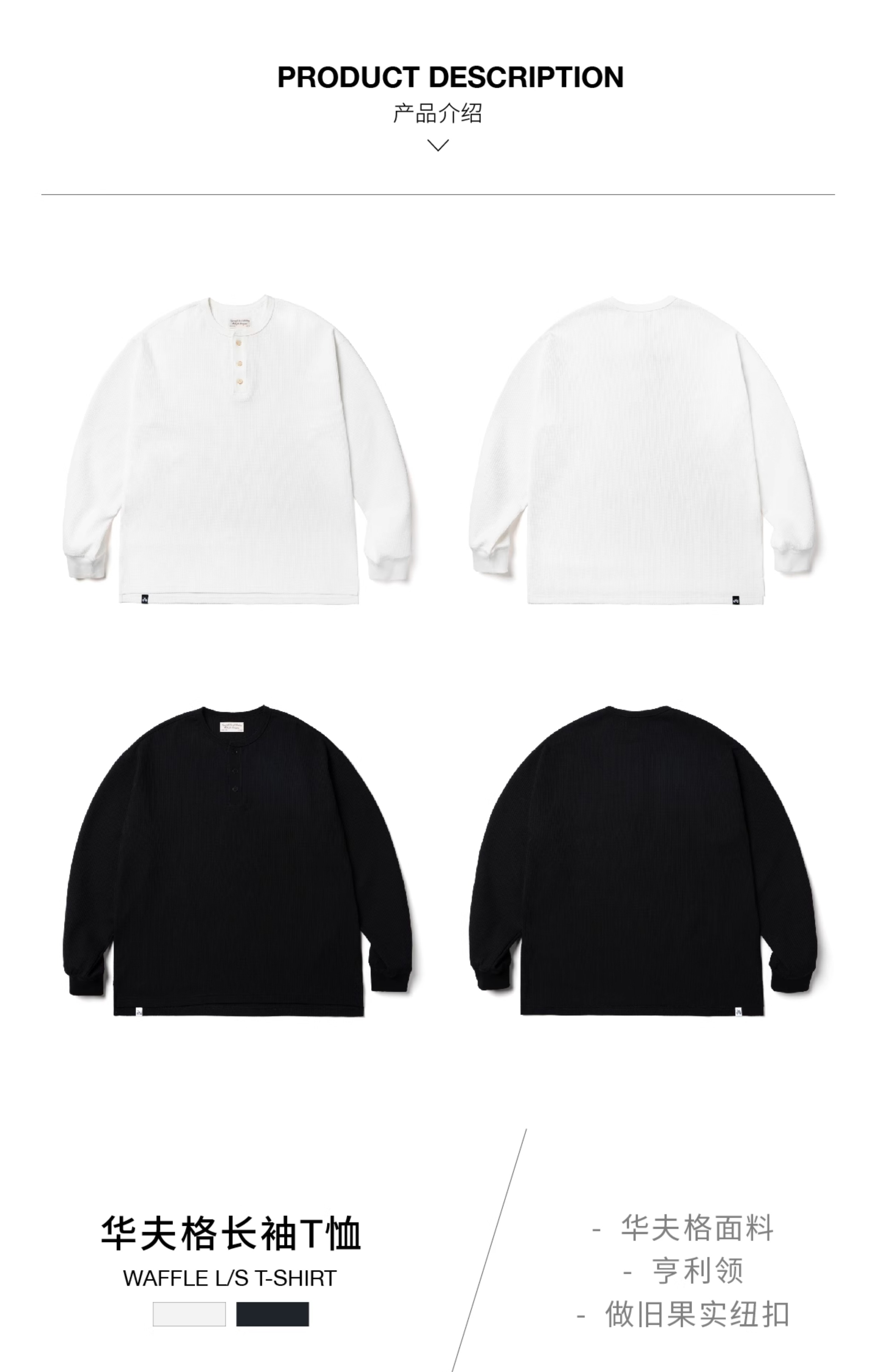 SUPERTOFU(SPTF) /RC-SS25-T001/做旧果实纽扣 亨利领 华夫格 长袖T恤