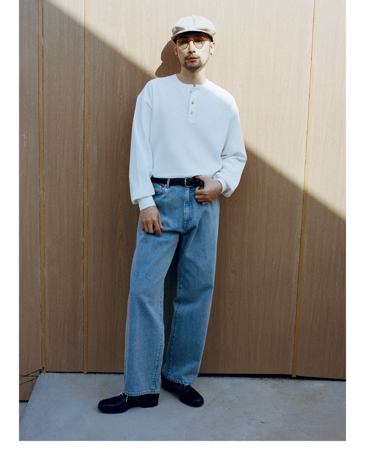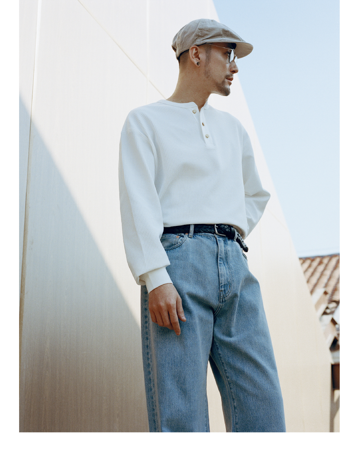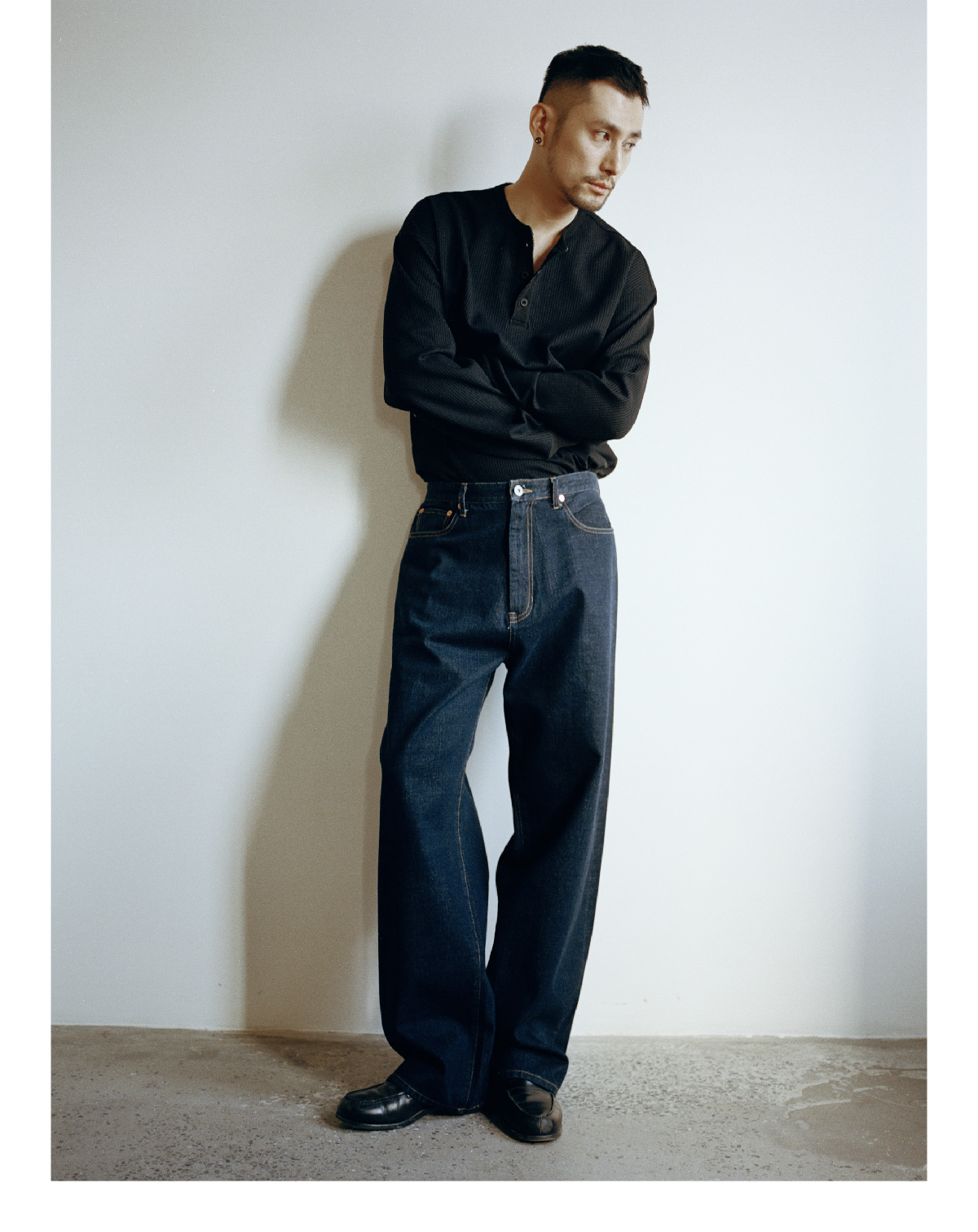 SUPERTOFU(SPTF) /RC-SS25-T001/做旧果实纽扣 亨利领 华夫格 长袖T恤