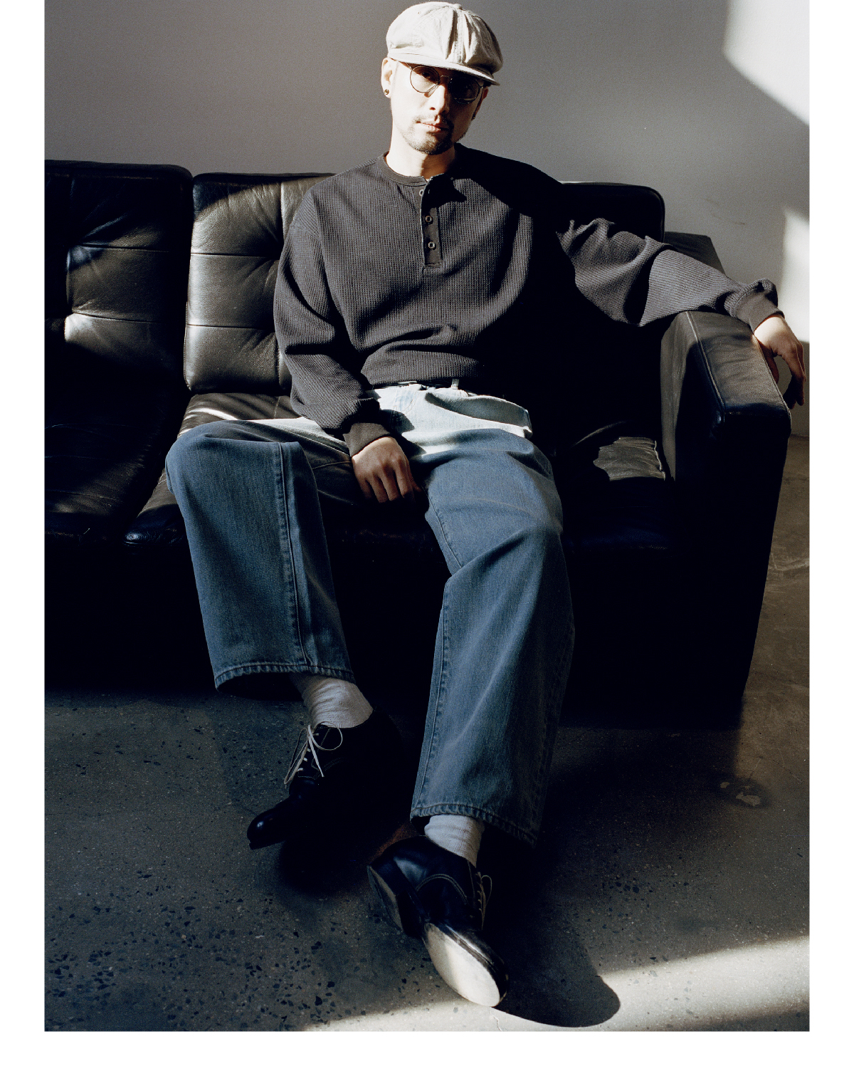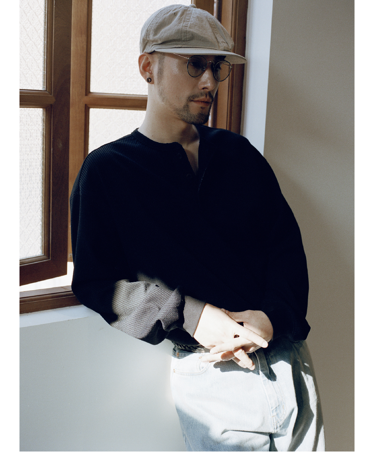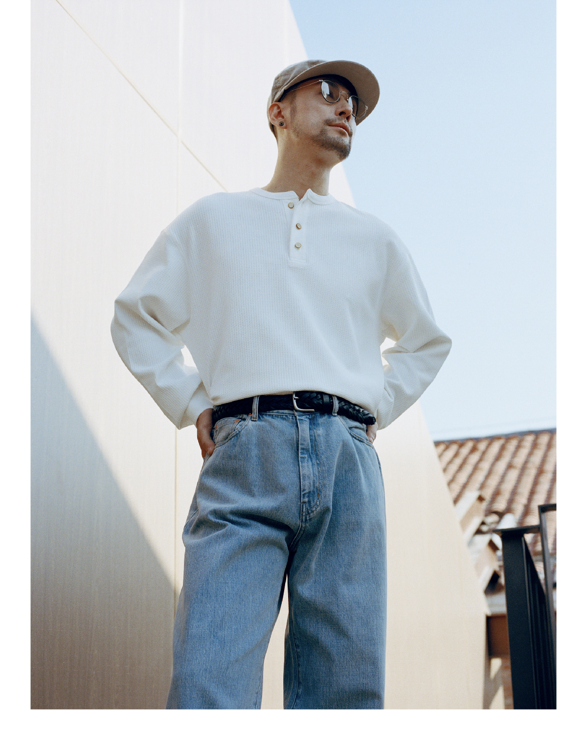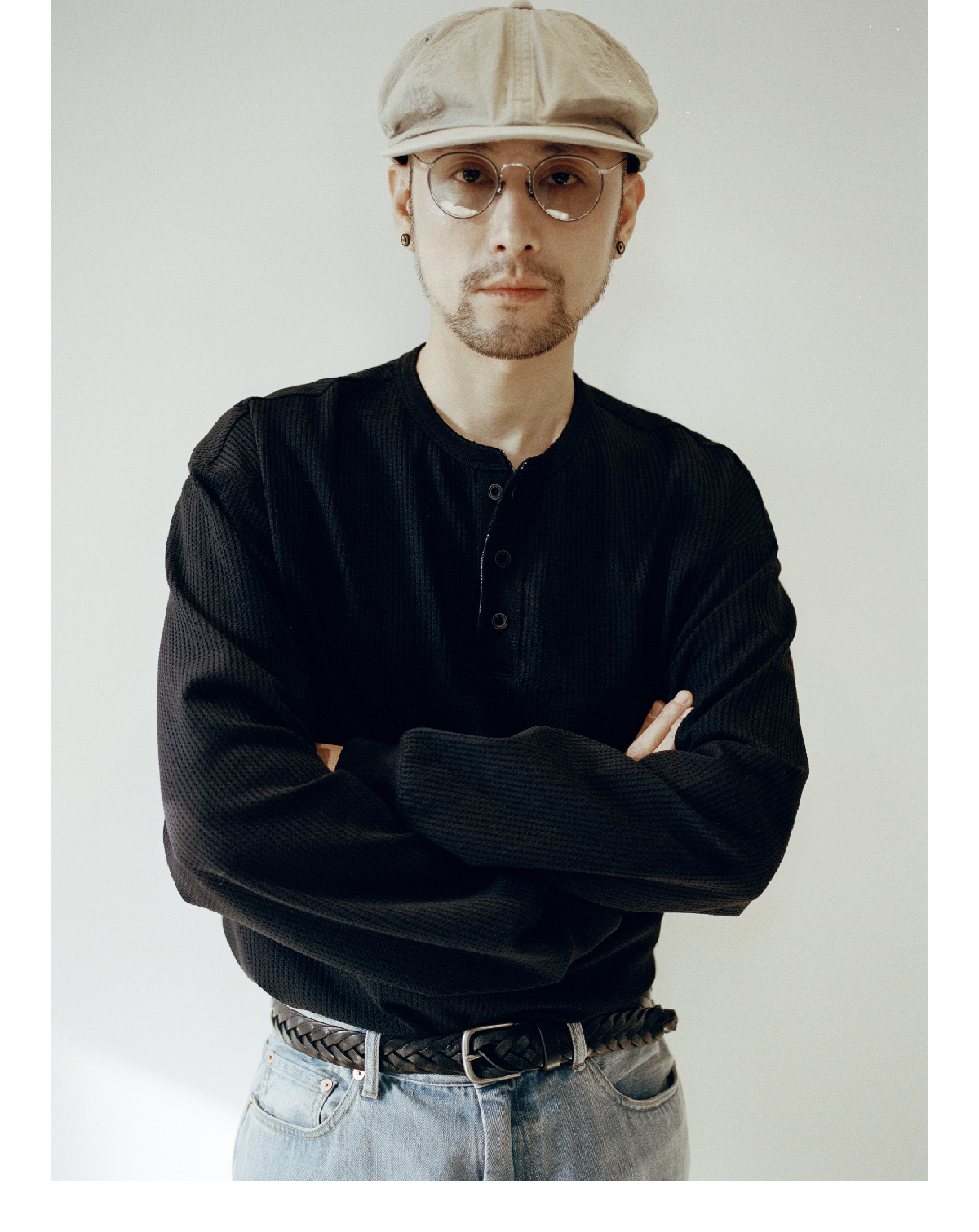 SUPERTOFU(SPTF) /RC-SS25-T001/做旧果实纽扣 亨利领 华夫格 长袖T恤