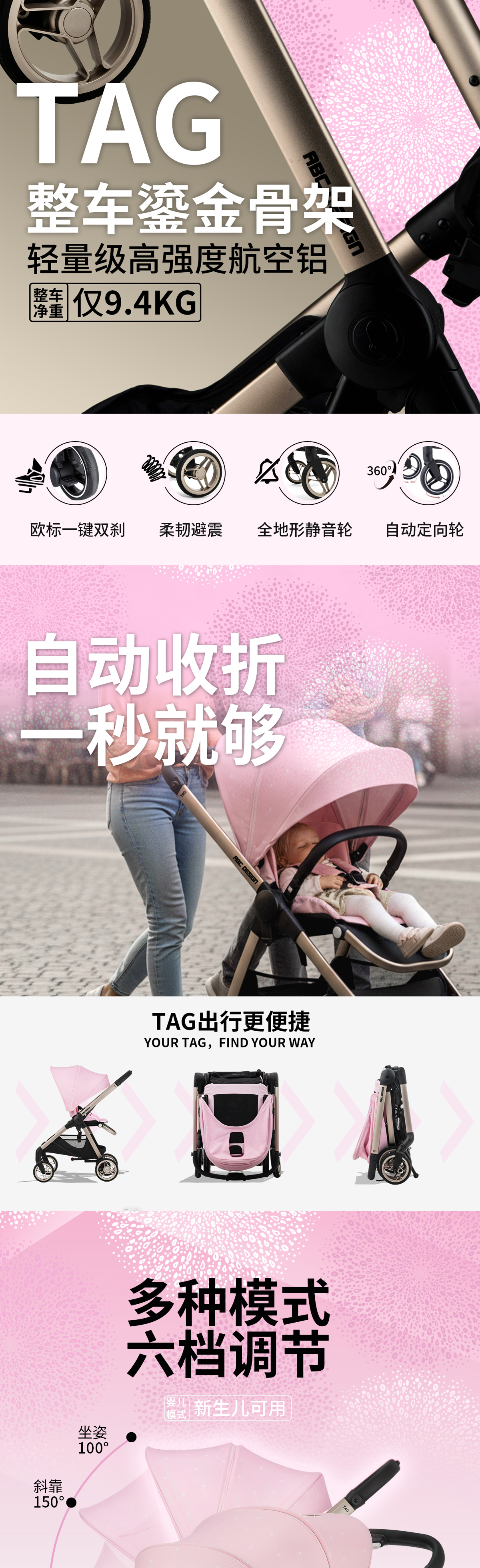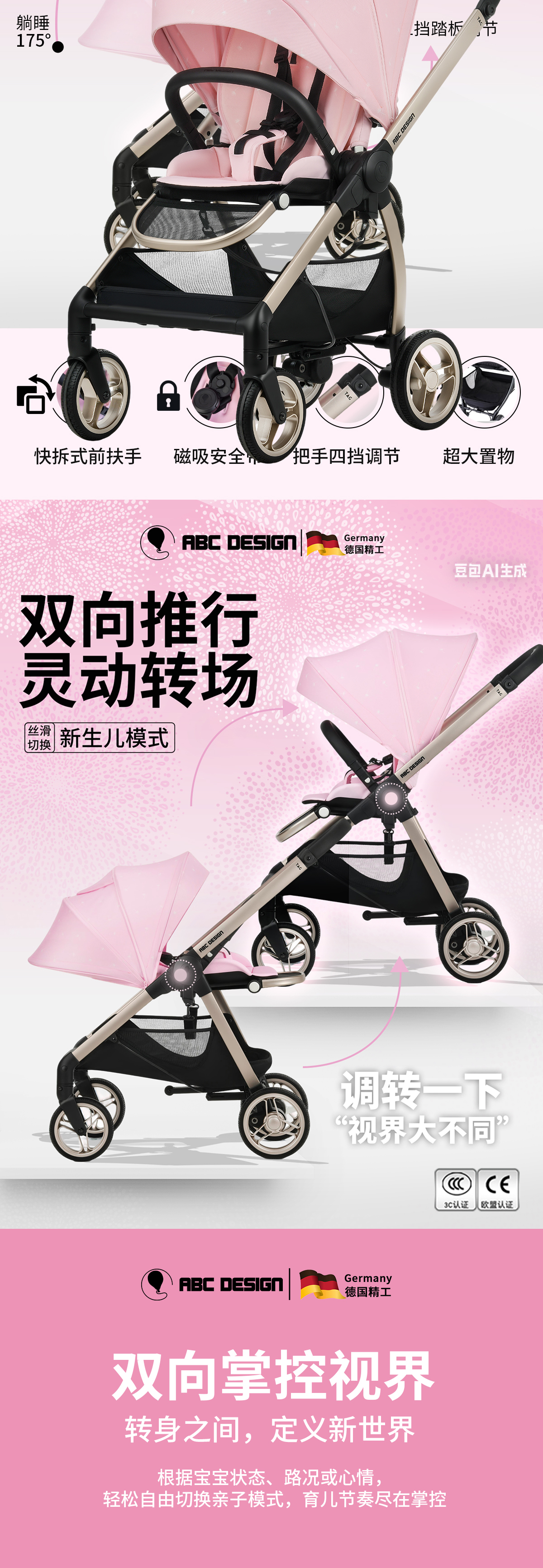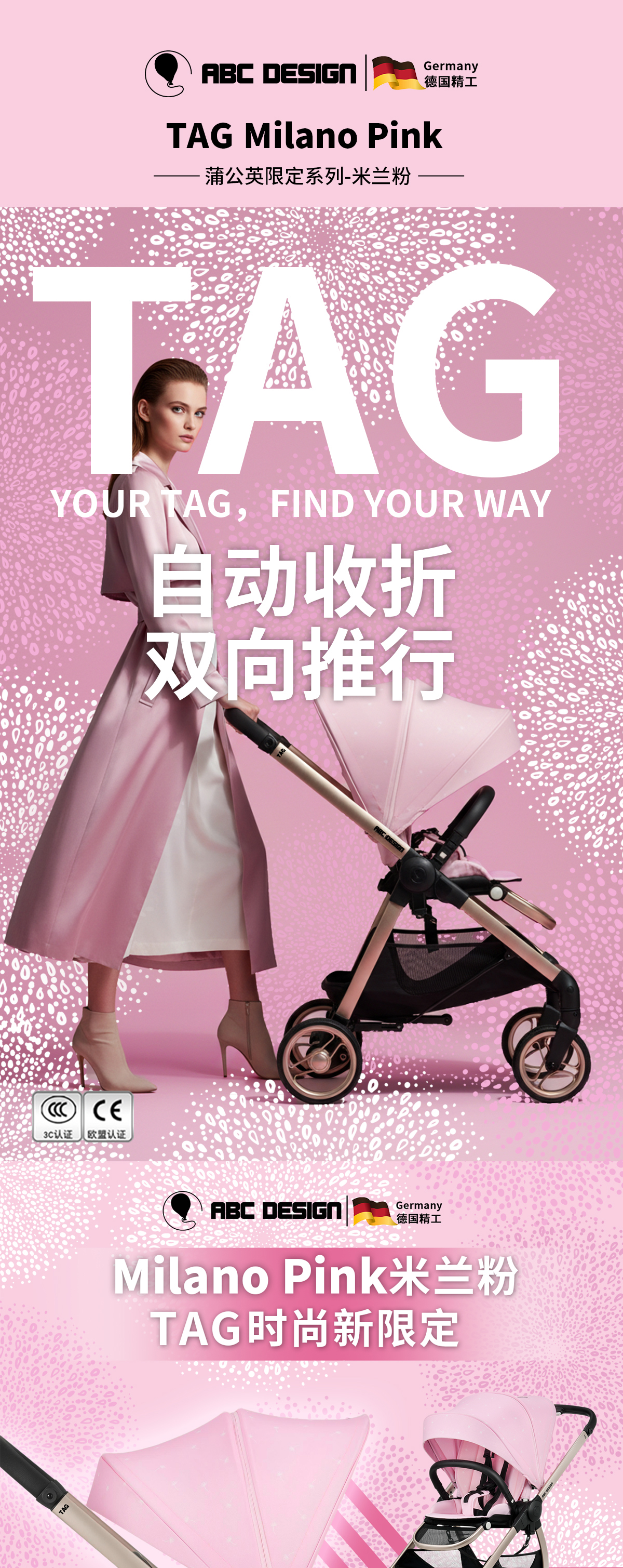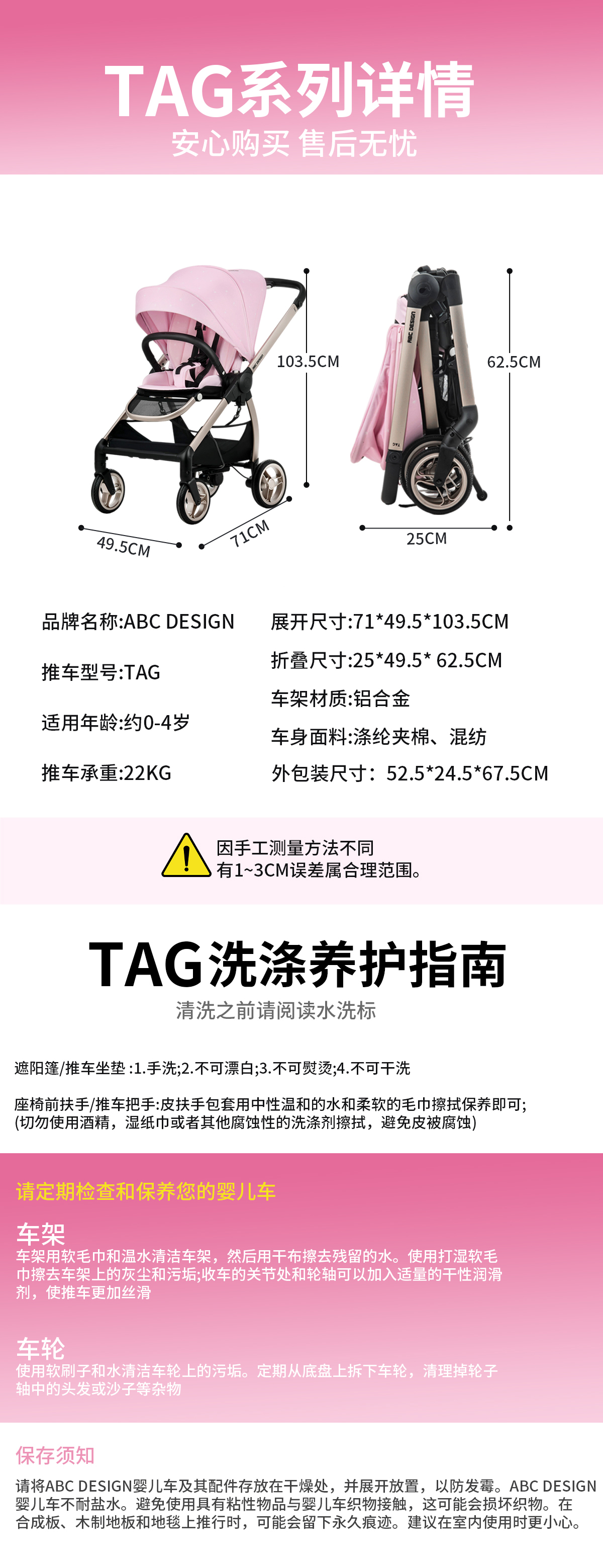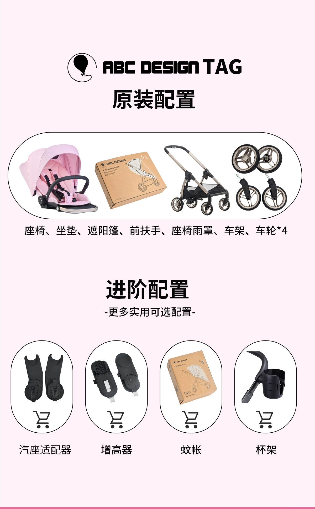 德国ABC DESIGN TAG 蒲公英限定系列-米兰粉 婴儿推车0-4岁