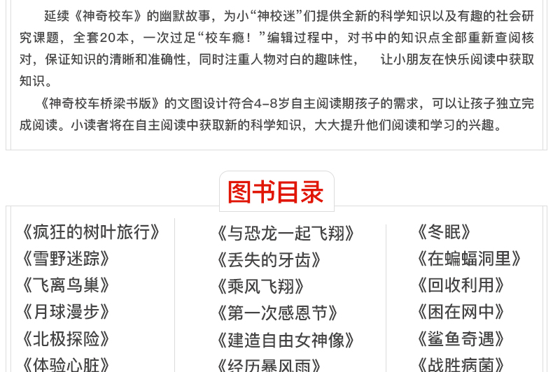 【优惠套装】神奇校车疯狂的树叶旅行全20册 海底探险 桥梁书版 小学生读物 儿童科普百科全书4-10岁儿童文学阅读畅销书籍