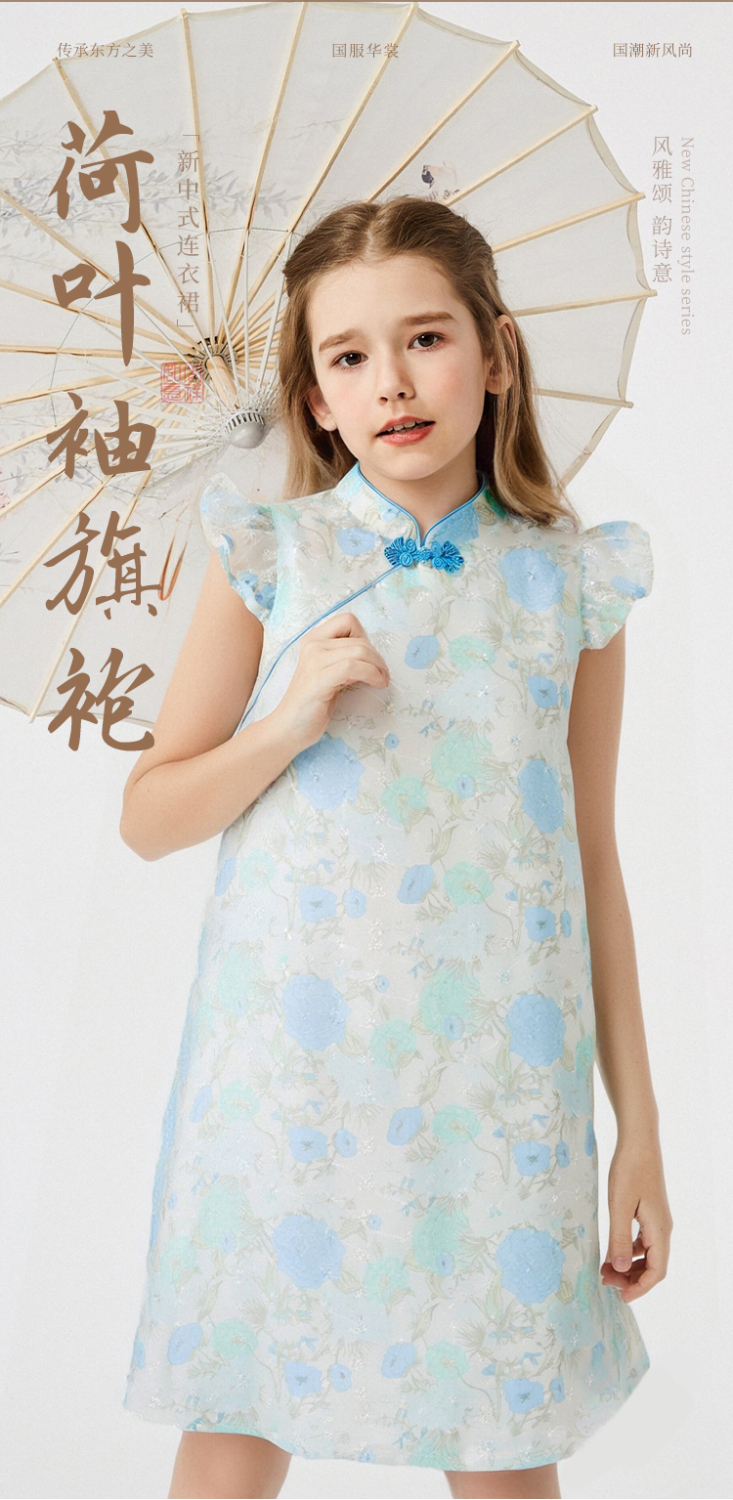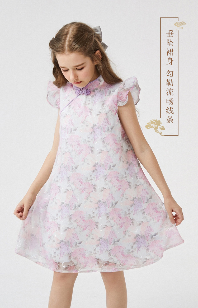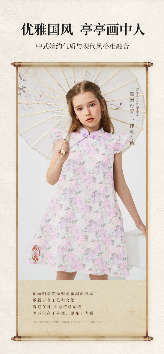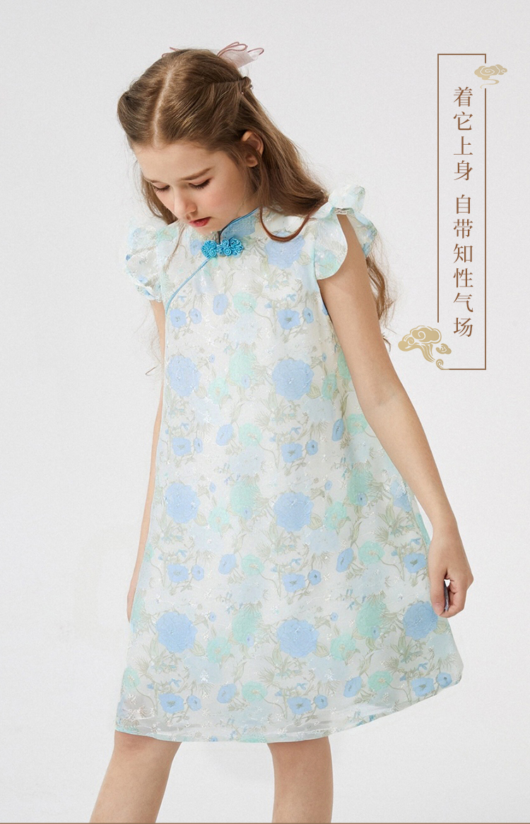 【英氏】【110-165】女童夏季古风中式连衣裙