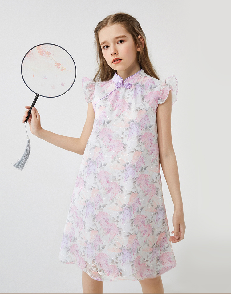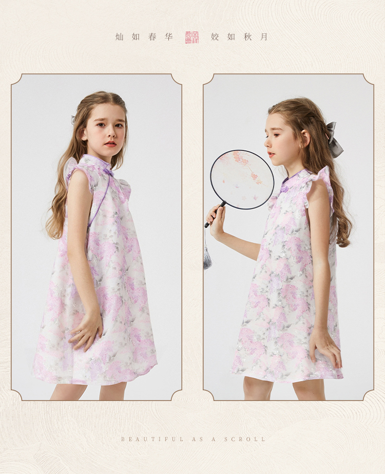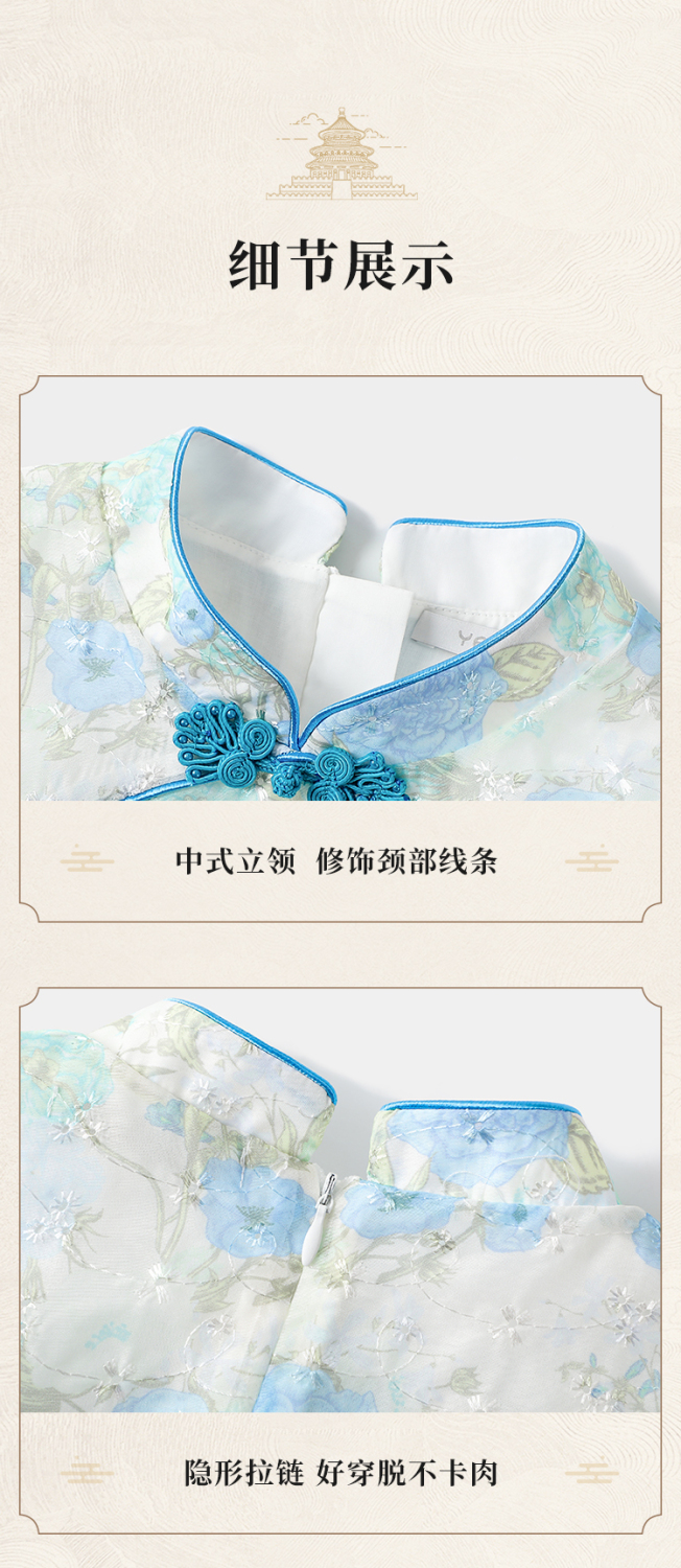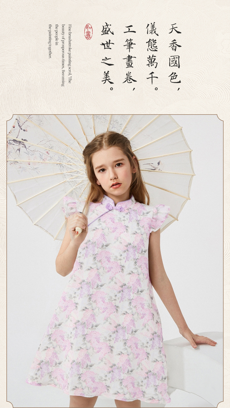 【英氏】【110-165】女童夏季古风中式连衣裙