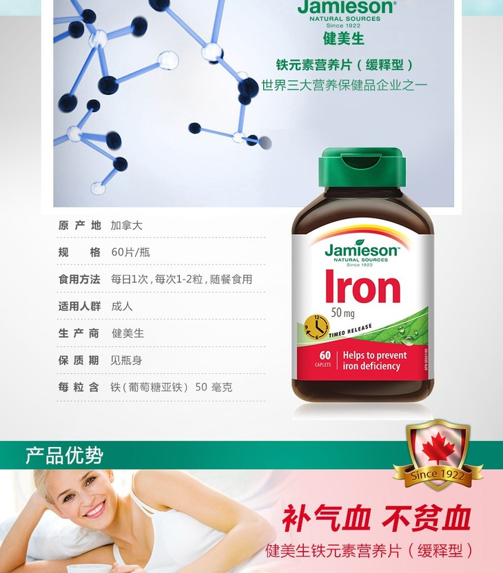 【保税仓】健美生铁元素缓释片 60片