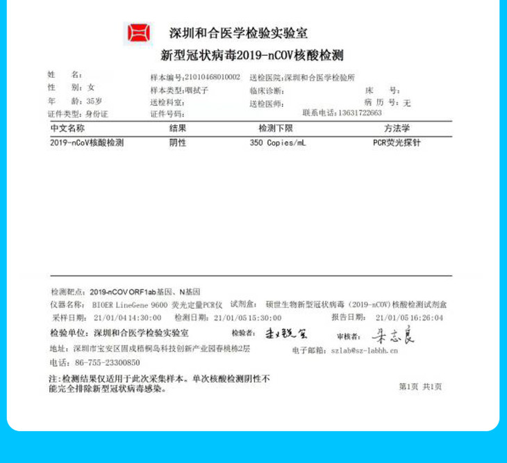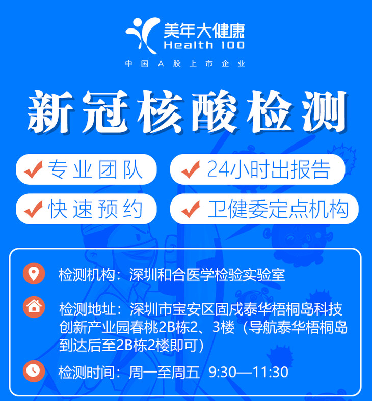 【深圳】新冠核酸检测,专业机构,24小时内出具报告,同步粤康码