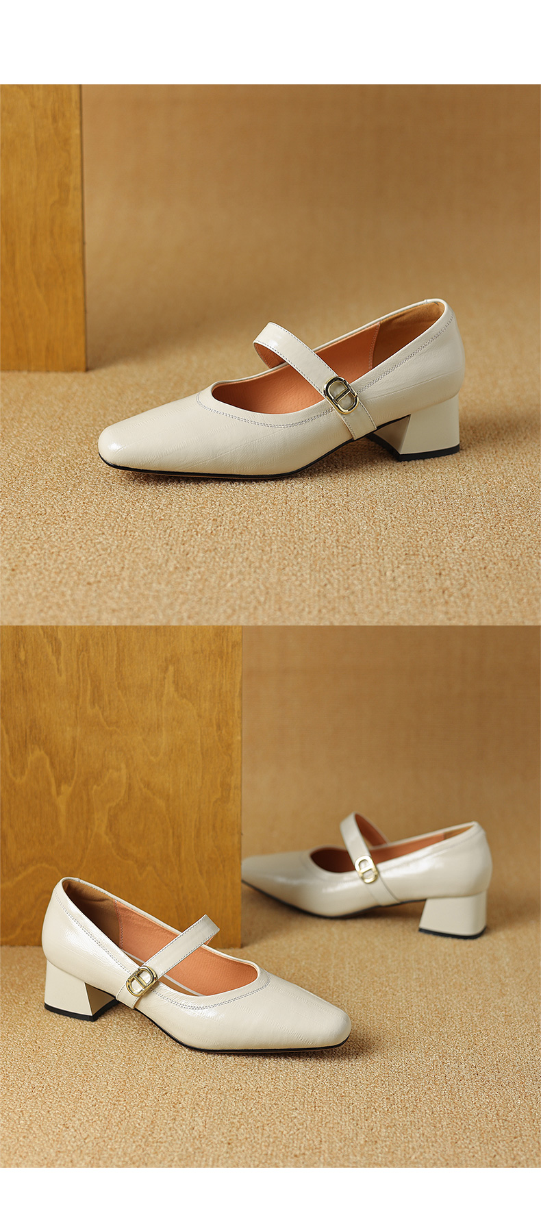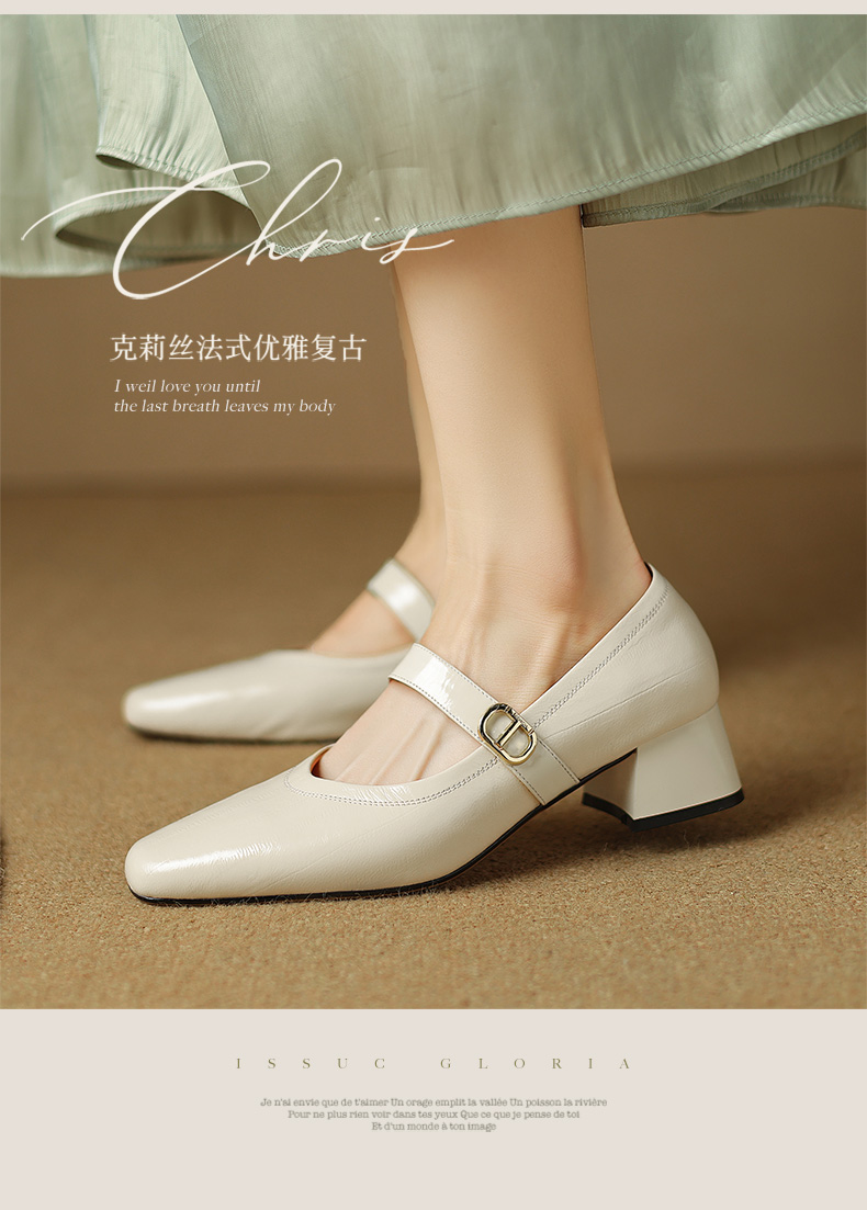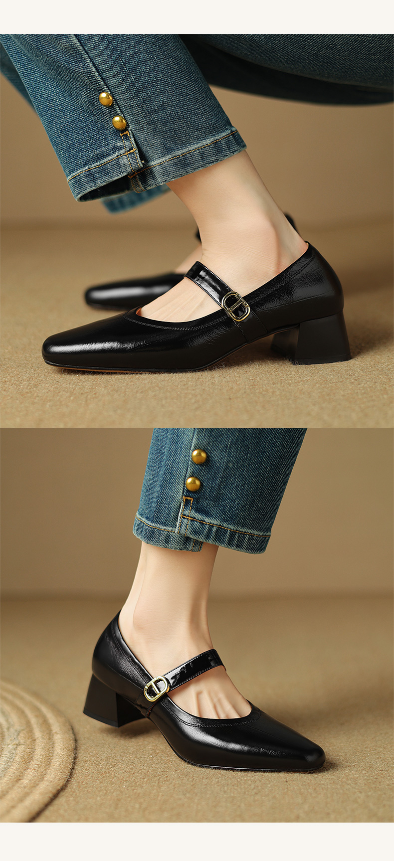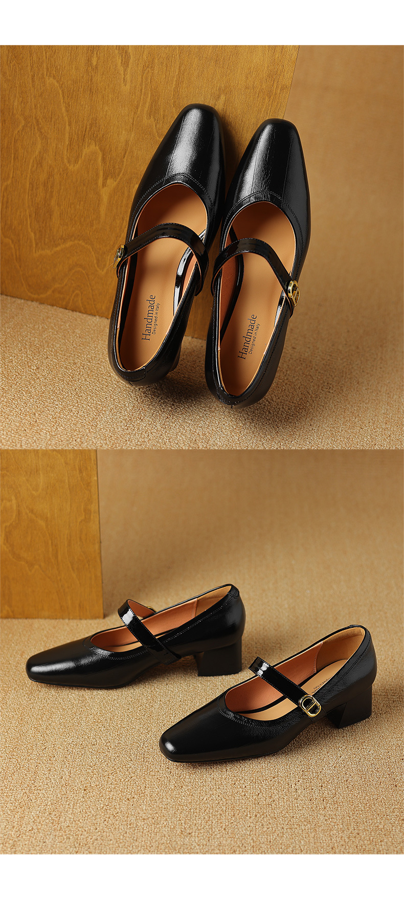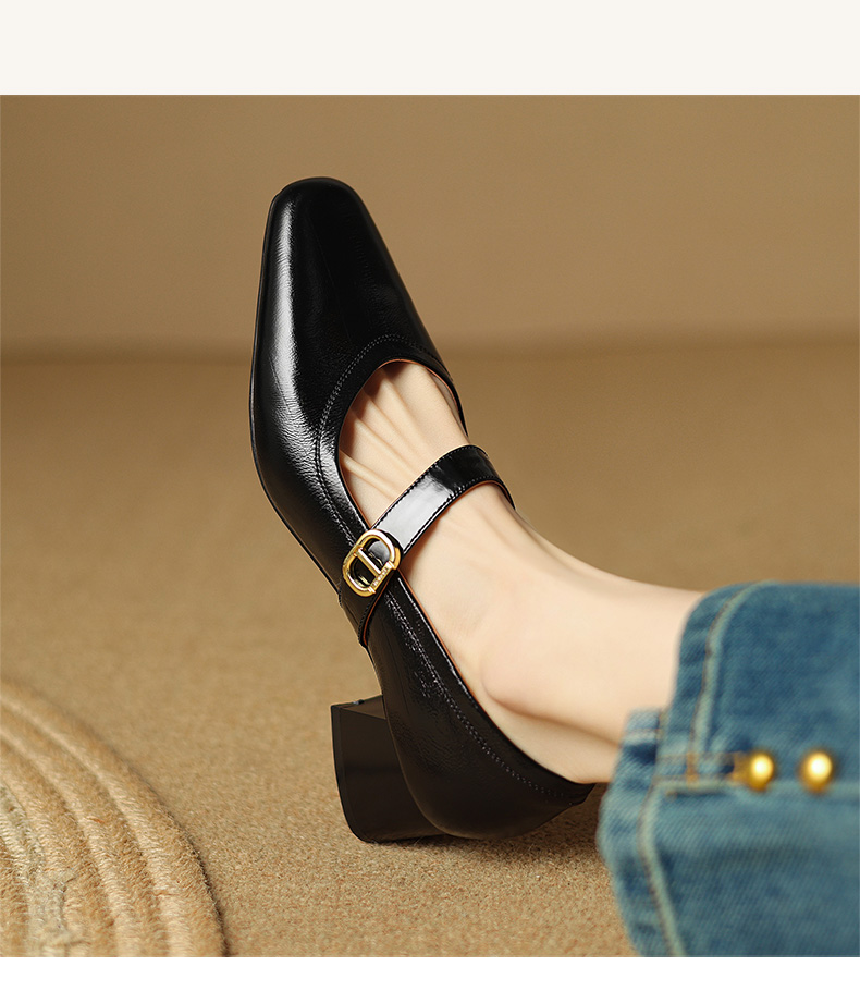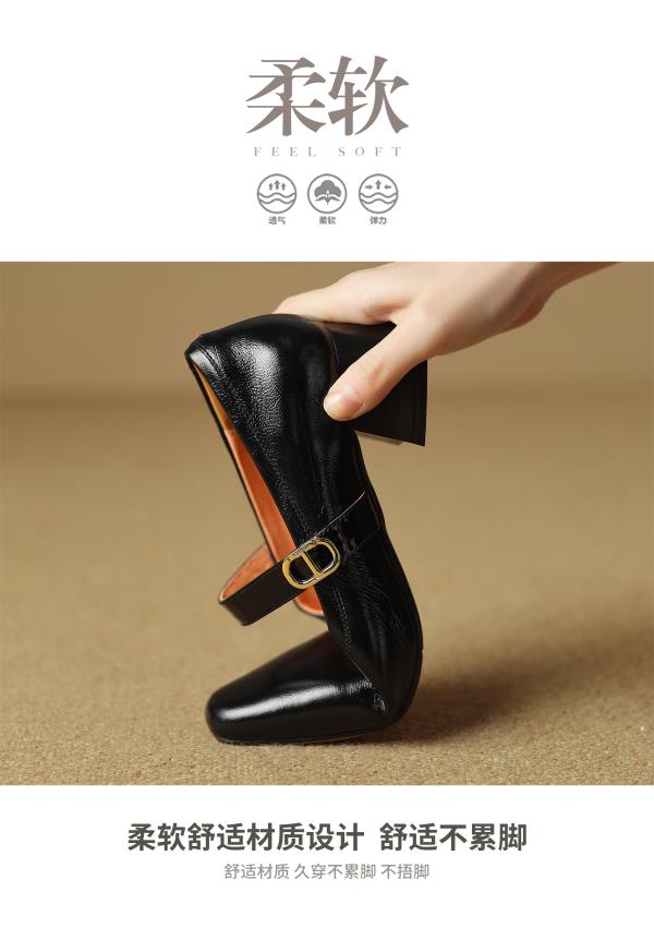 【预售5天】春夏新款,粗跟里外全真皮单鞋LD&6715