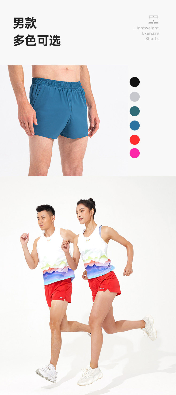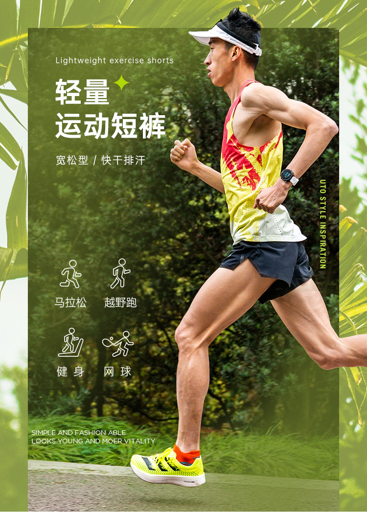 UTO 悠途跑步短裤马拉松网眼运动裤外穿透气3分裤梭织速干裤男女夏季