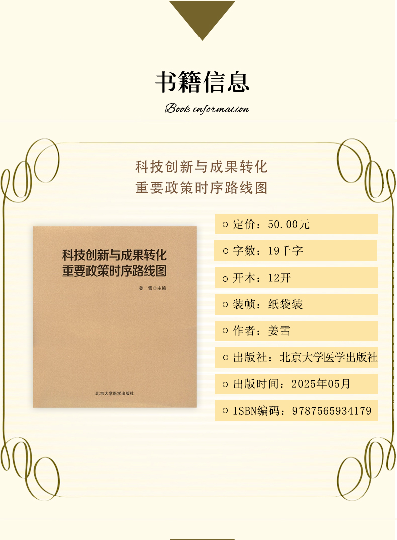 科技创新与成果转化重要政策时序路线图 姜雪 主编 9787565934179 北京大学医学出版社