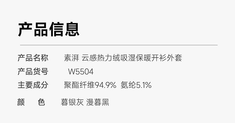【25秋冬季新款 全面升级】素湃云感热力绒开衫外套/直筒裤W5504&W5506&W5505 云感热力绒 触肤柔软