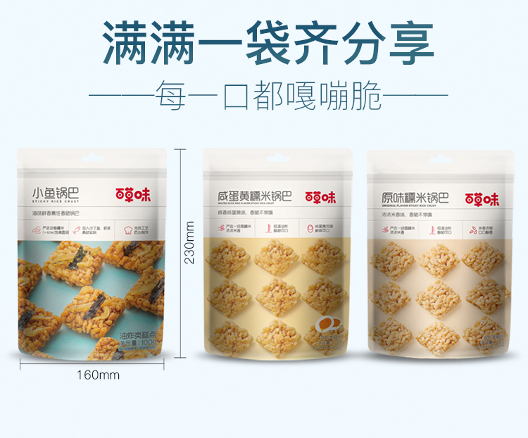[小滋心选]【99元选20件】百草味咸蛋黄糯米锅巴 110g 不添加碎米粳米,真实咸蛋黄添加,鲜香酥脆,每一块都吮指回味