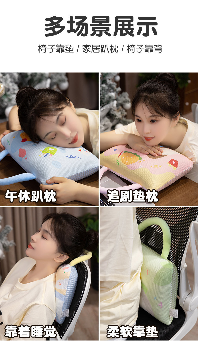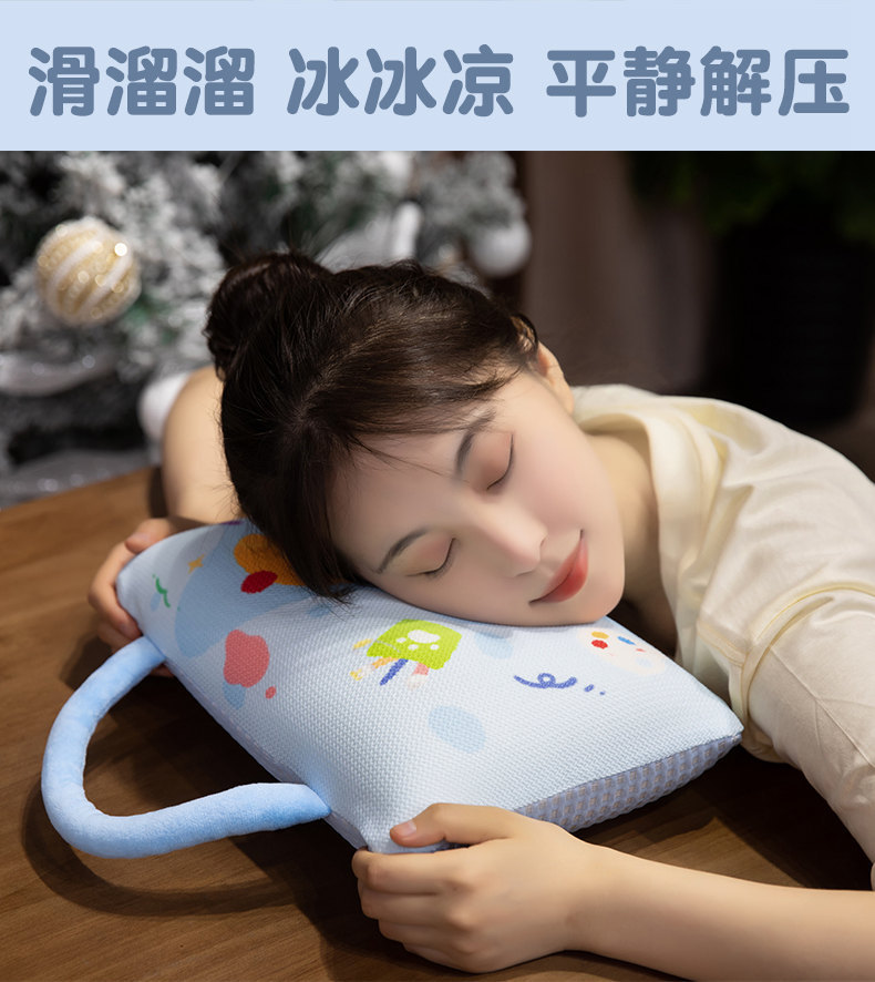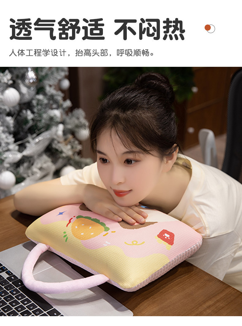 【冰丝面料!凉感透气】冰丝手提抱枕睡觉午睡枕专用儿童趴枕学生午休腰靠垫办公室趴睡枕。xb