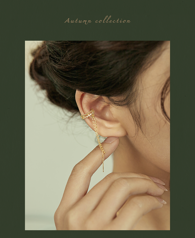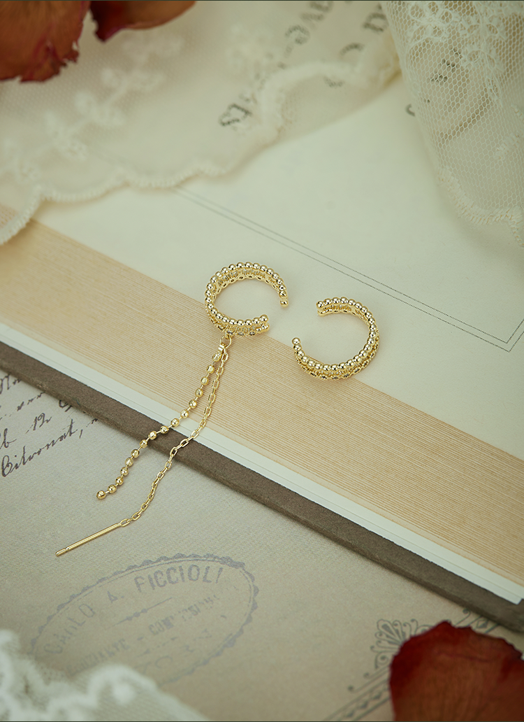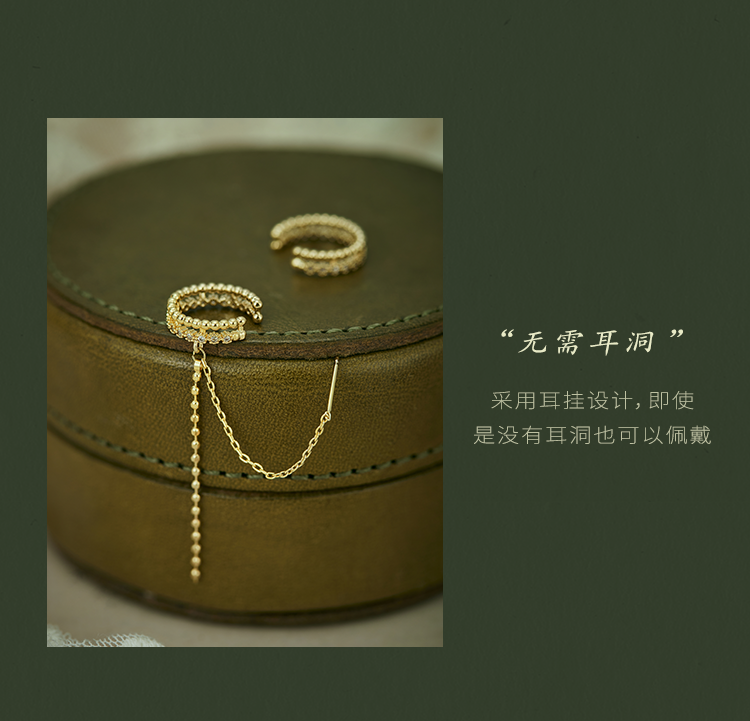 Oflye潮流饰品 双层链条流苏耳骨夹新款小众耳环一体式耳夹独特耳饰女